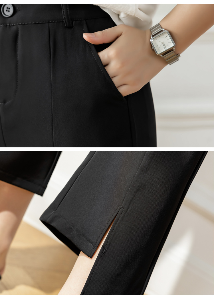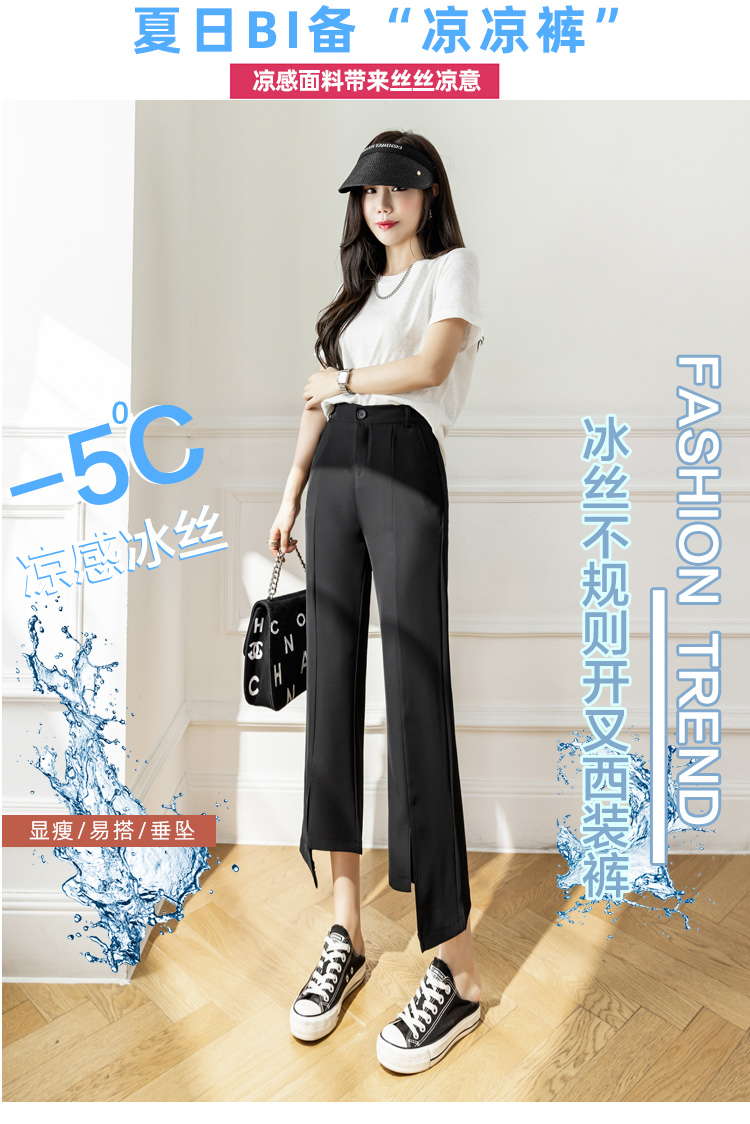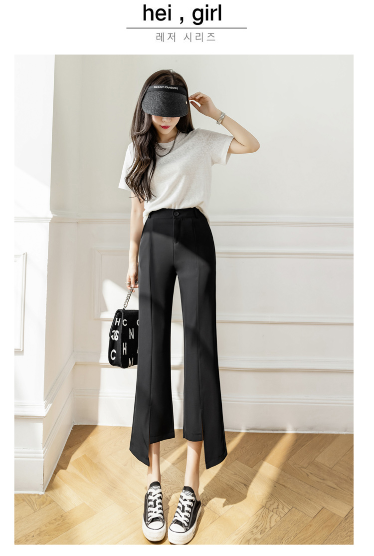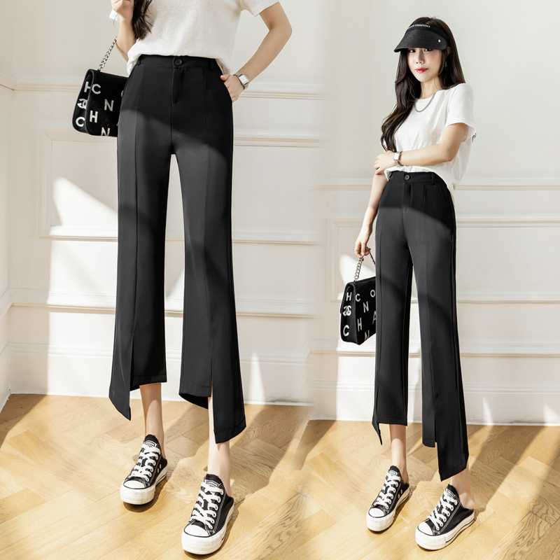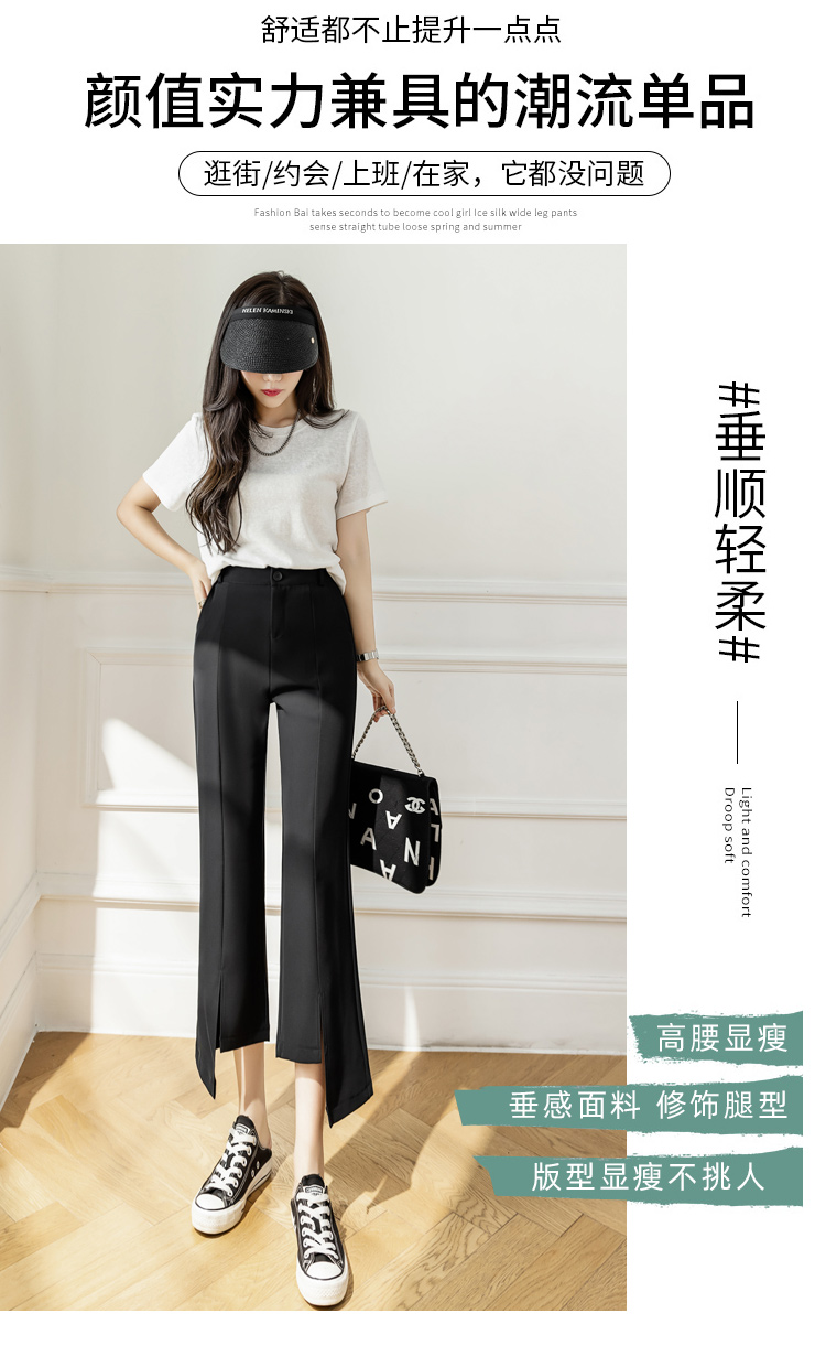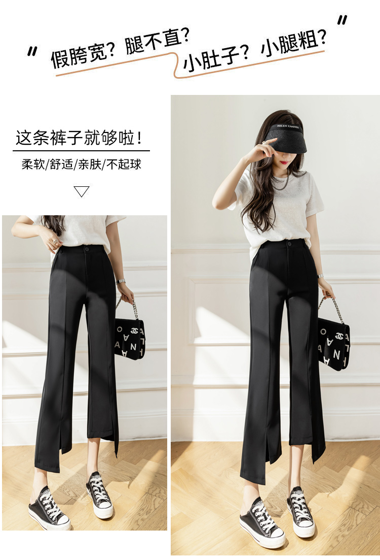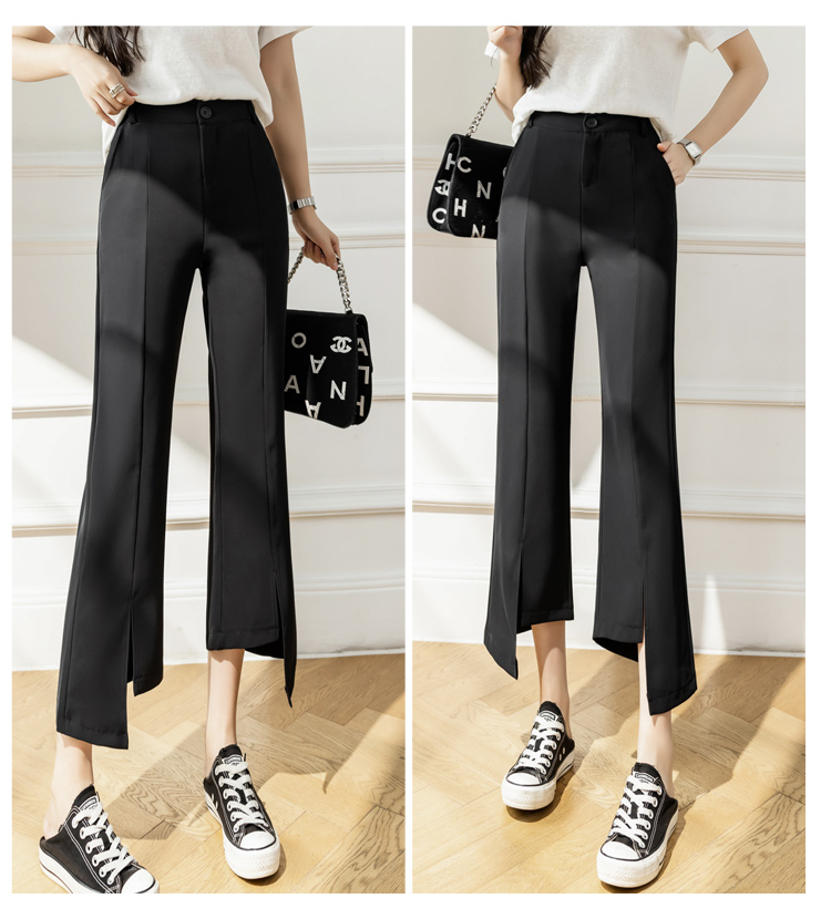 RM33847#开叉微喇西装裤女宽松阔腿小个子九分休闲裤