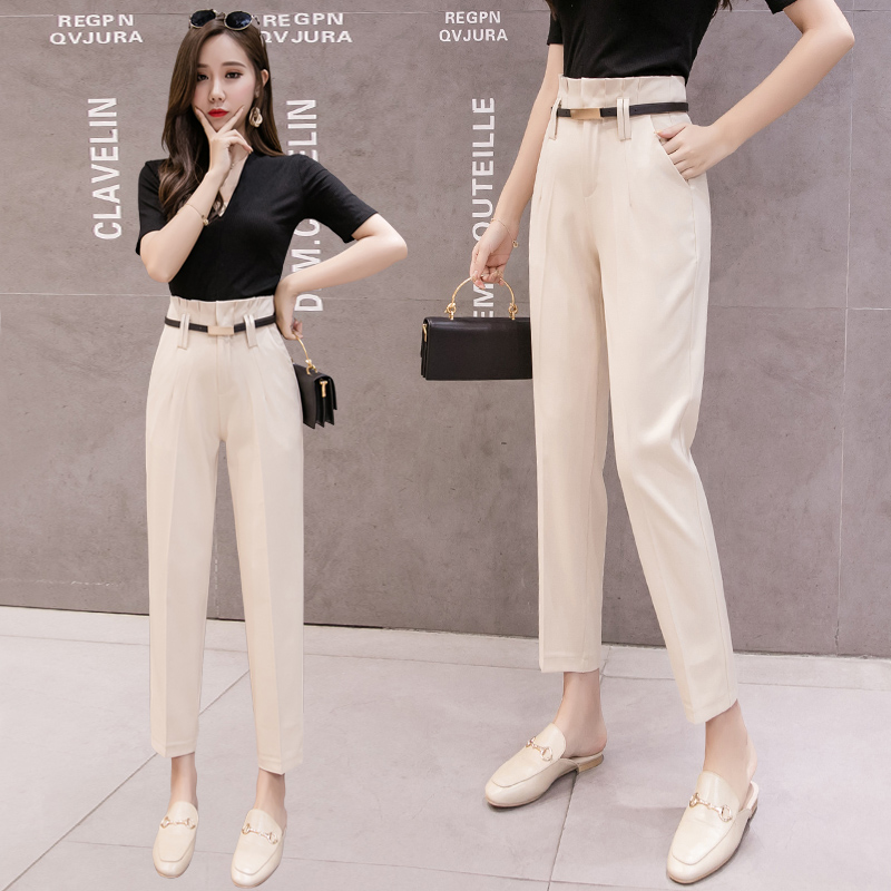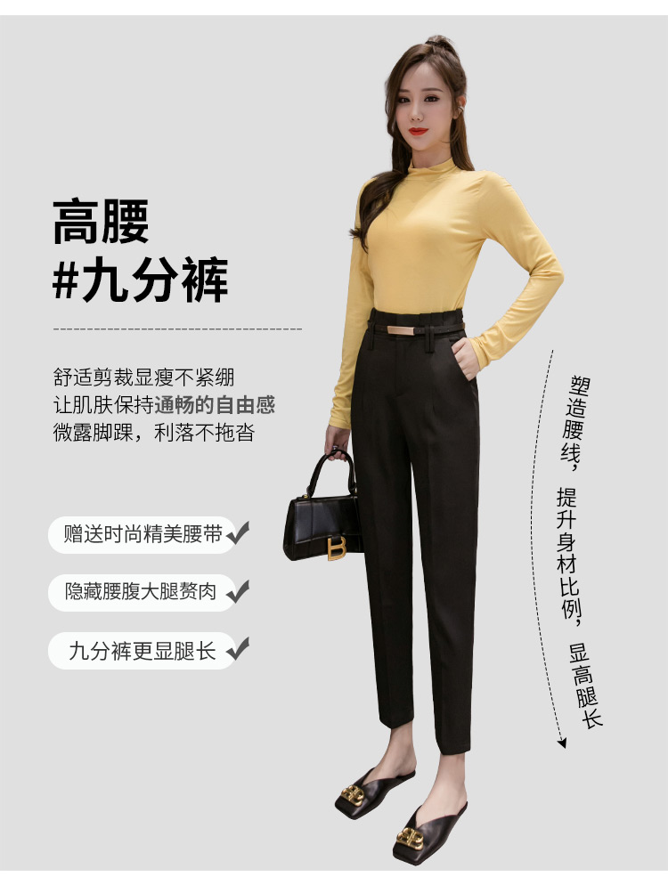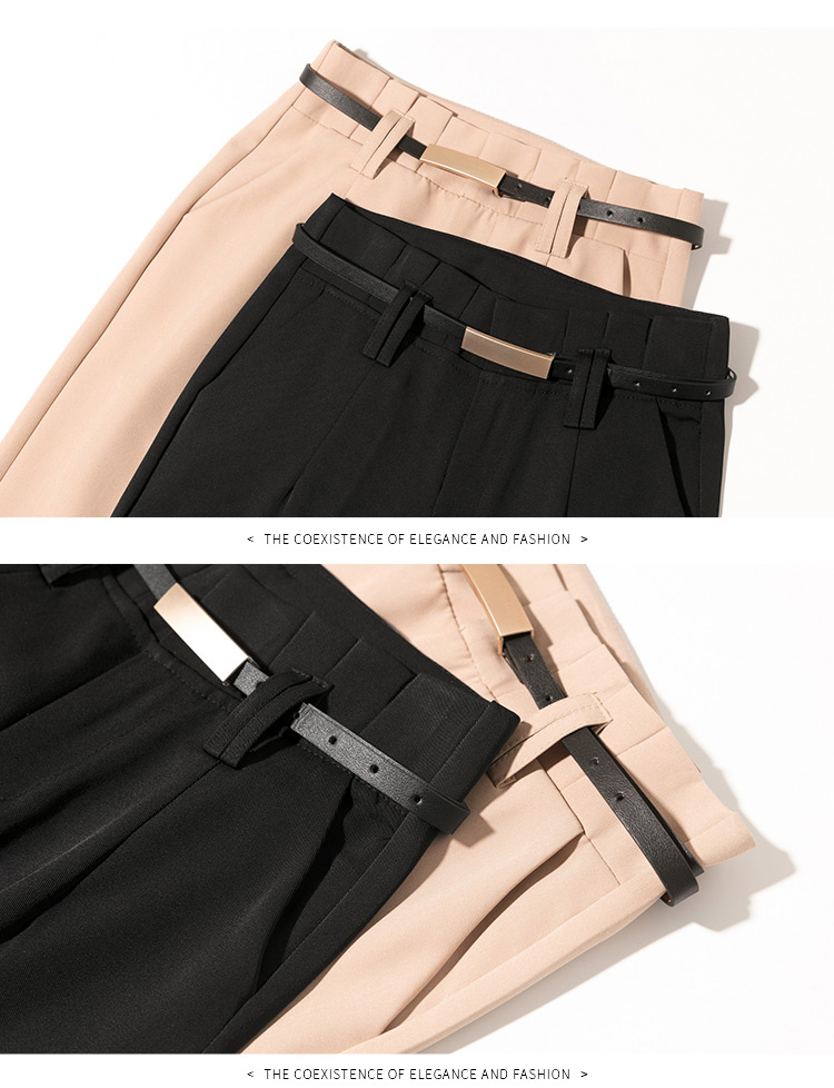 RM33960#直筒宽松夏季薄款阔腿裤高腰黑色垂感九分休闲烟管裤子
