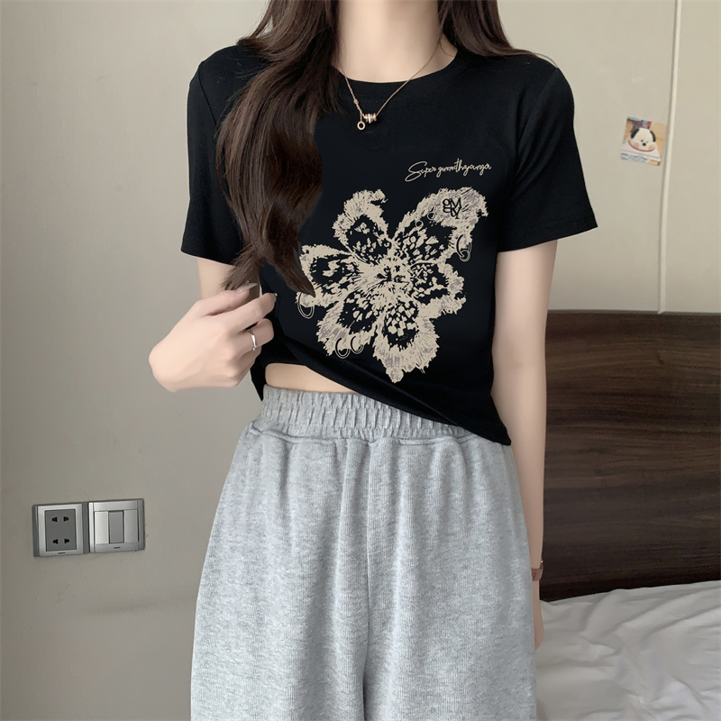 RM33970#新款 40支210克92%棉 8%氨纶 正肩短袖T恤女纯棉