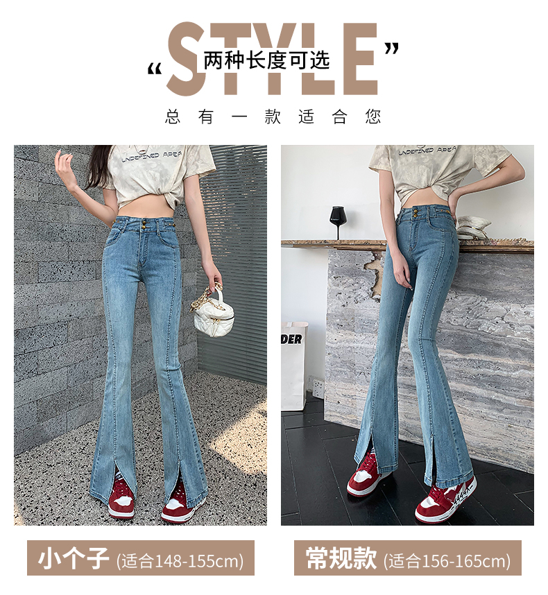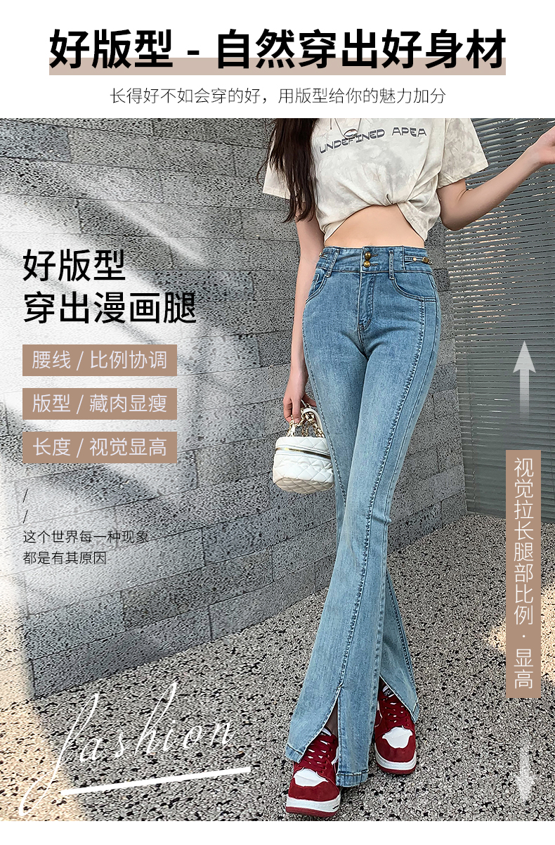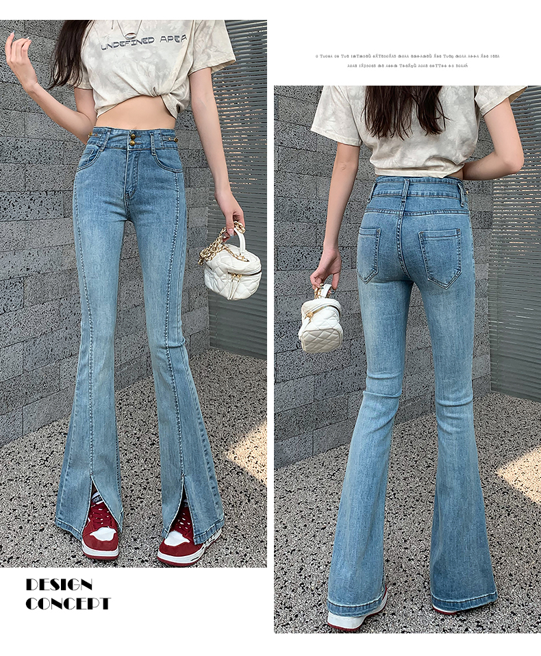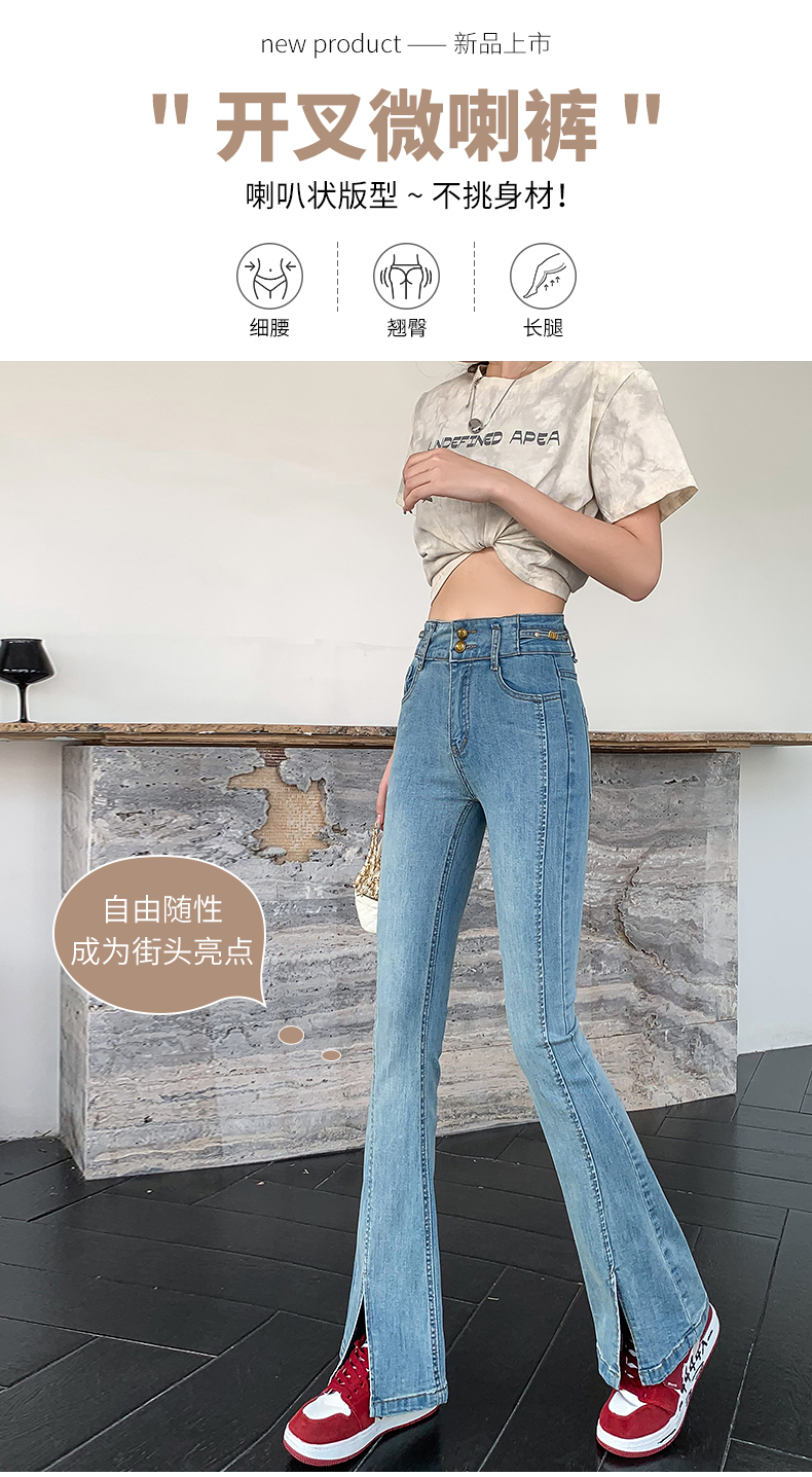 RM34009#渐变弹力开叉牛仔微喇裤女 韩版高腰显瘦哈伦阔腿长裤