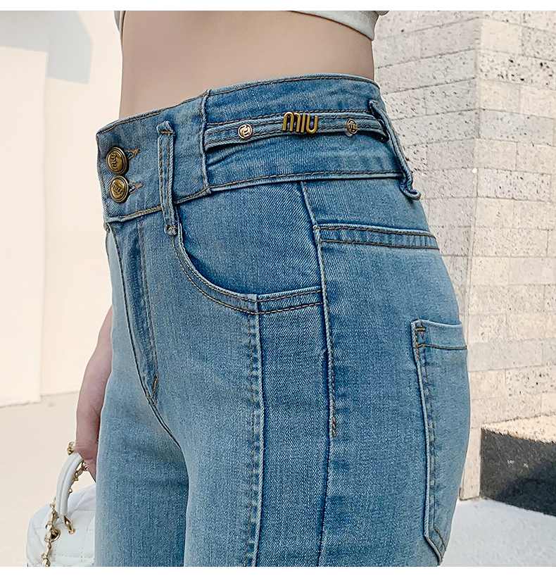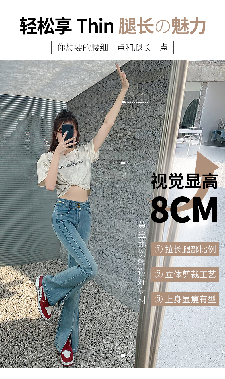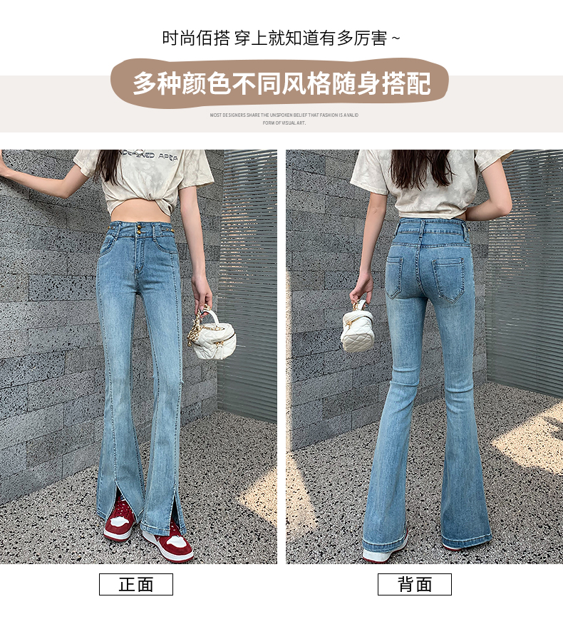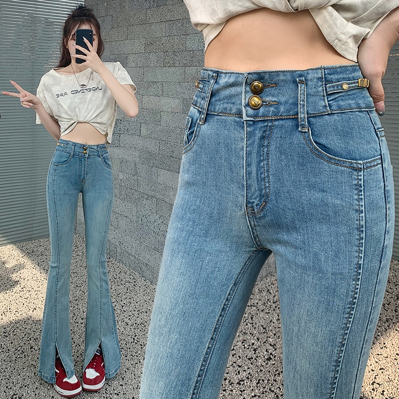 RM34009#渐变弹力开叉牛仔微喇裤女 韩版高腰显瘦哈伦阔腿长裤