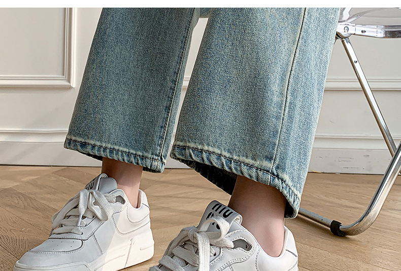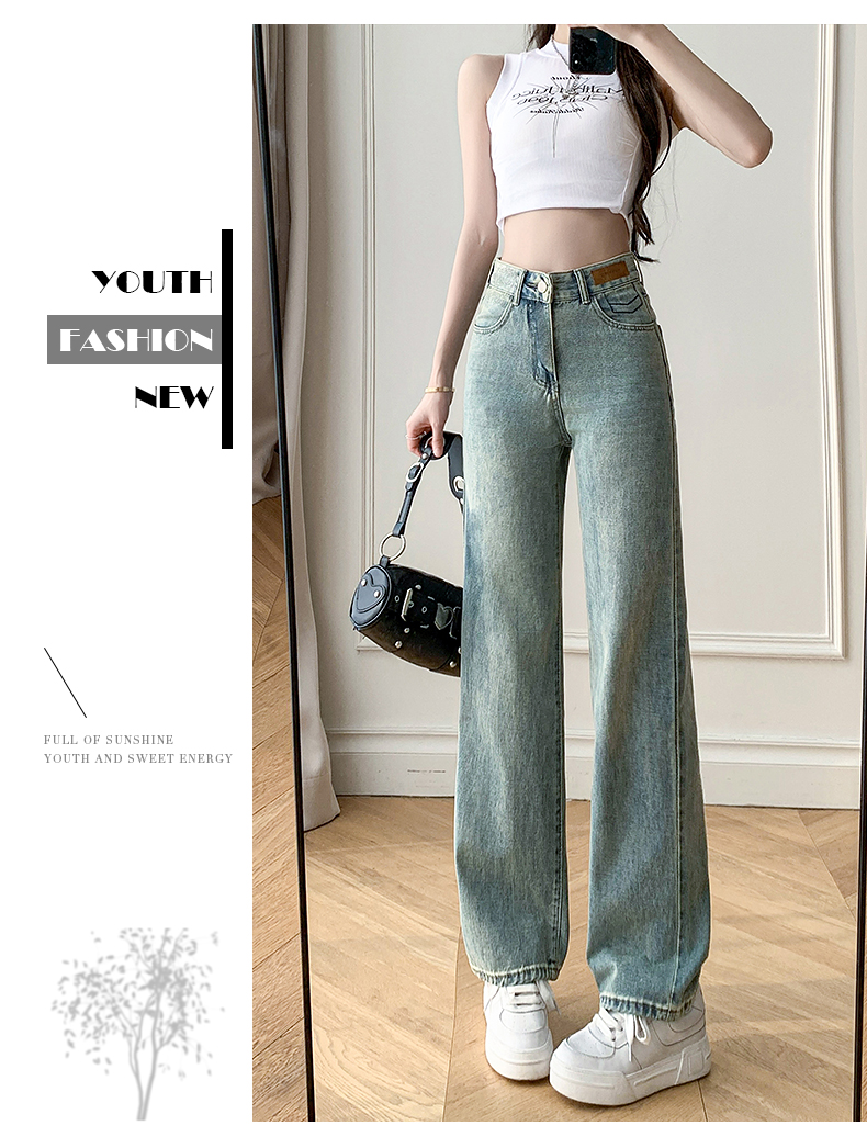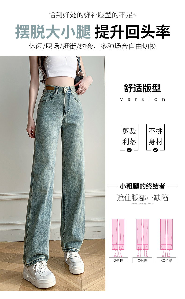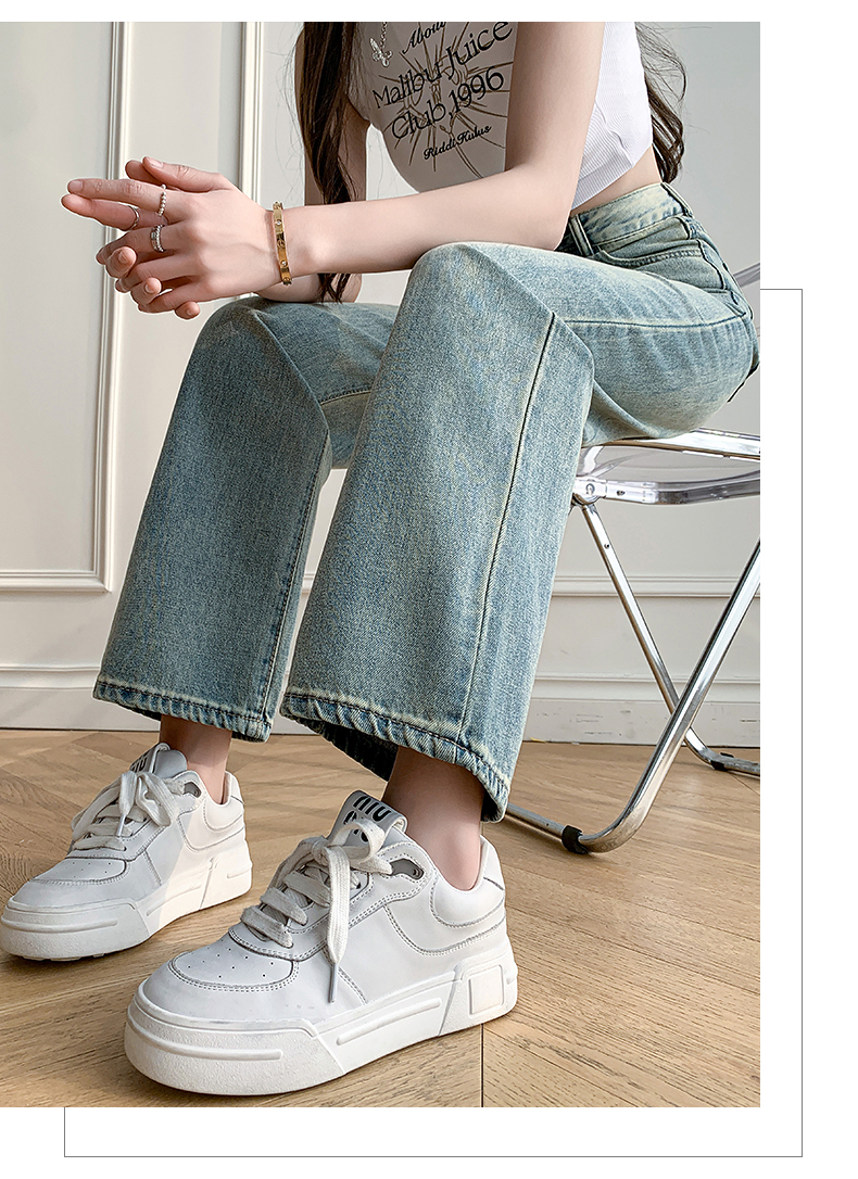 RM34012#窄版印花牛仔直筒牛仔裤 新款港风高腰宽松烟管阔腿裤