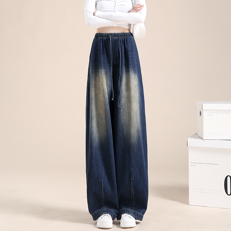 RM34015#蓝色阔腿牛仔裤女高腰 新款宽松复古休闲直筒长裤子