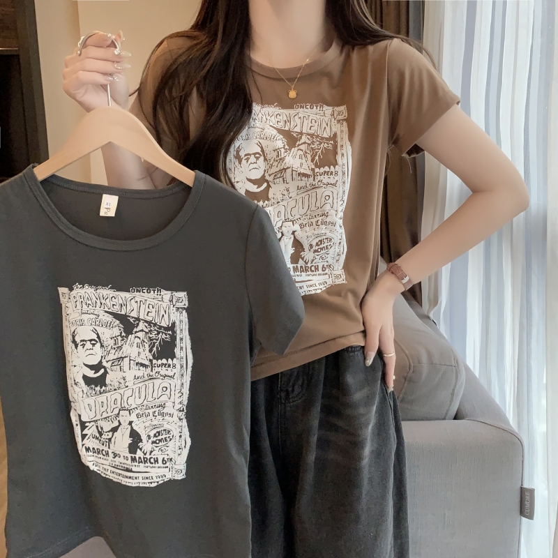 PF100#6535拉架 夏装高腰短款ins超火短袖T恤女小众