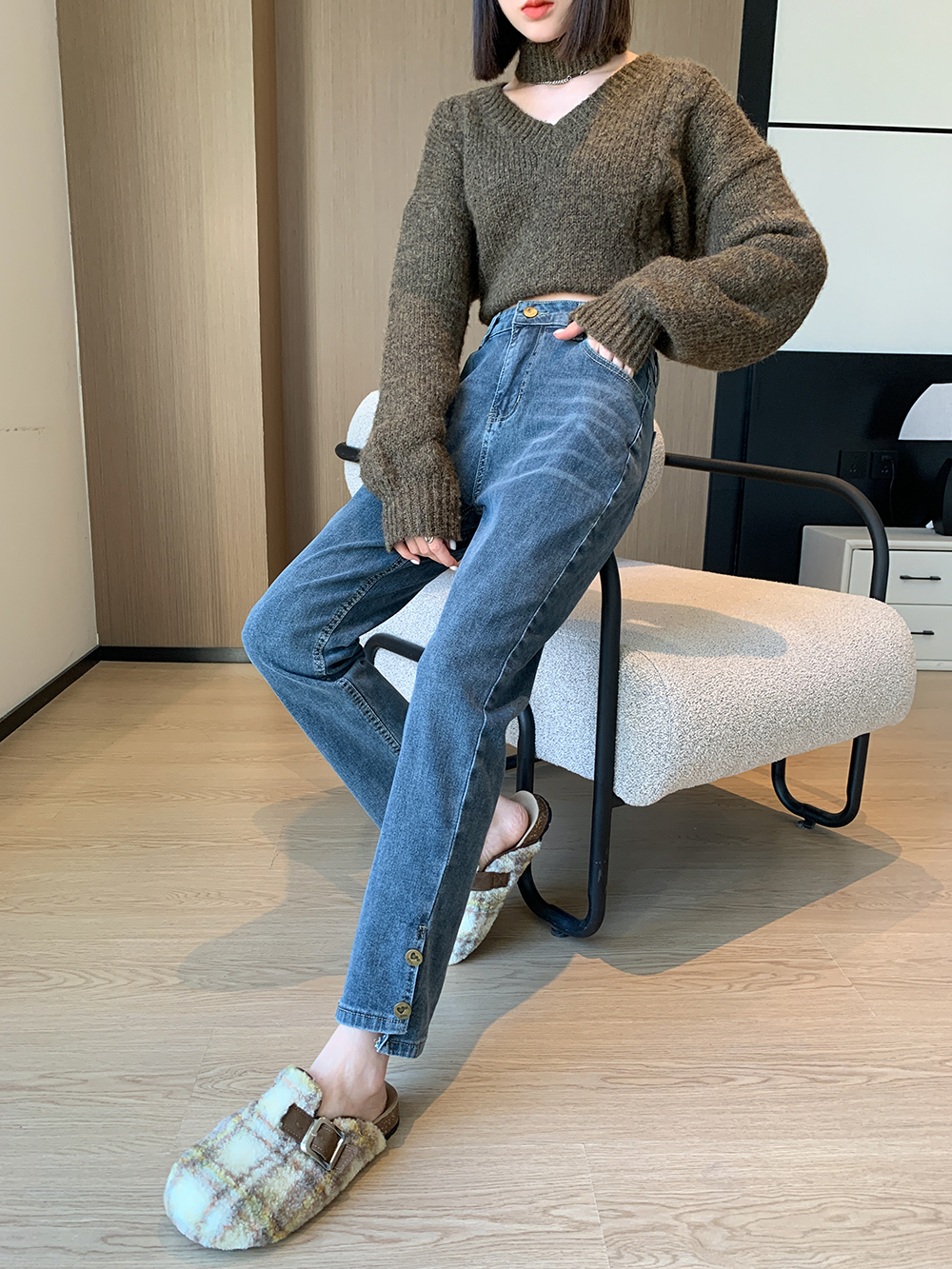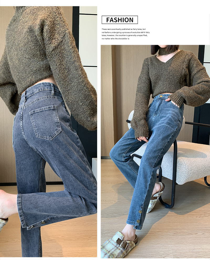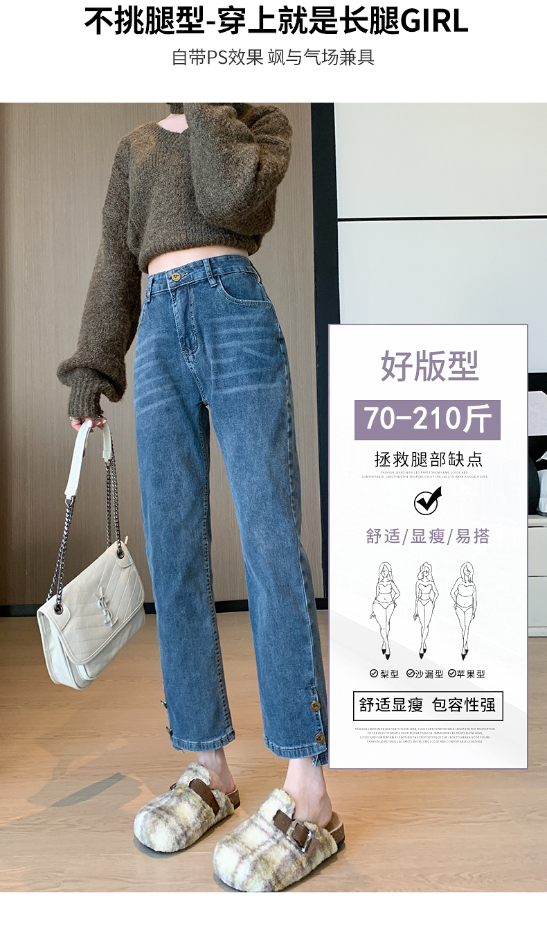 PF199#直筒牛仔裤女窄版2024春夏新款高腰八小个子九分烟管裤子