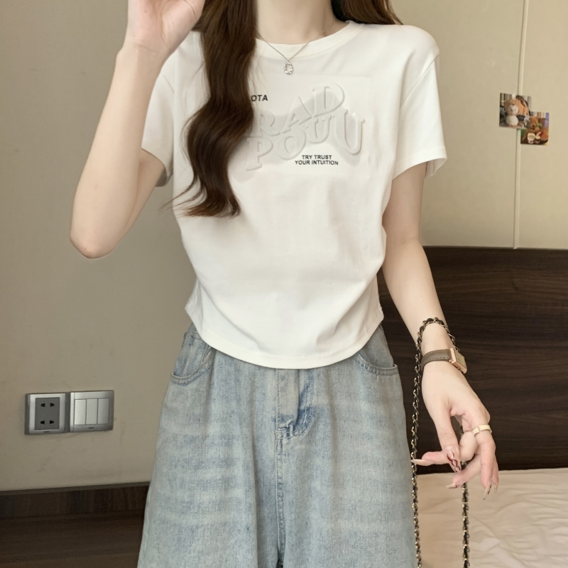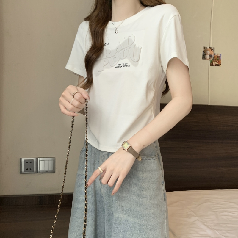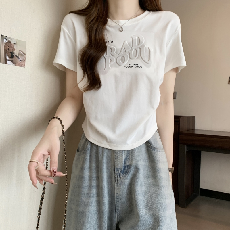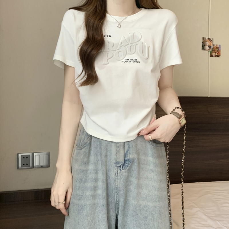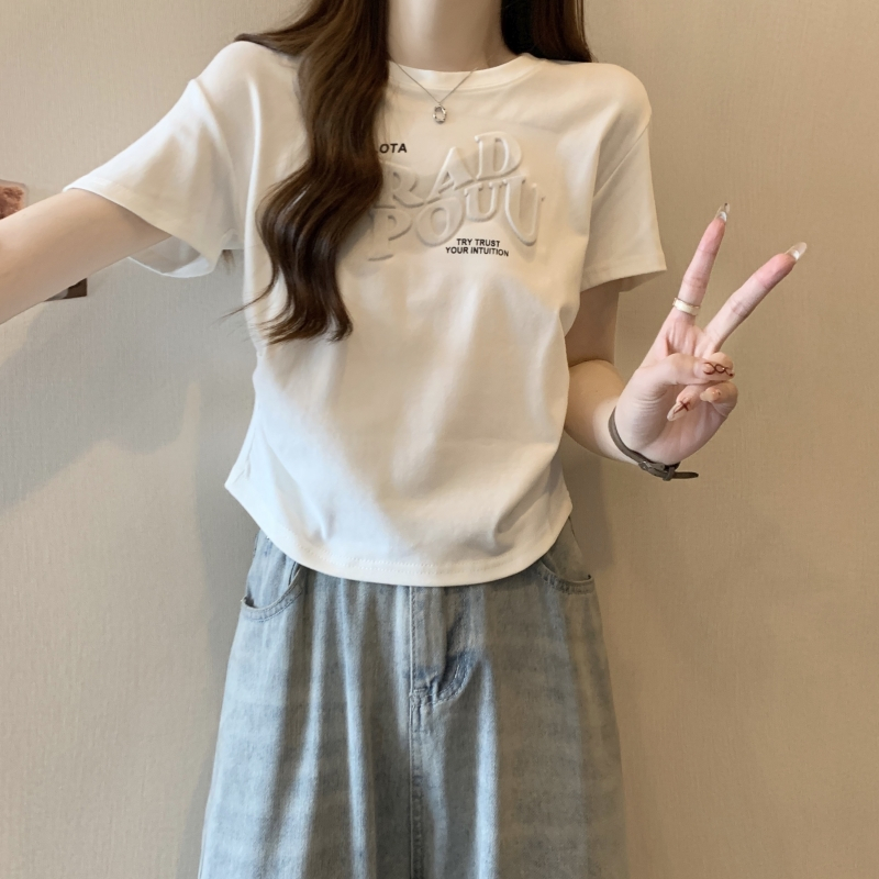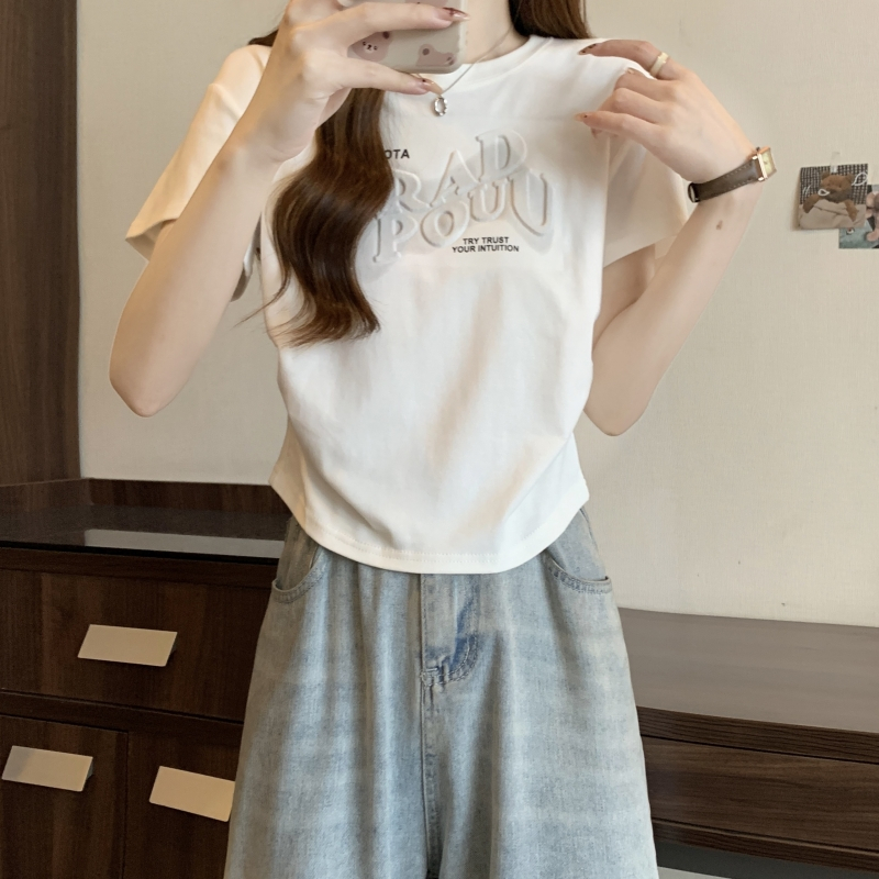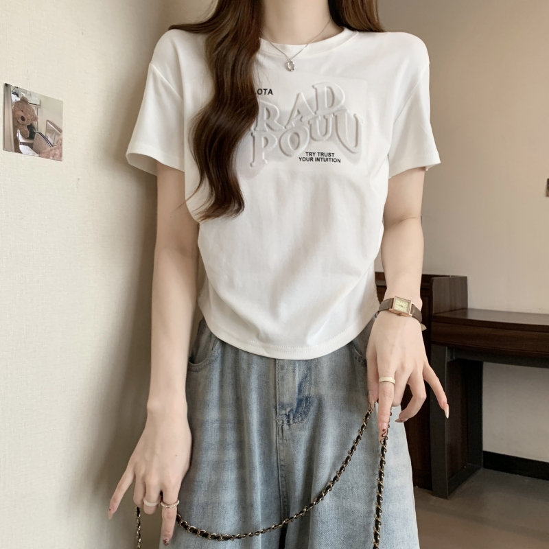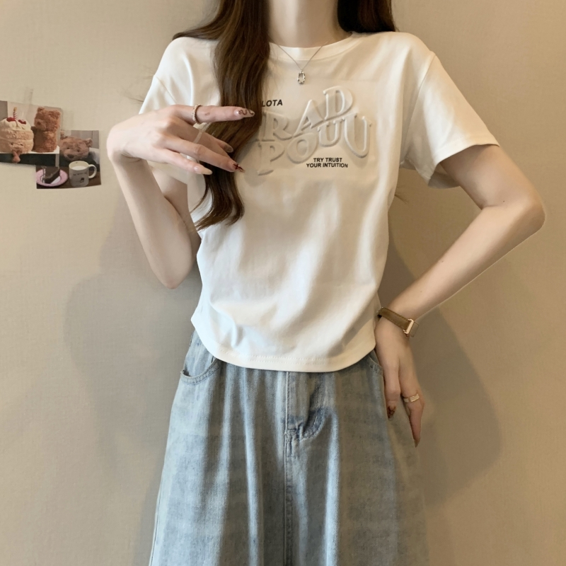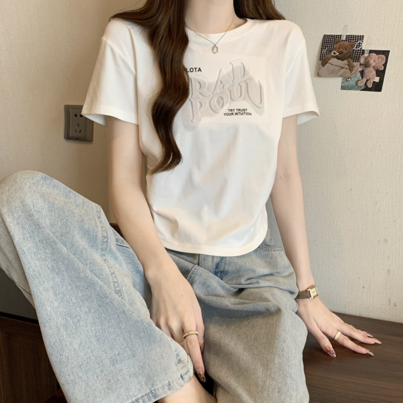 PF208#40支纯棉 2024夏装发泡印花设计感小众短袖T恤女