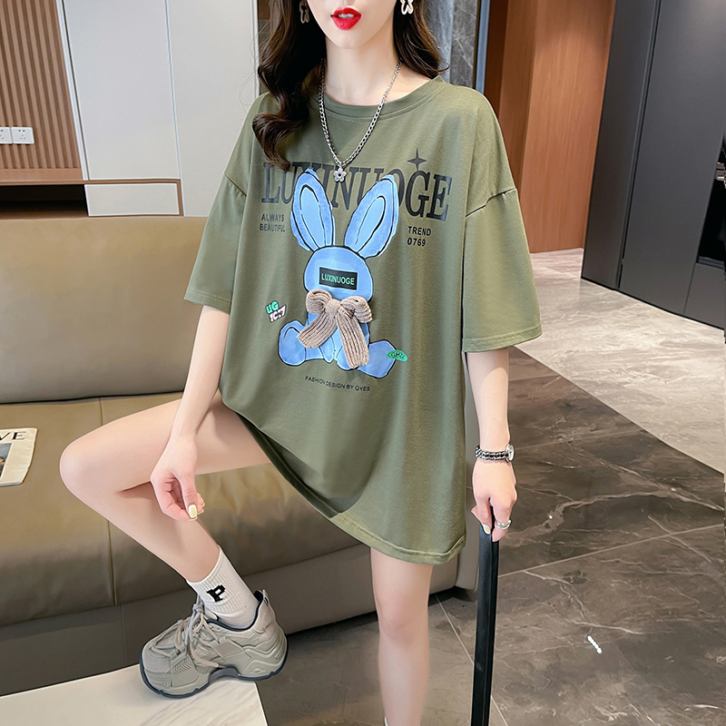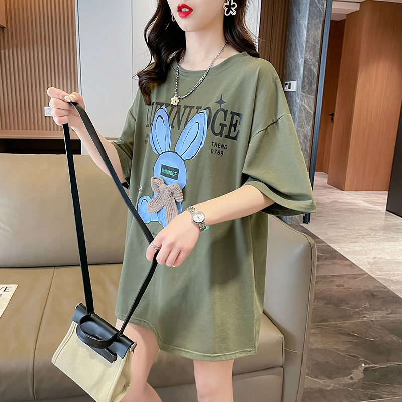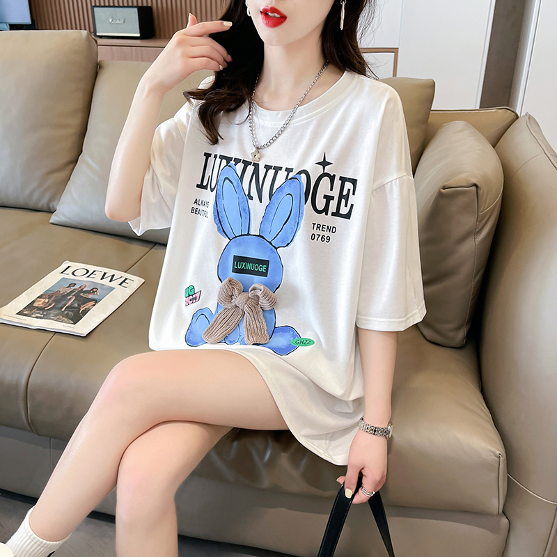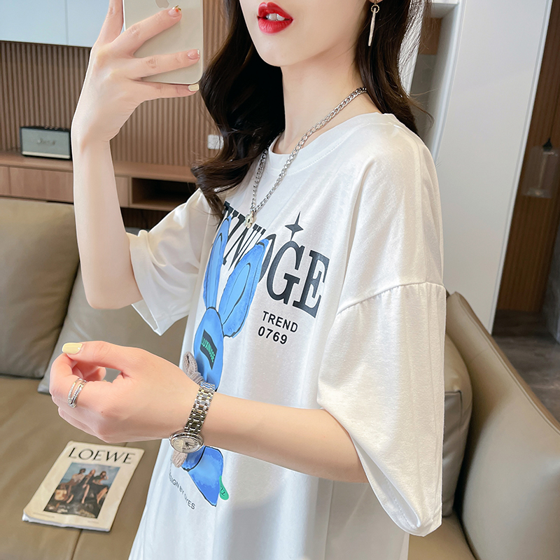 PF256#棉质后包条抖音质量 印花短袖t恤女宽松大码上衣