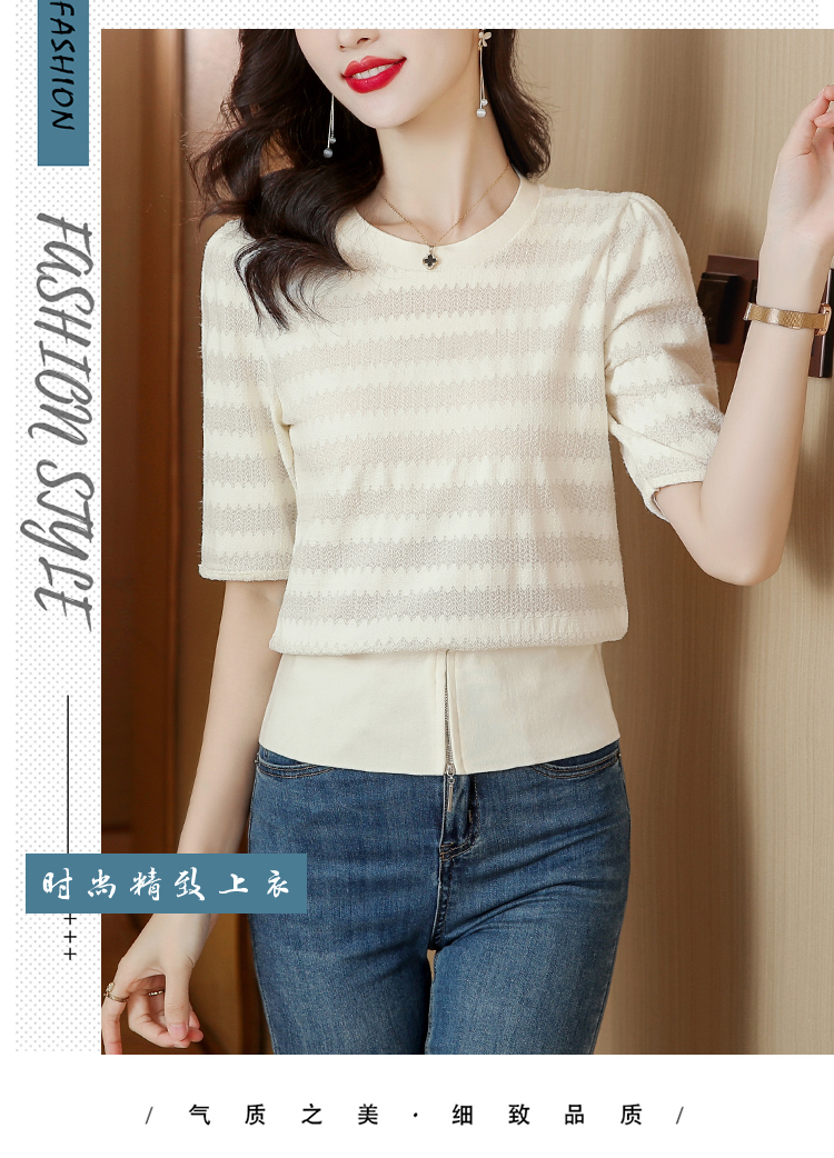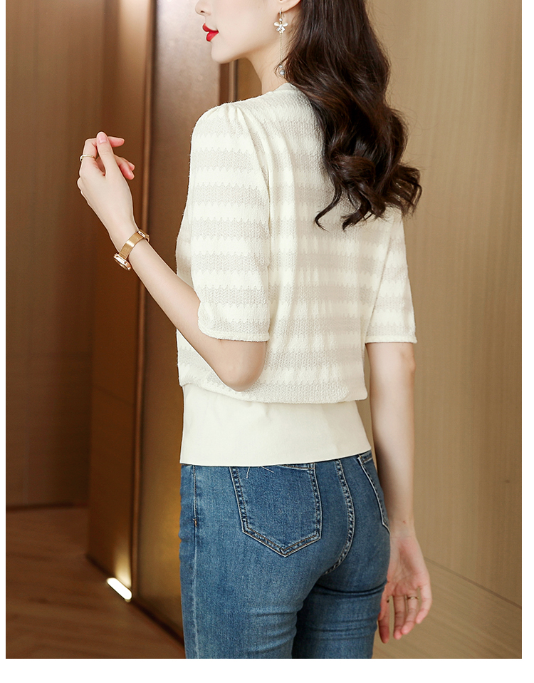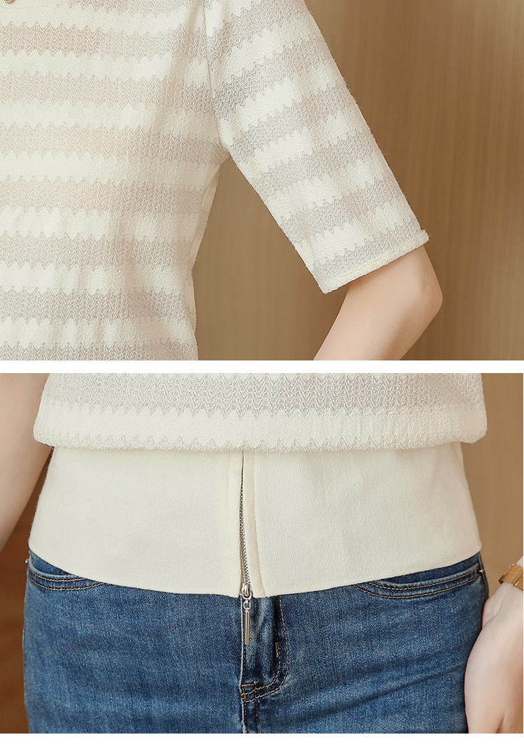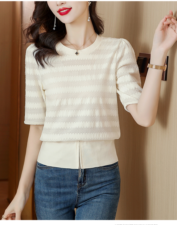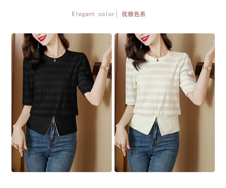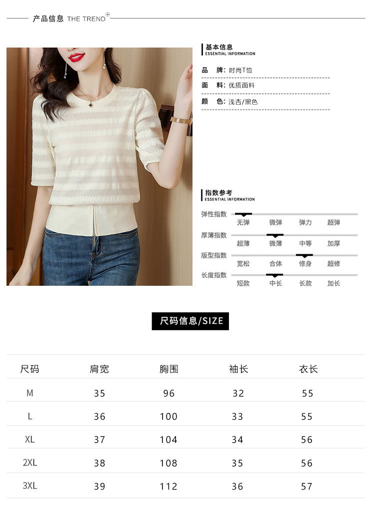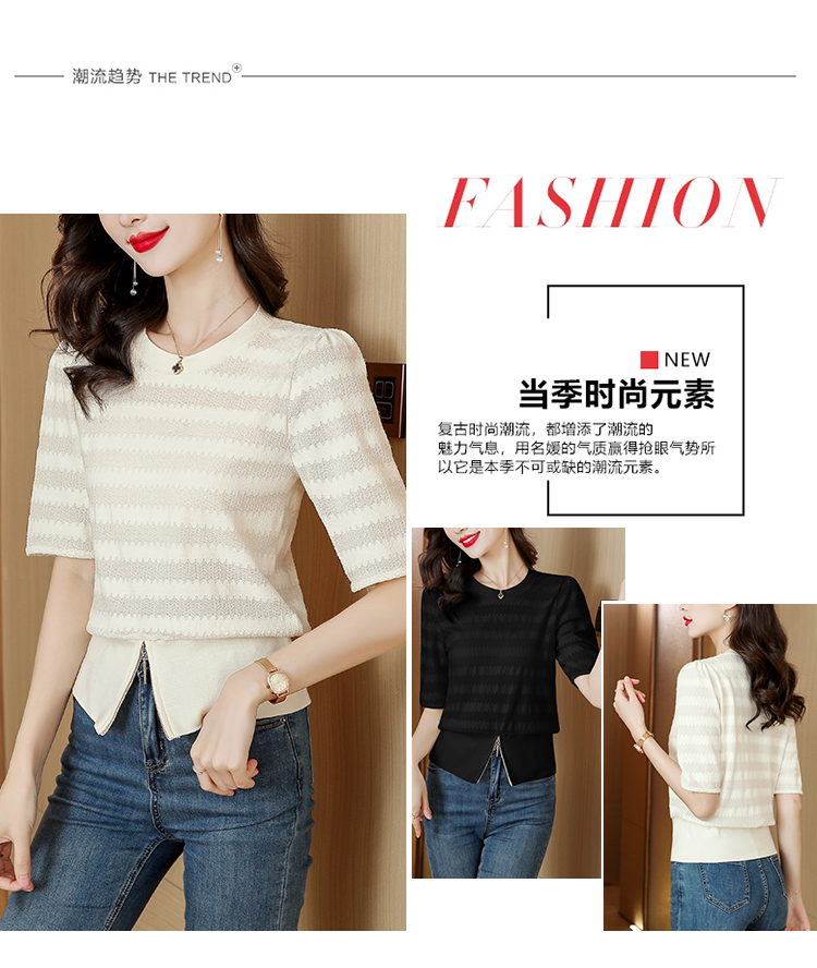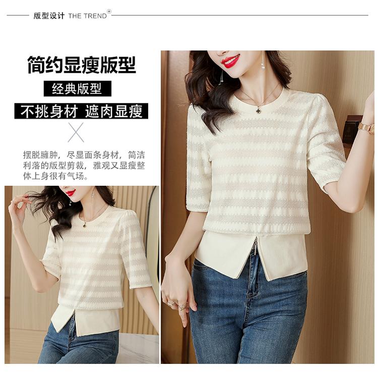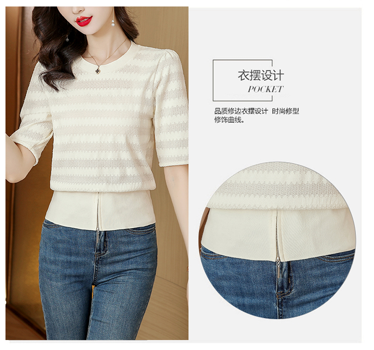 PF269#新款圆领t恤女薄款镂空短款高腰中袖设计感上衣百搭