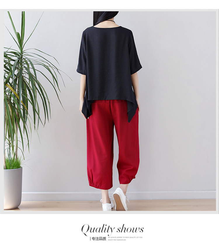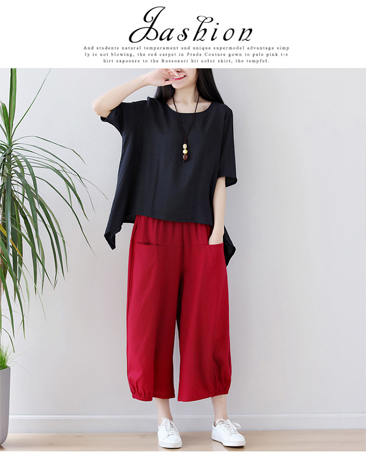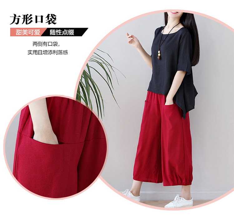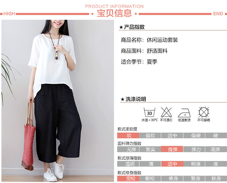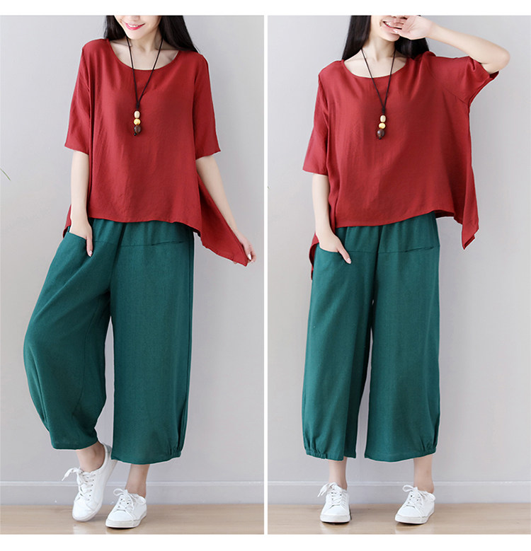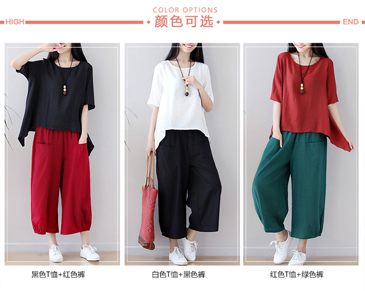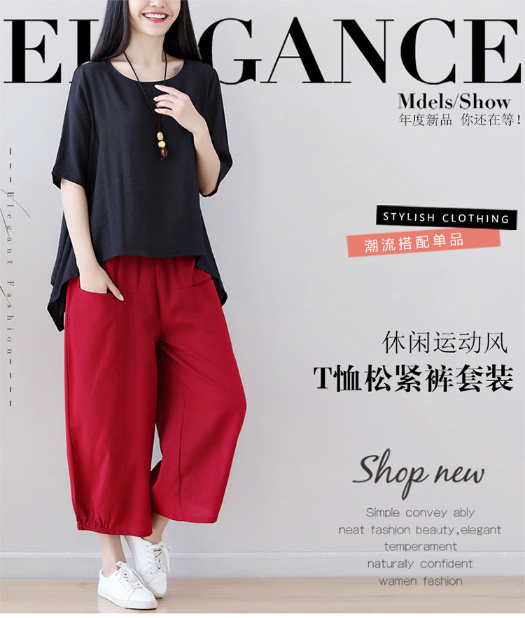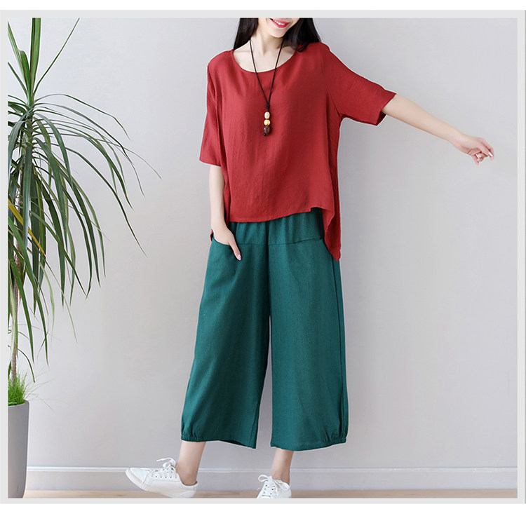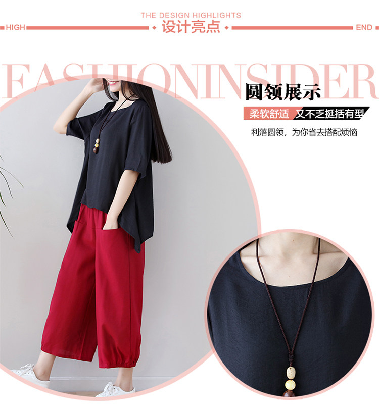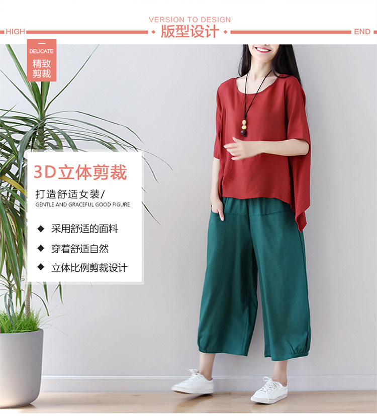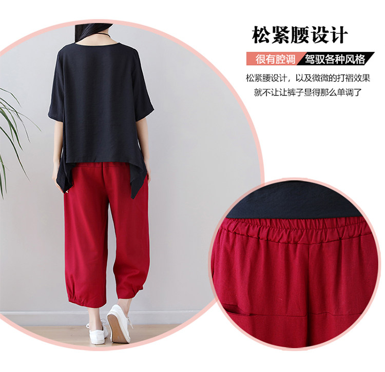 PF276#棉麻套装女夏季韩版宽松大码阔腿裤套装时尚九分裤休闲亚麻两件套