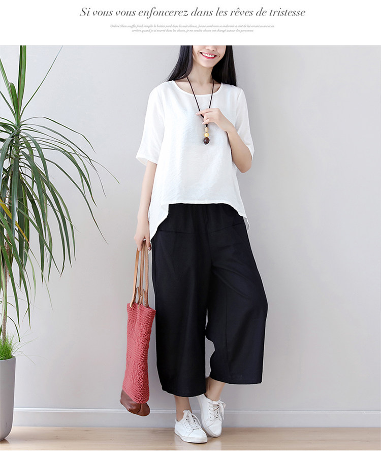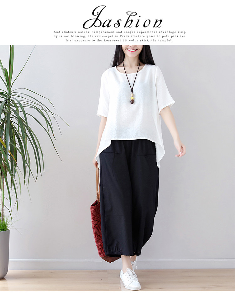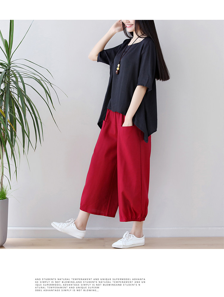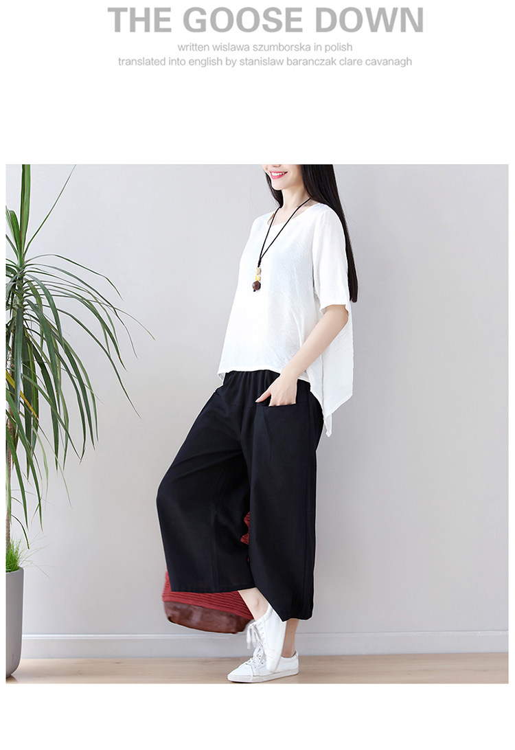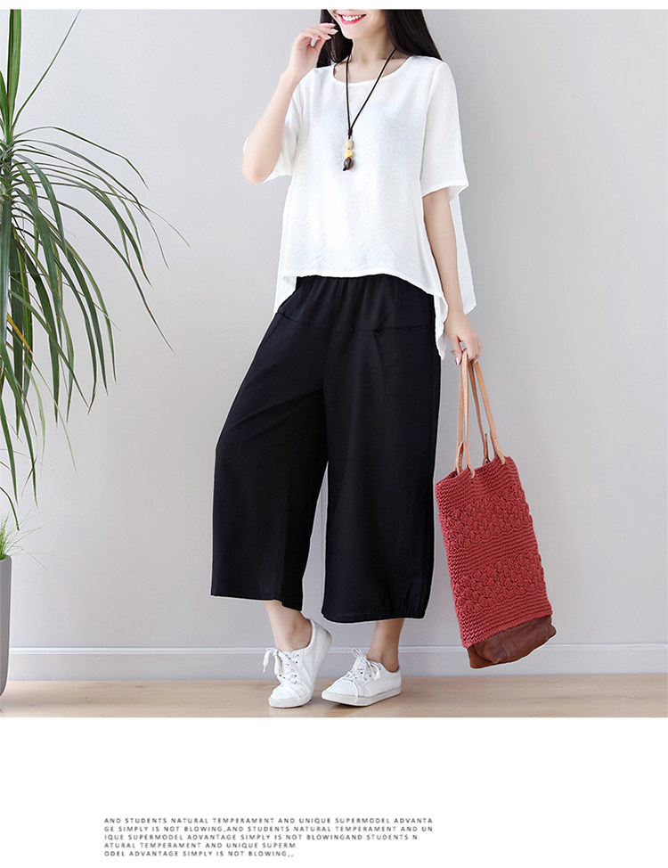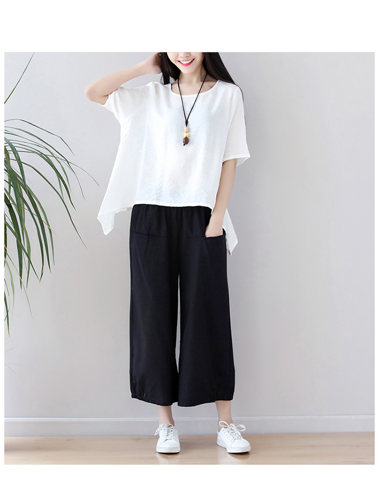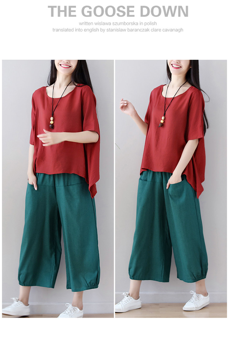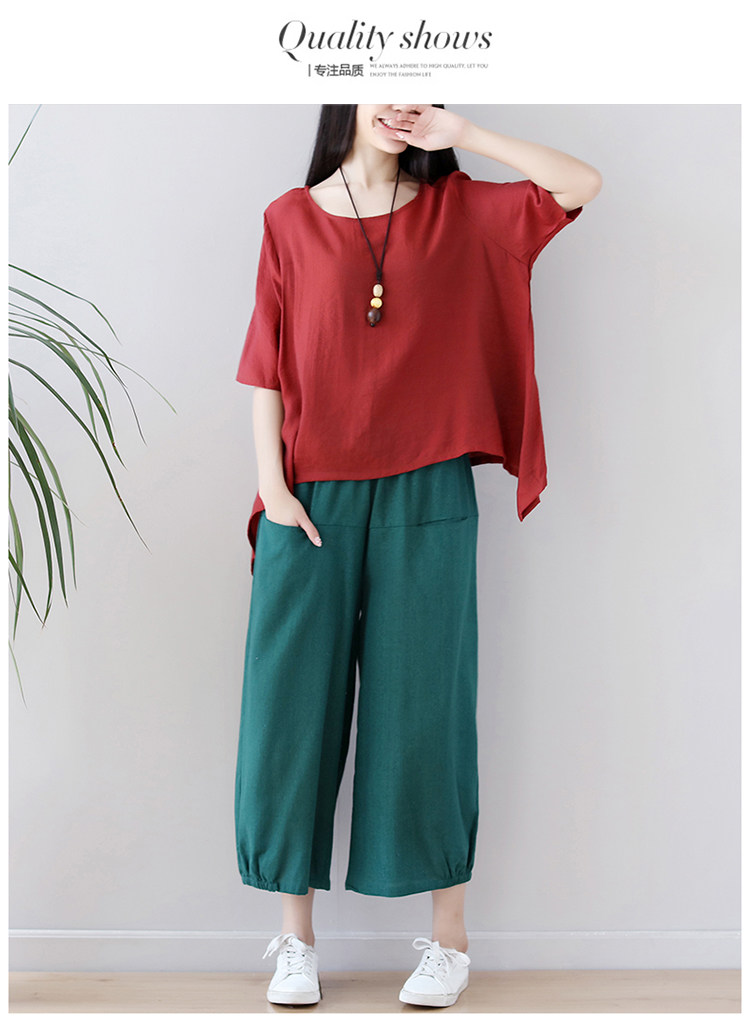 PF276#棉麻套装女夏季韩版宽松大码阔腿裤套装时尚九分裤休闲亚麻两件套
