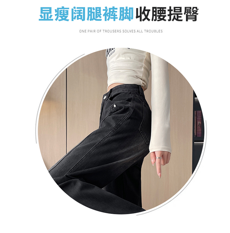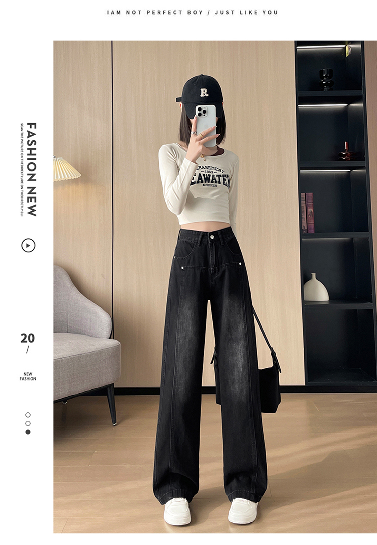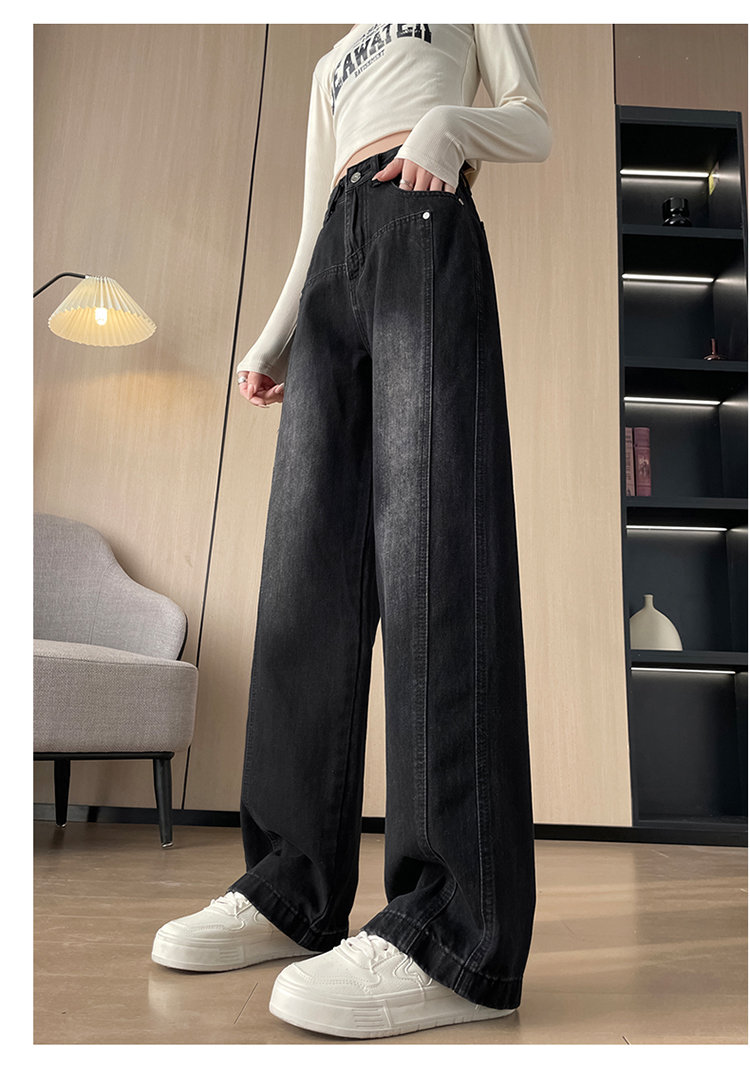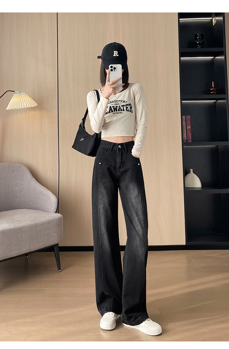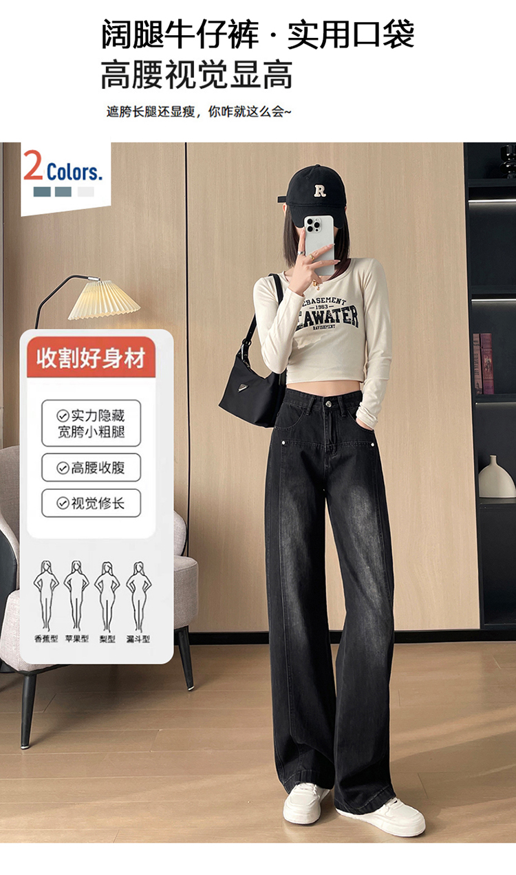 PF337#直筒水泥灰牛仔裤女 新款设计感宽松显瘦阔腿爆款裤子