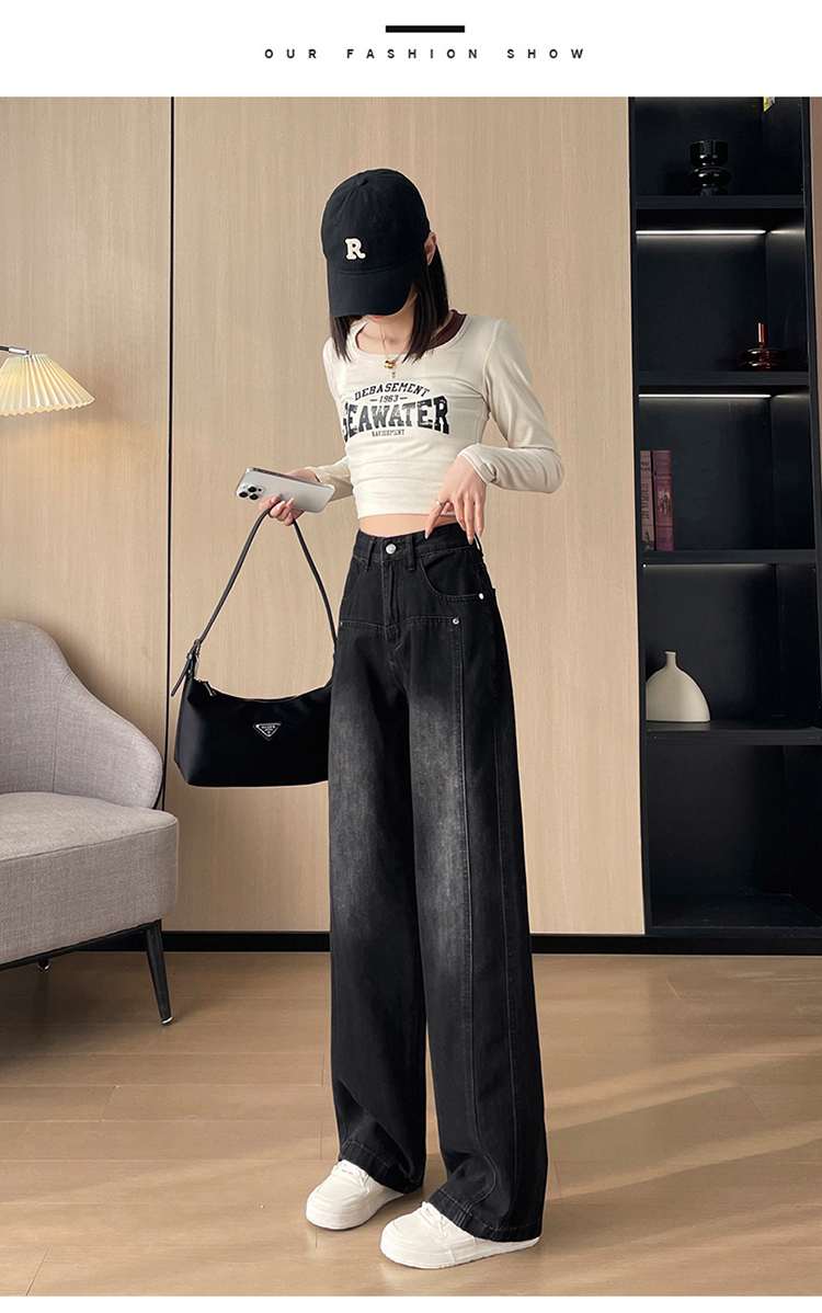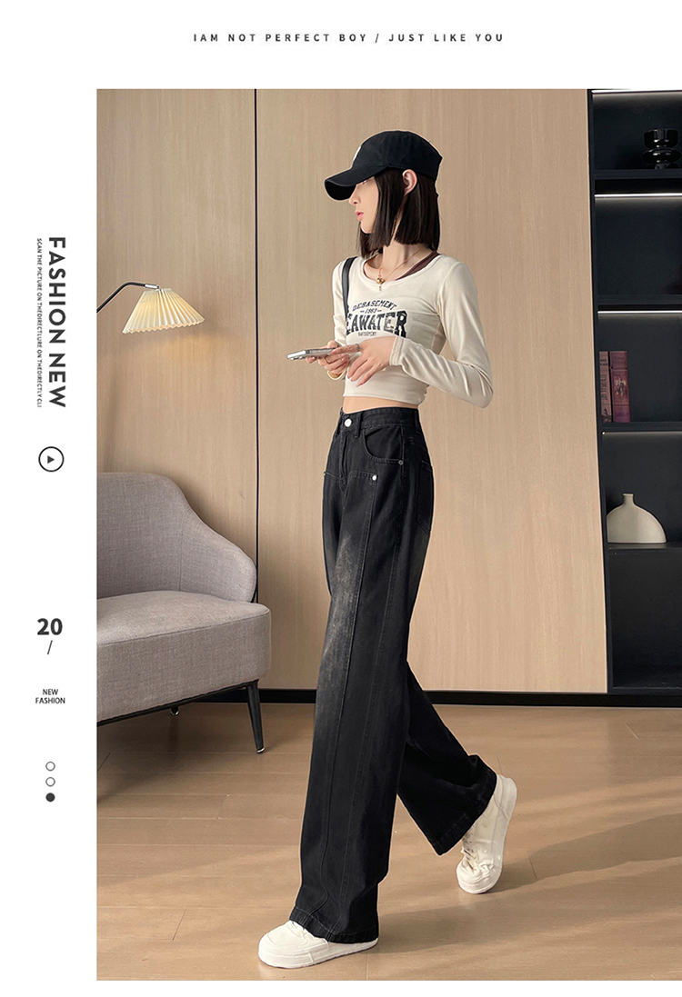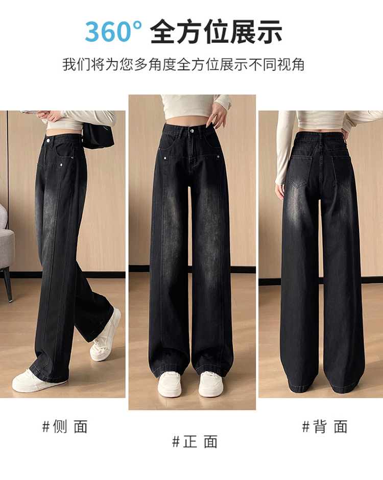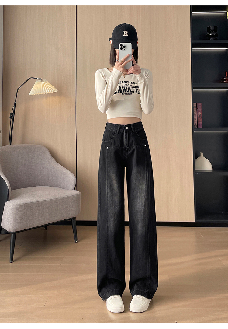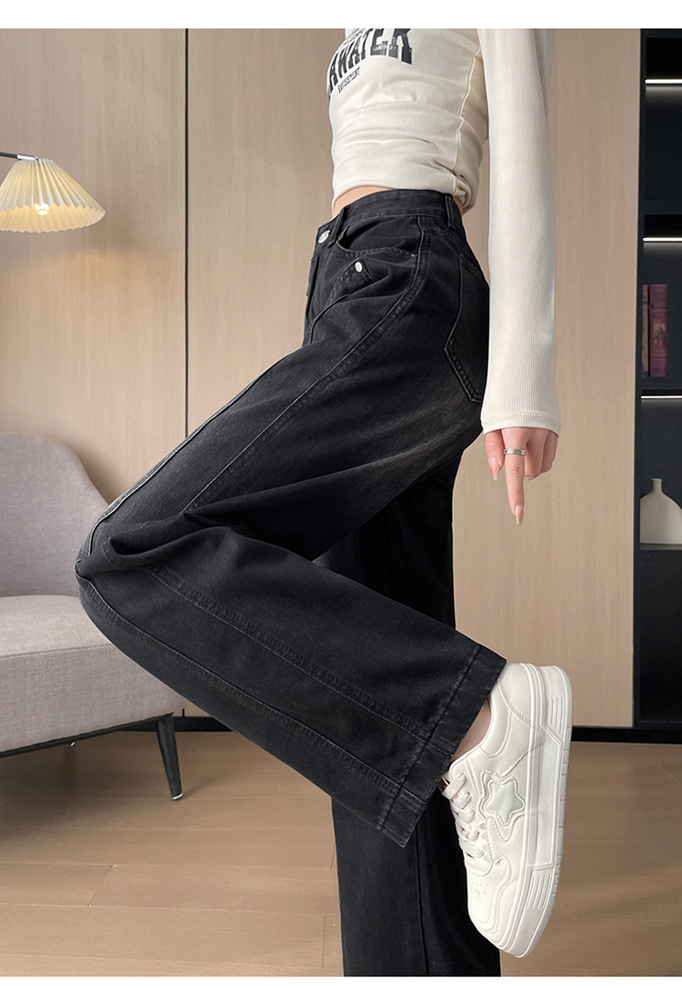 PF337#直筒水泥灰牛仔裤女 新款设计感宽松显瘦阔腿爆款裤子