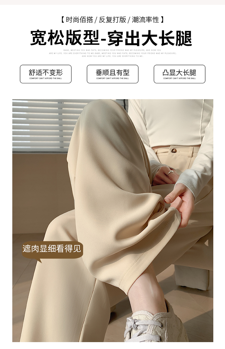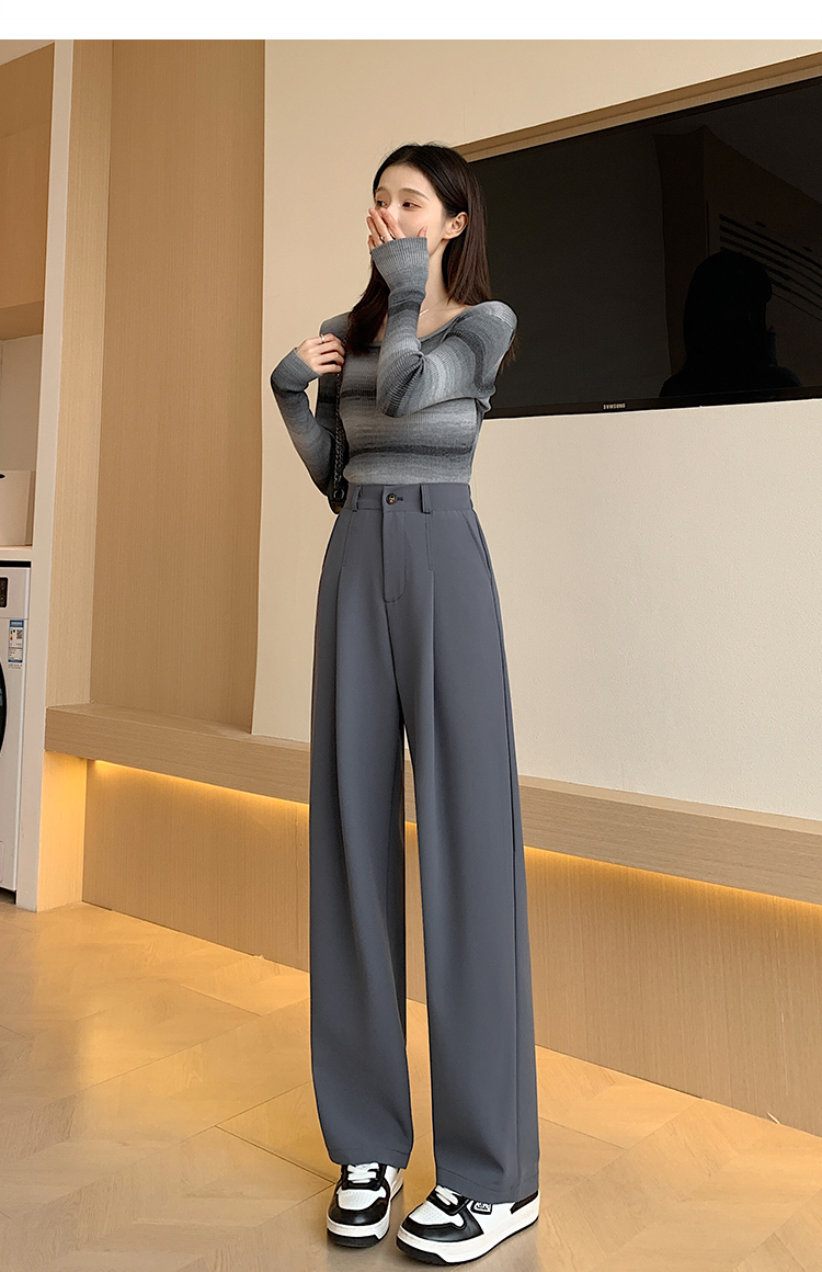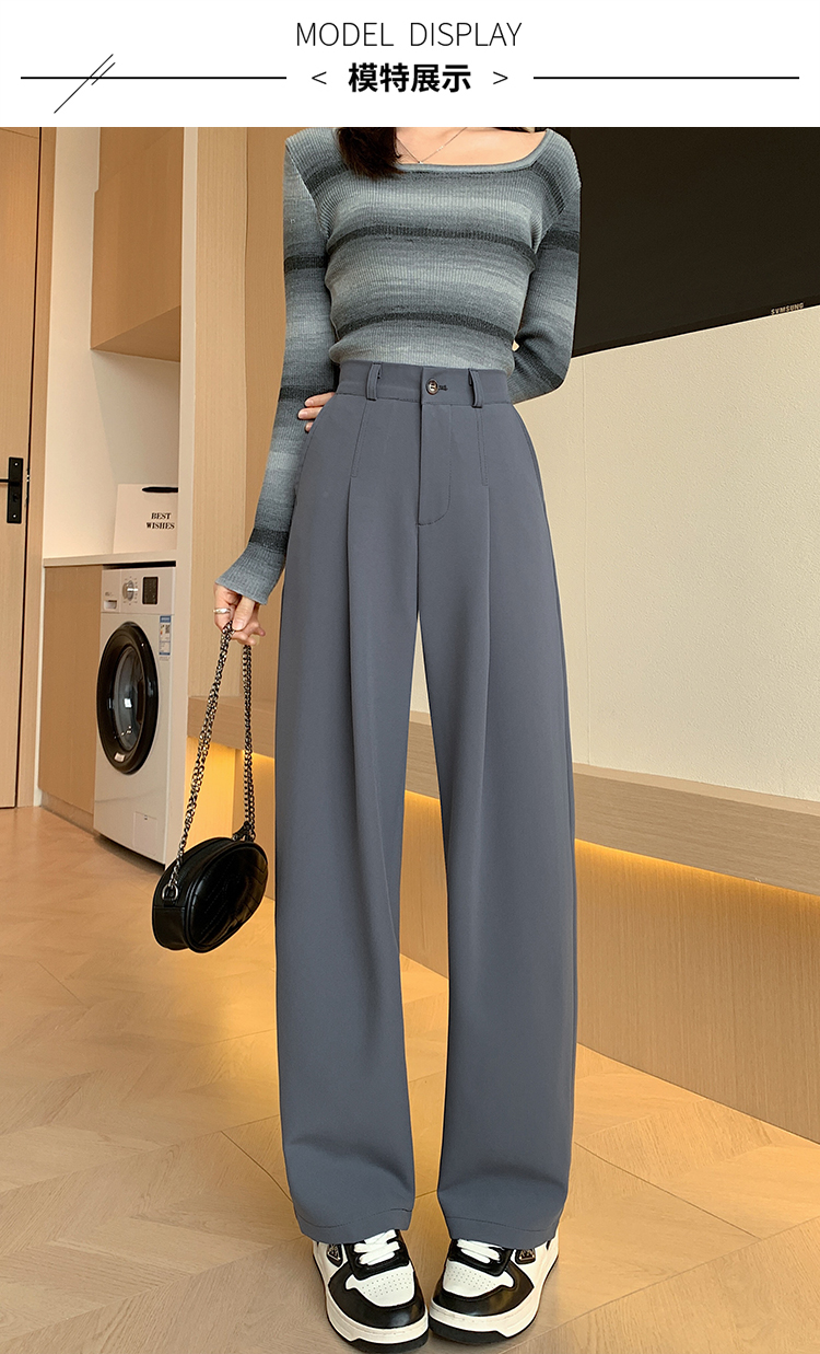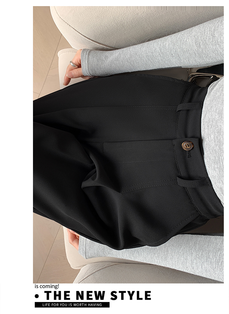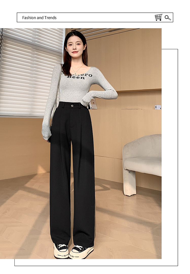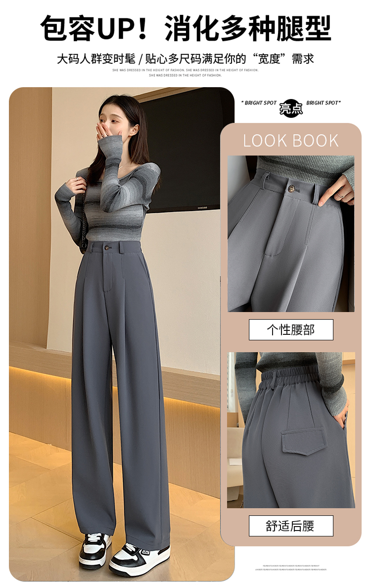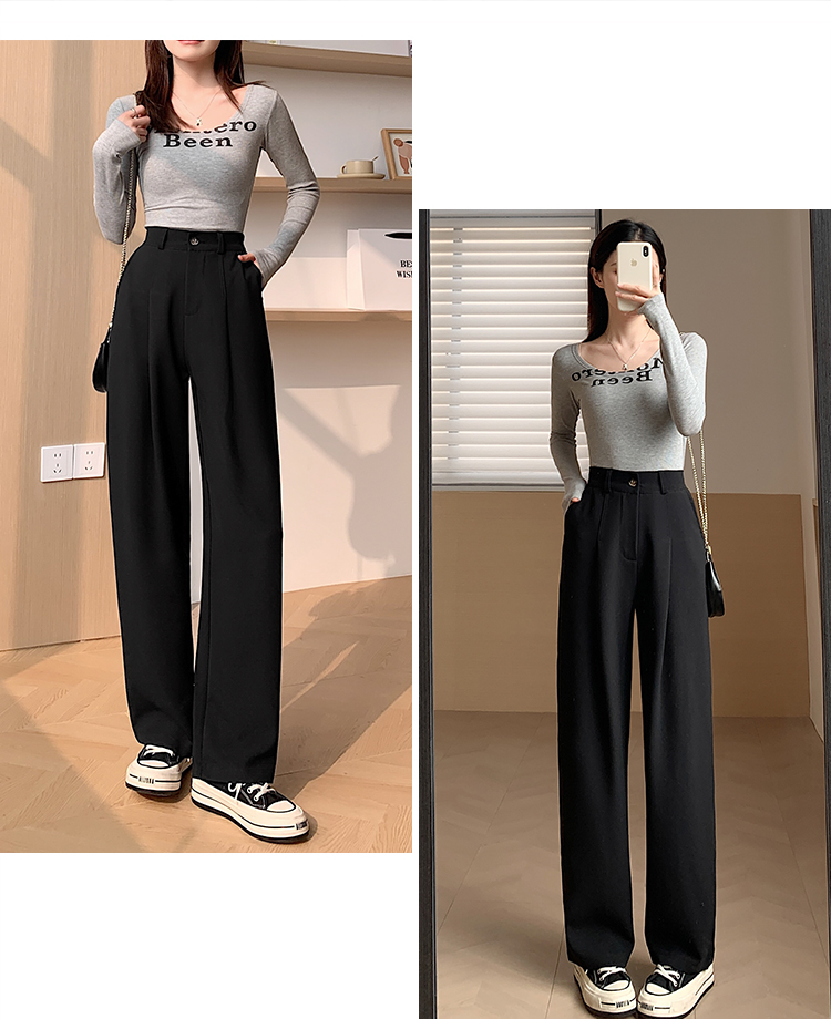 PF341#阔腿裤女春秋新款高腰宽松裤子垂感黑色秋冬窄版直筒裤西装裤