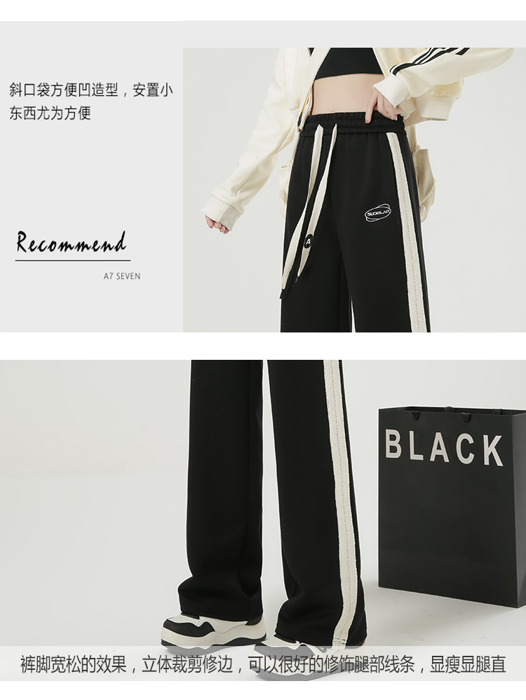 PF342#窄版阔腿裤女春秋裤子运动裤款宽松休闲直筒卫裤