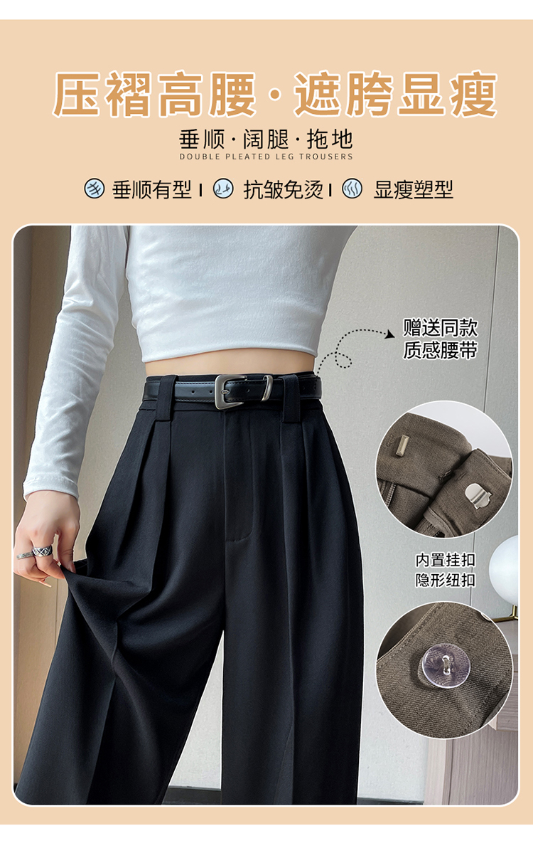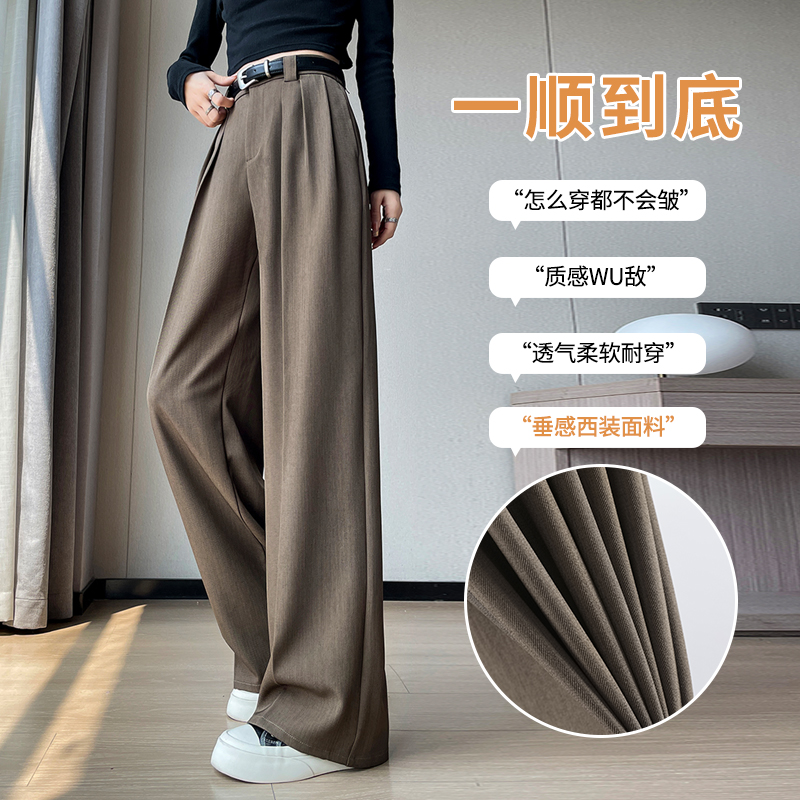 PF370#新款西装裤高腰窄版阔腿裤直筒休闲裤拖地裤女