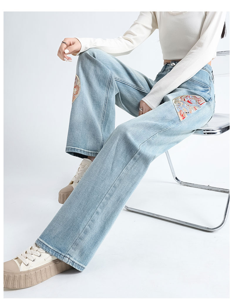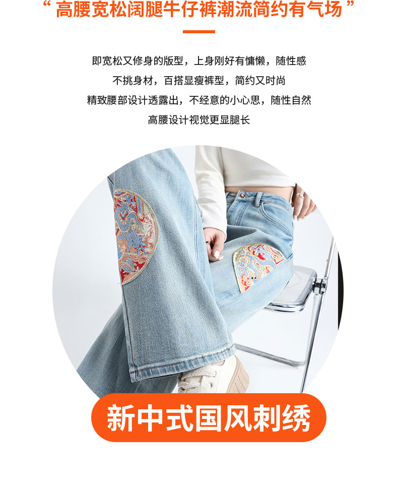 PF371#窄版直筒牛仔裤 爆款新中式国风设计感阔腿裤