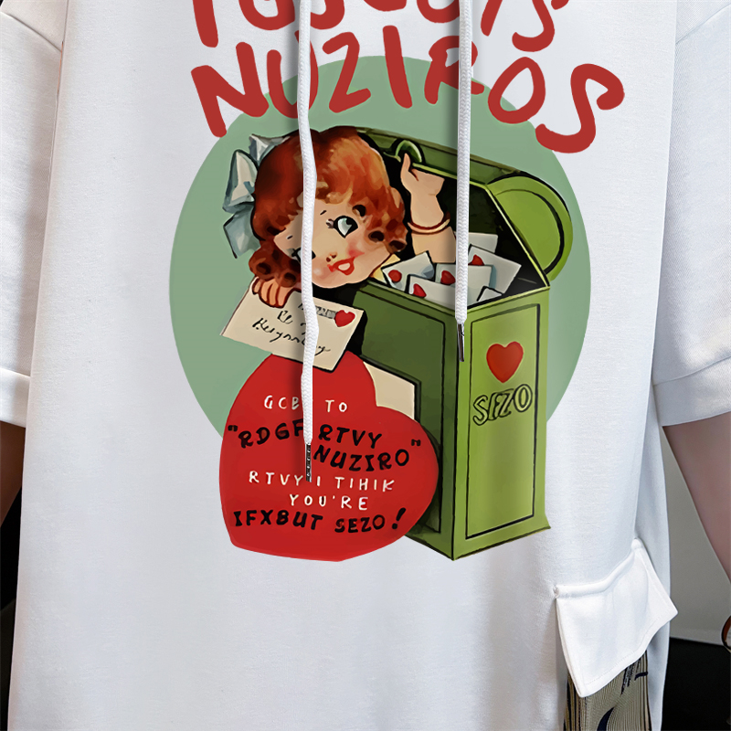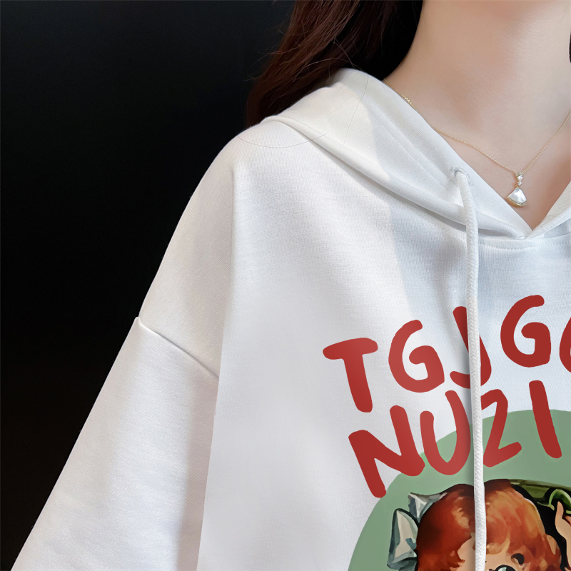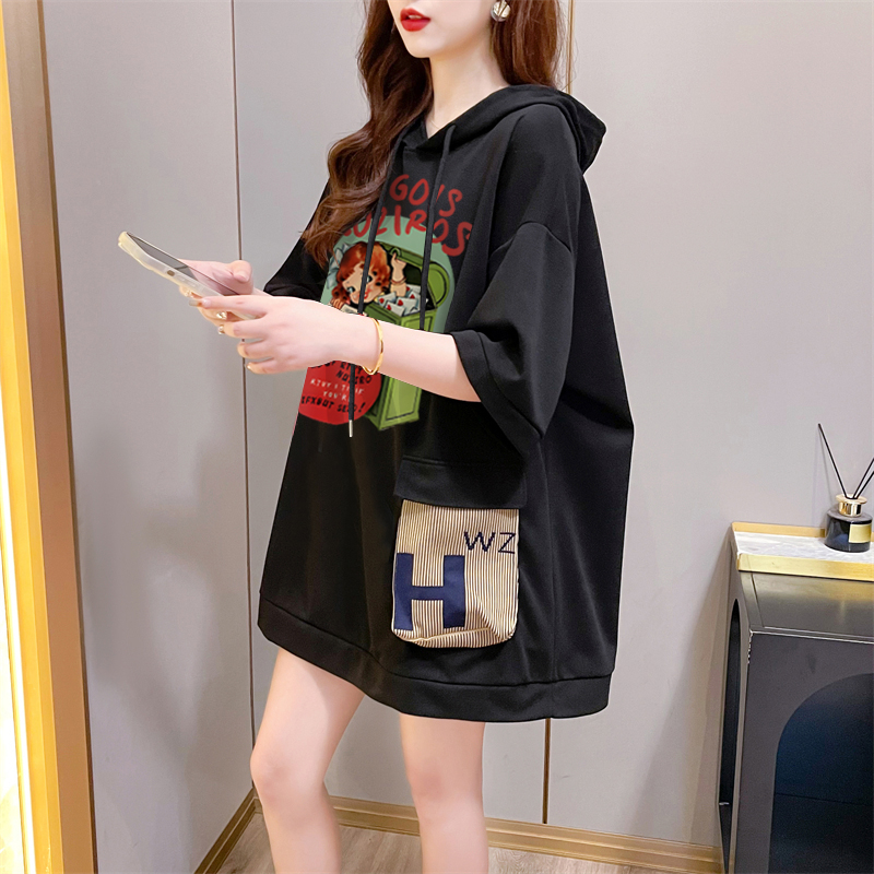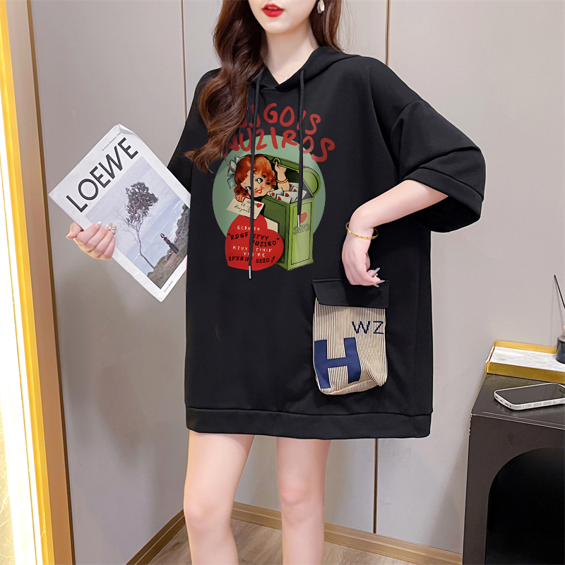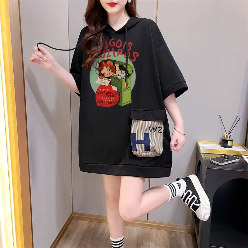 PF395#纯棉|抖音质量 连帽短袖t恤女中长款夏季宽松大码上衣