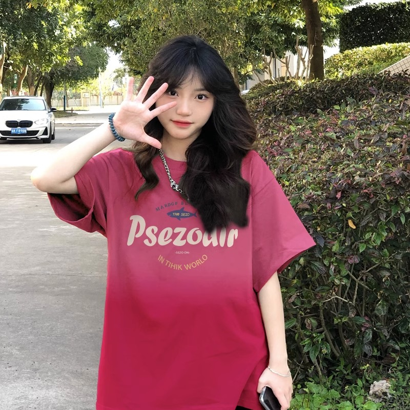 PF483#印花扎染21支纯棉220克后包领220斤特大码港风渐变T恤
