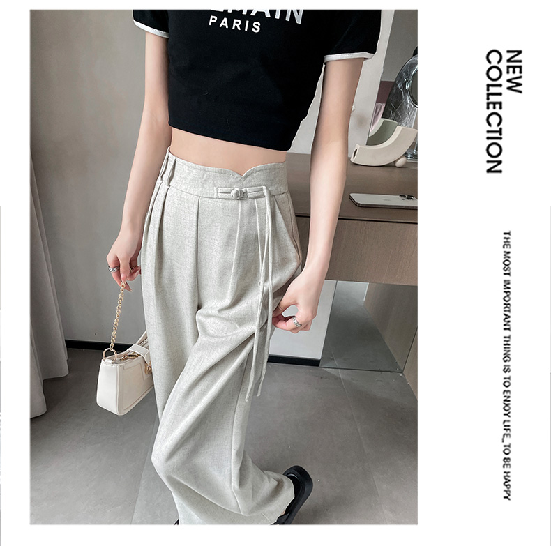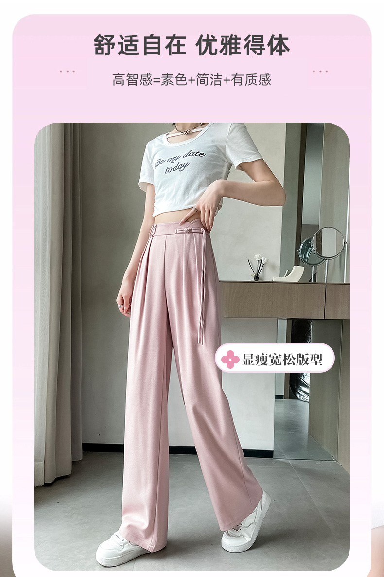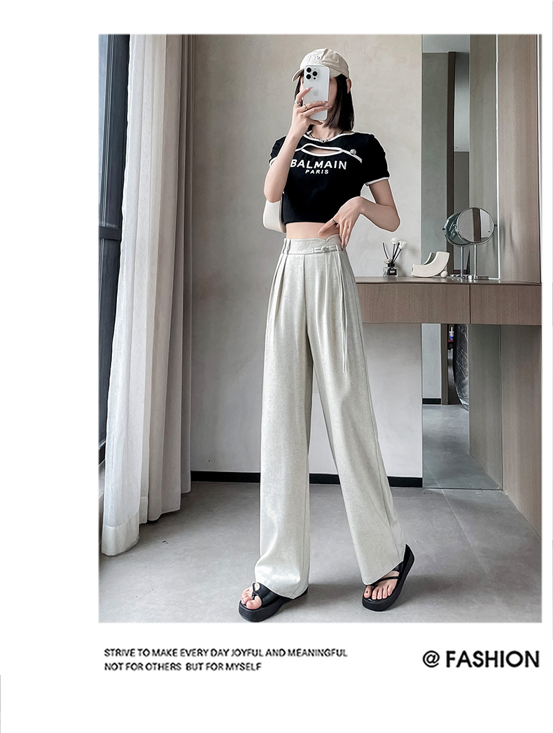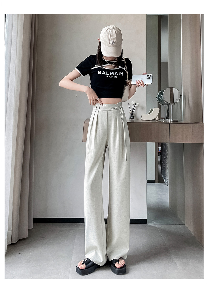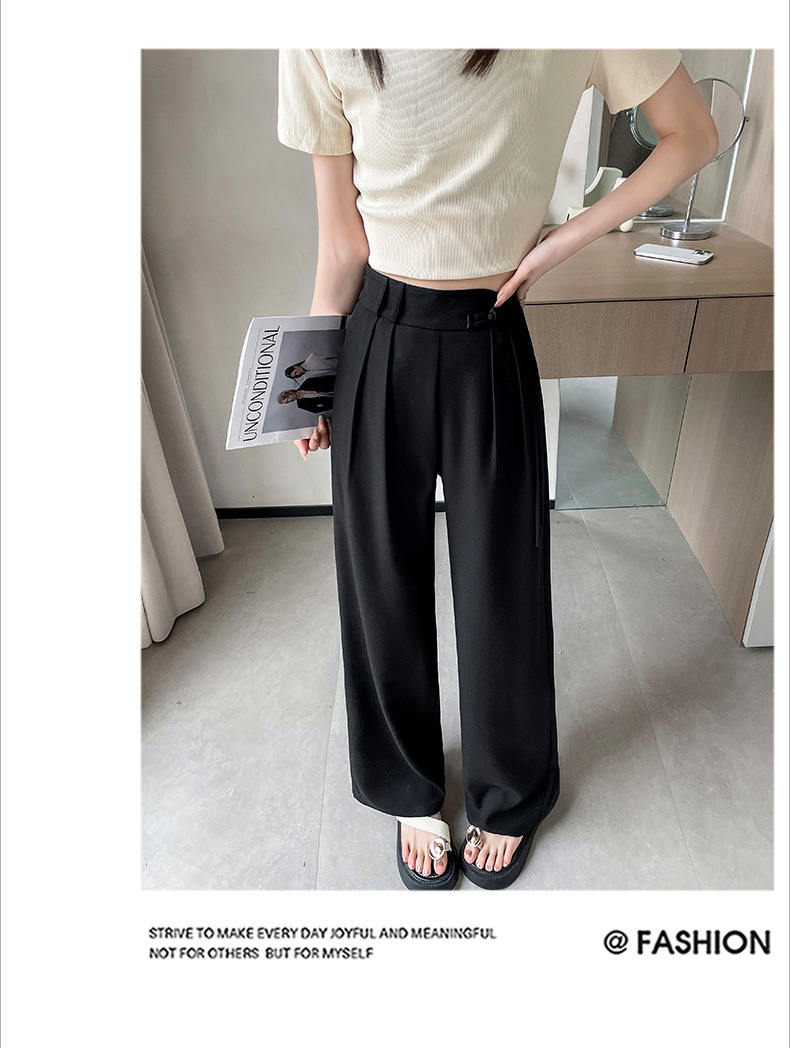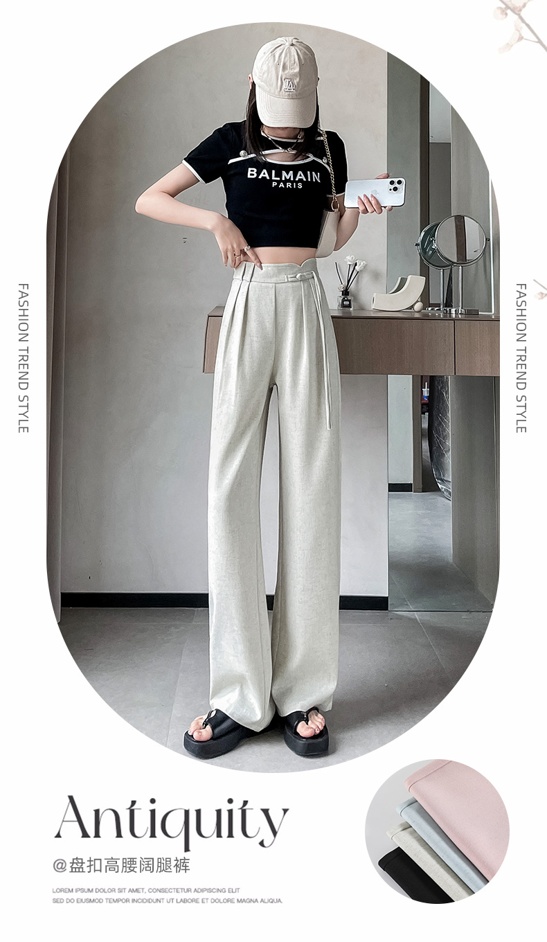 PF504#新国风高腰阔腿裤女垂感直筒新中式设计感休闲拖地裤