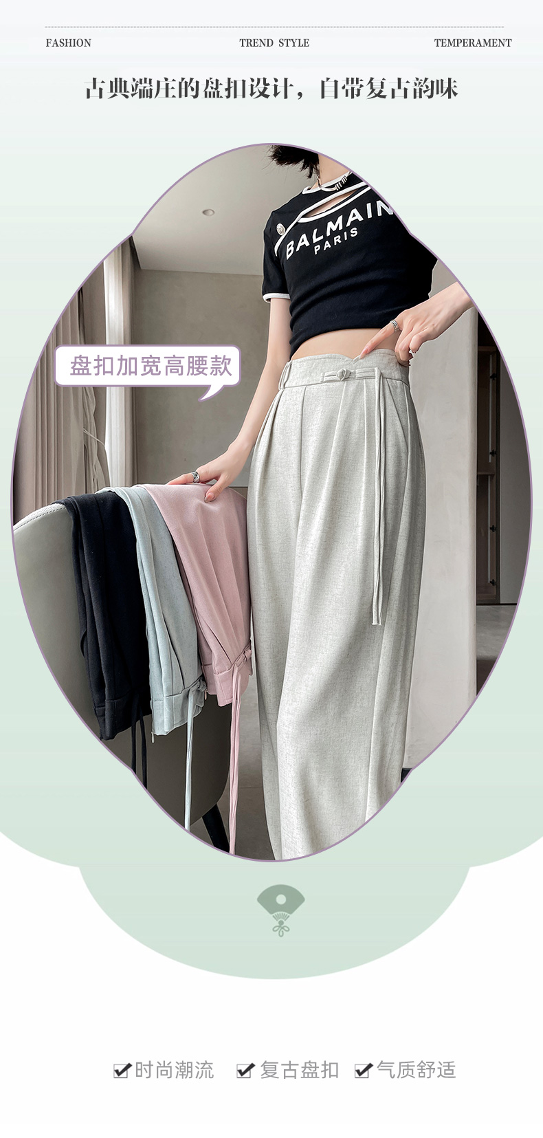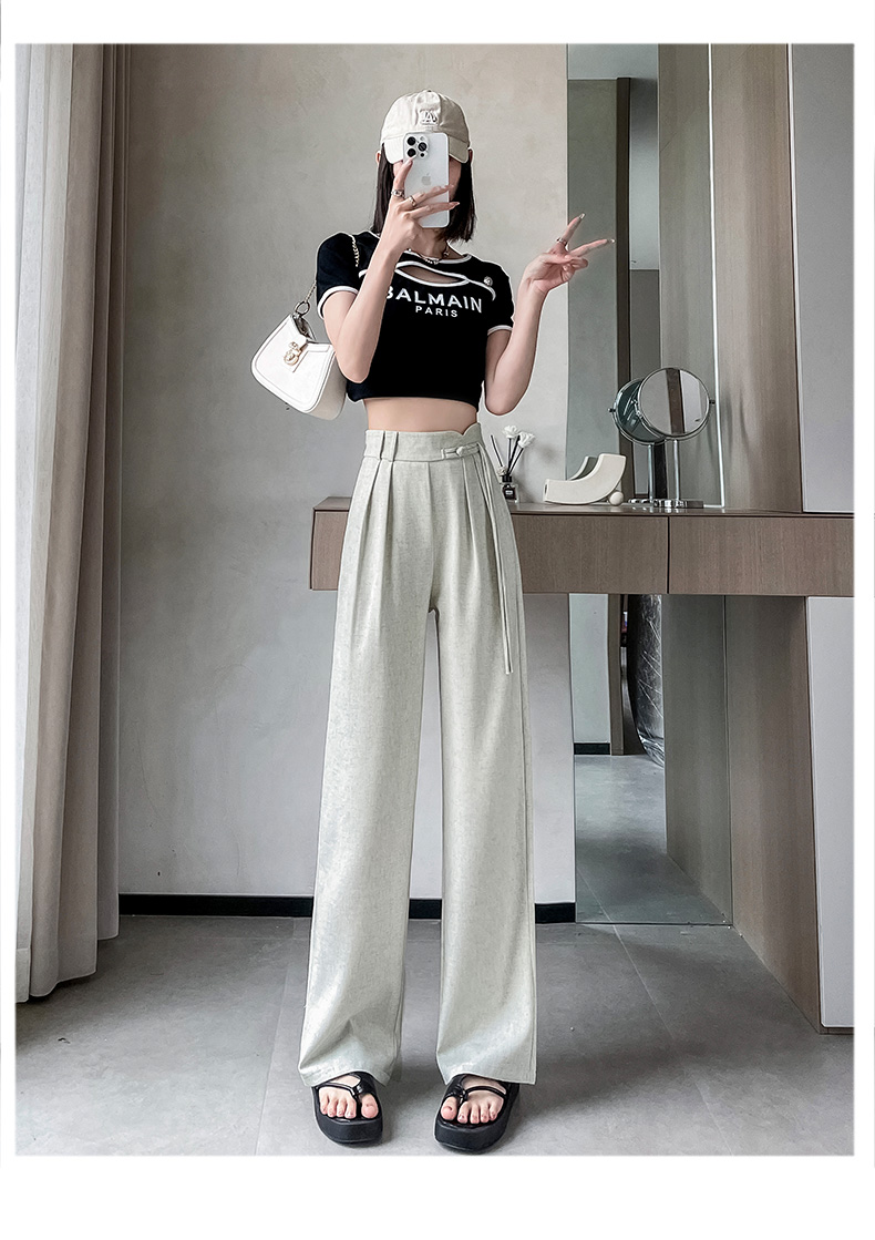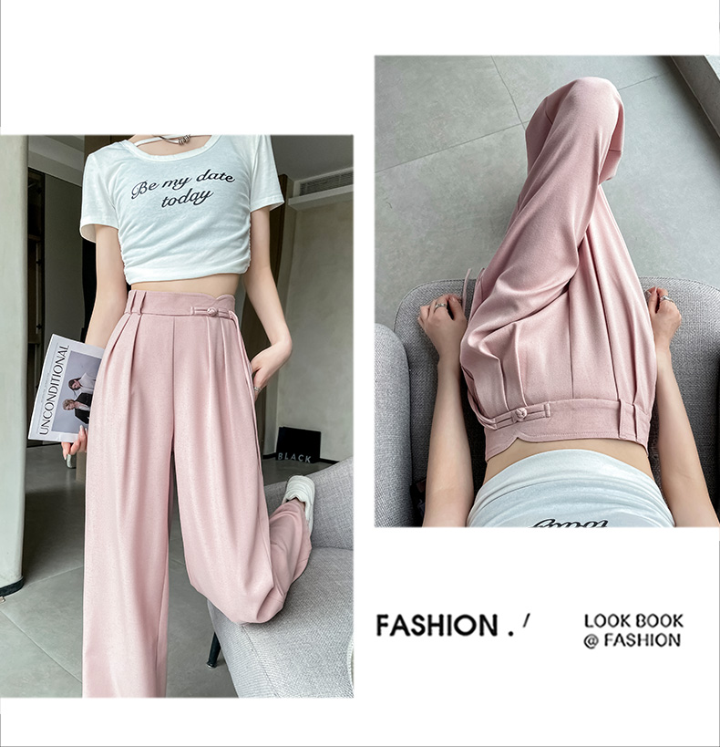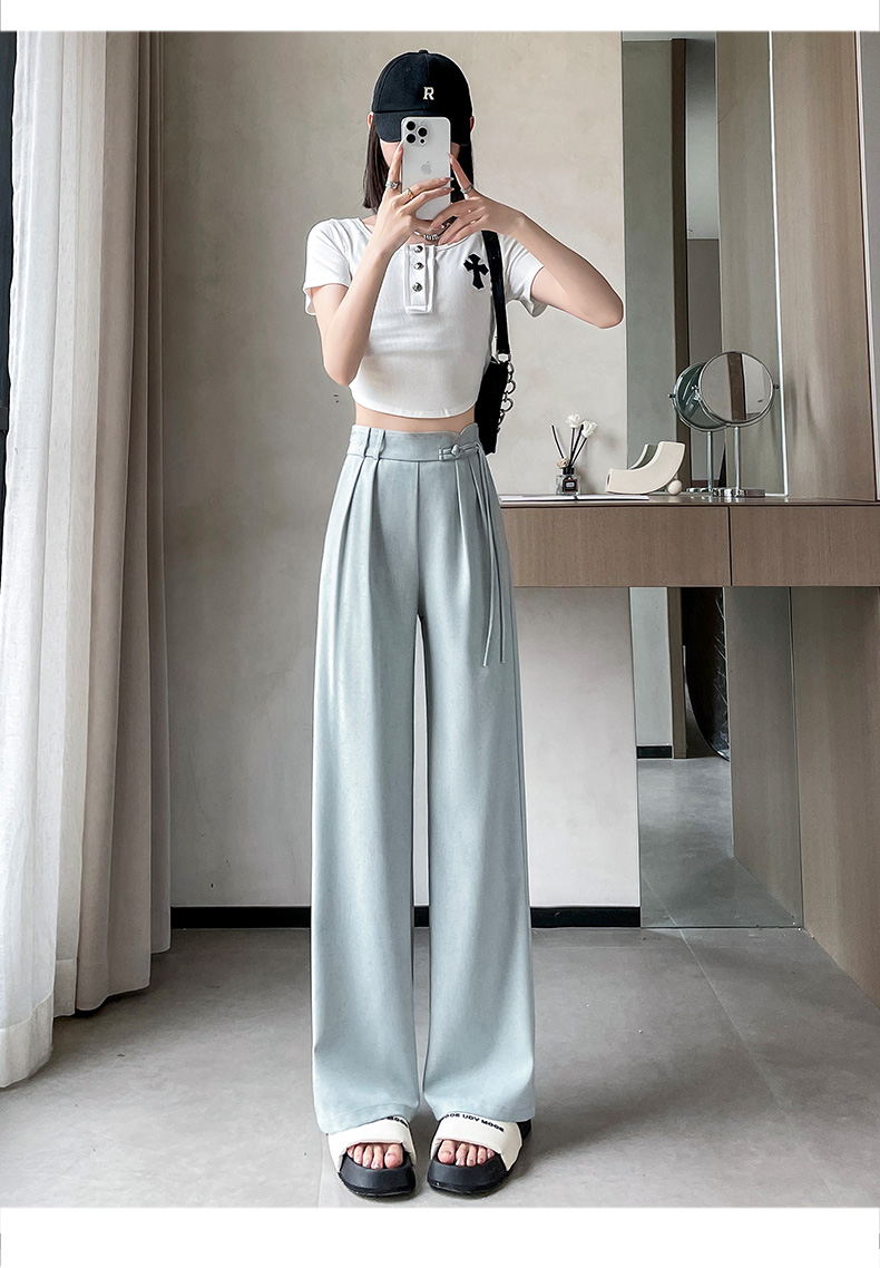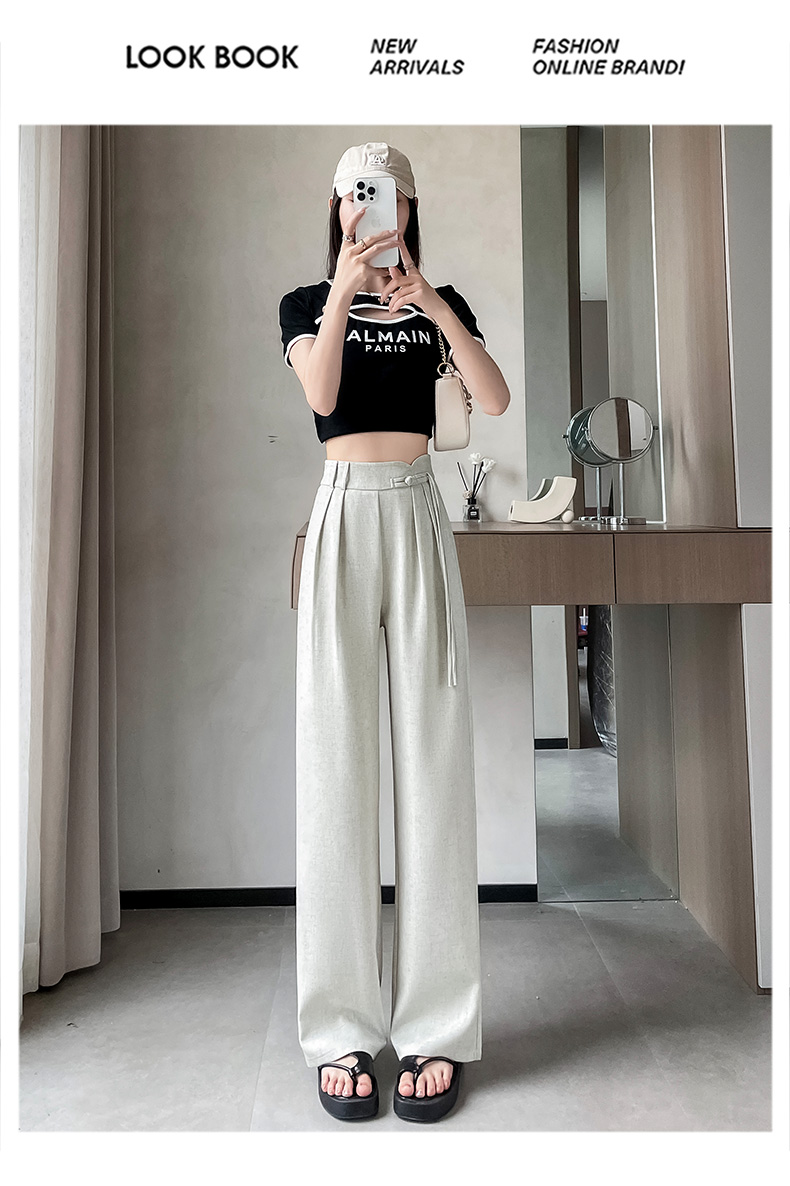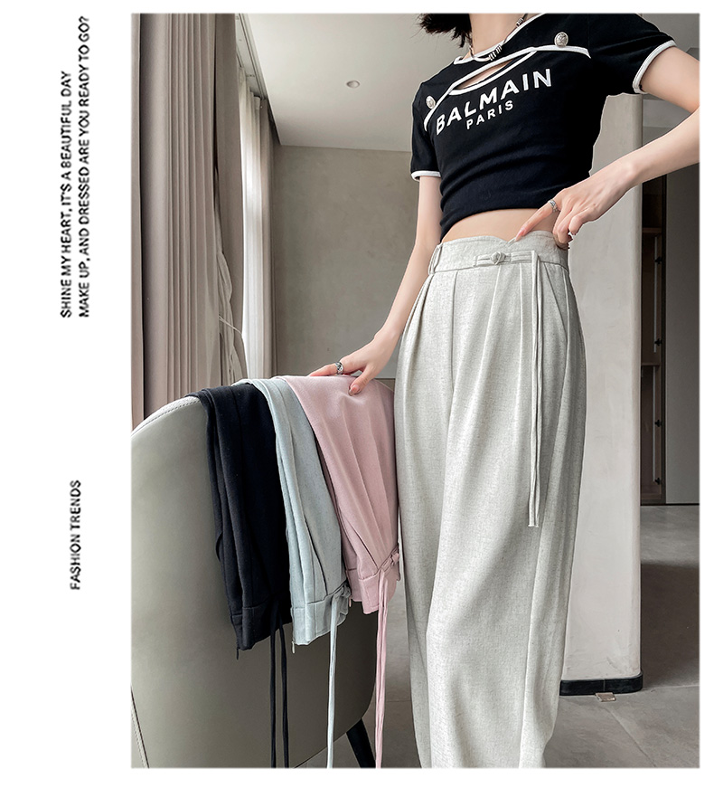 PF504#新国风高腰阔腿裤女垂感直筒新中式设计感休闲拖地裤