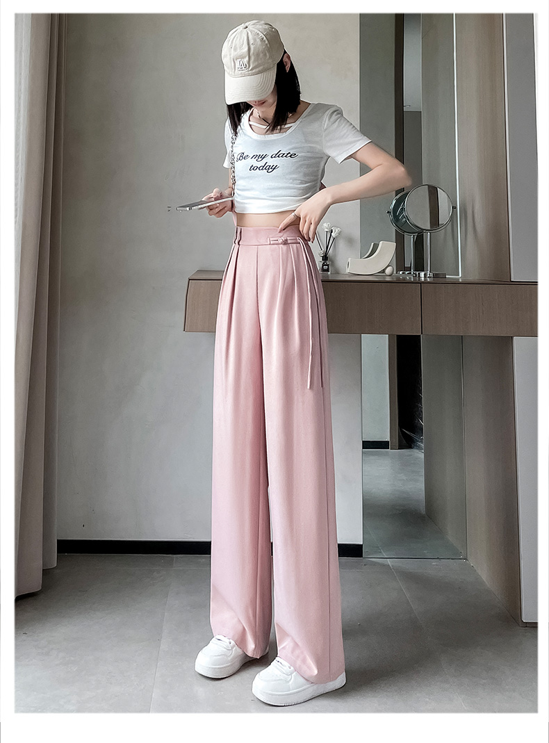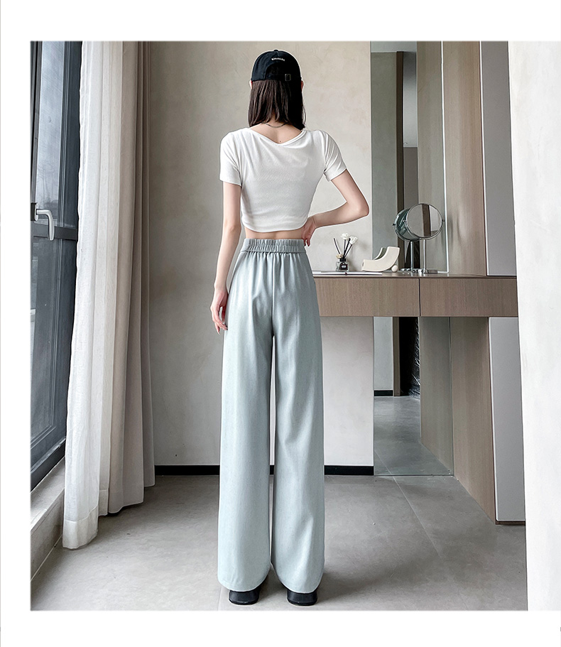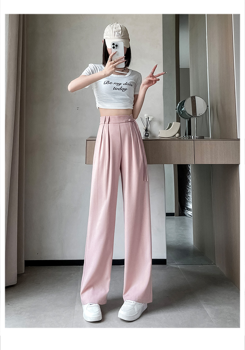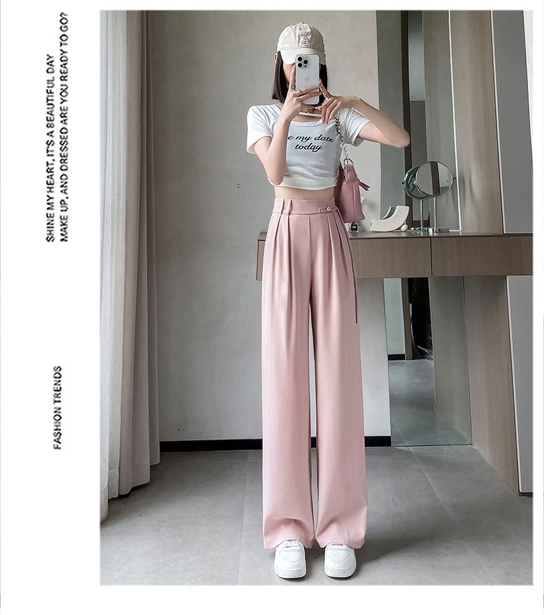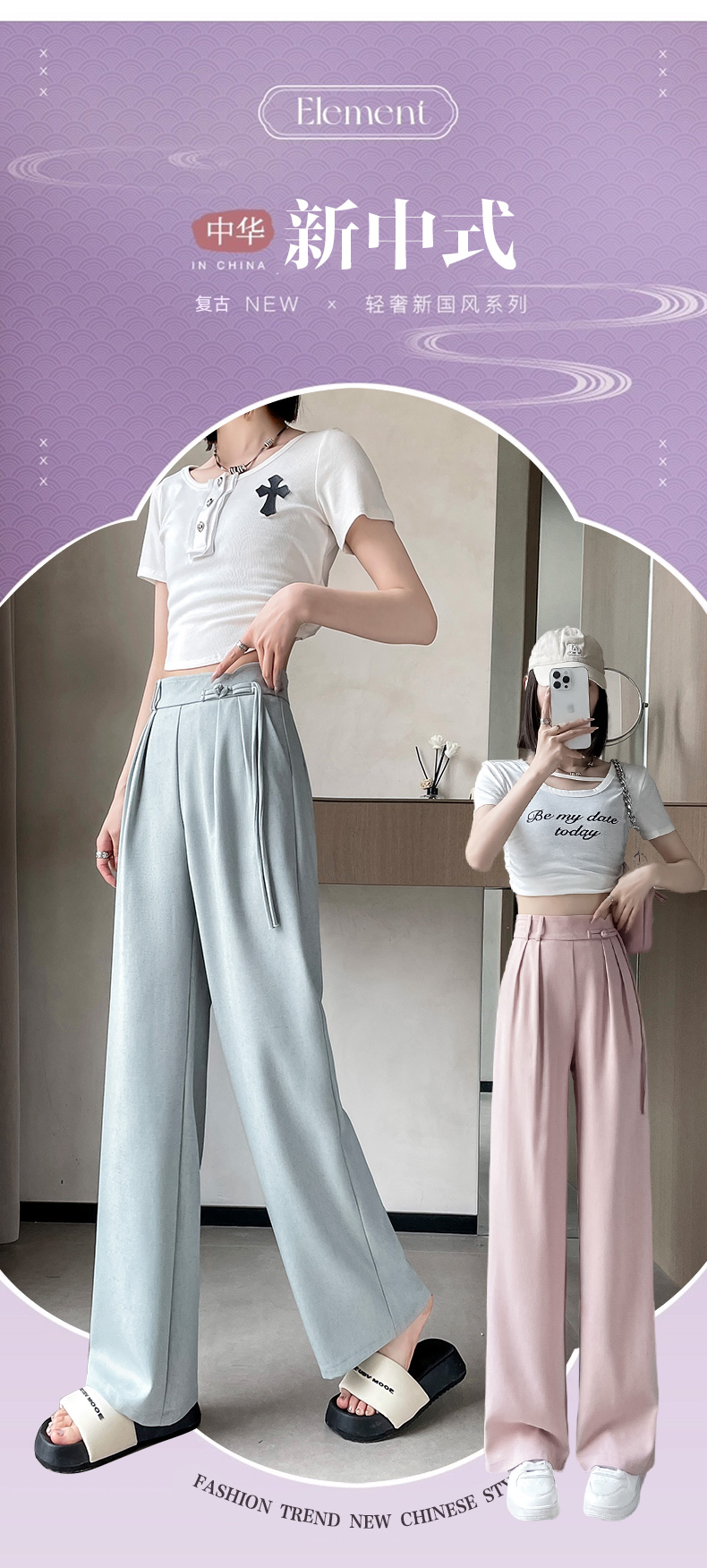 PF504#新国风高腰阔腿裤女垂感直筒新中式设计感休闲拖地裤