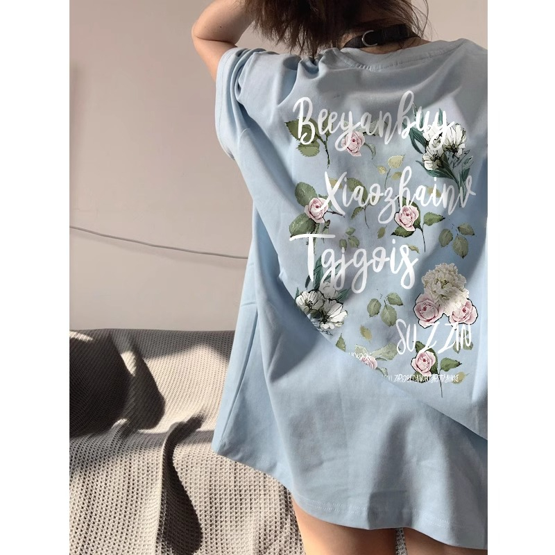 PF513#夏季新款字母花朵印花短袖T恤