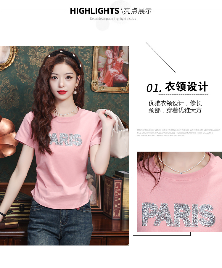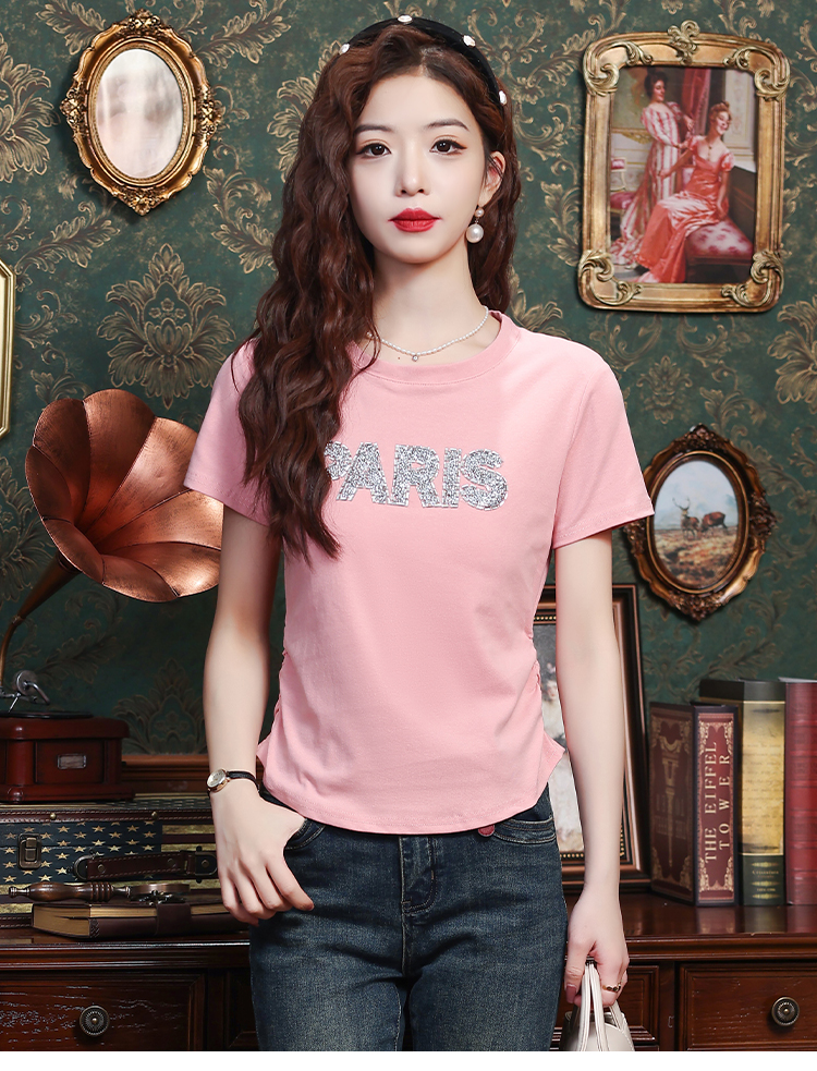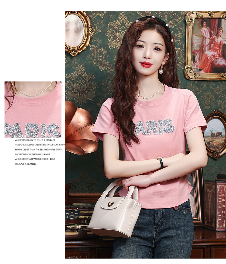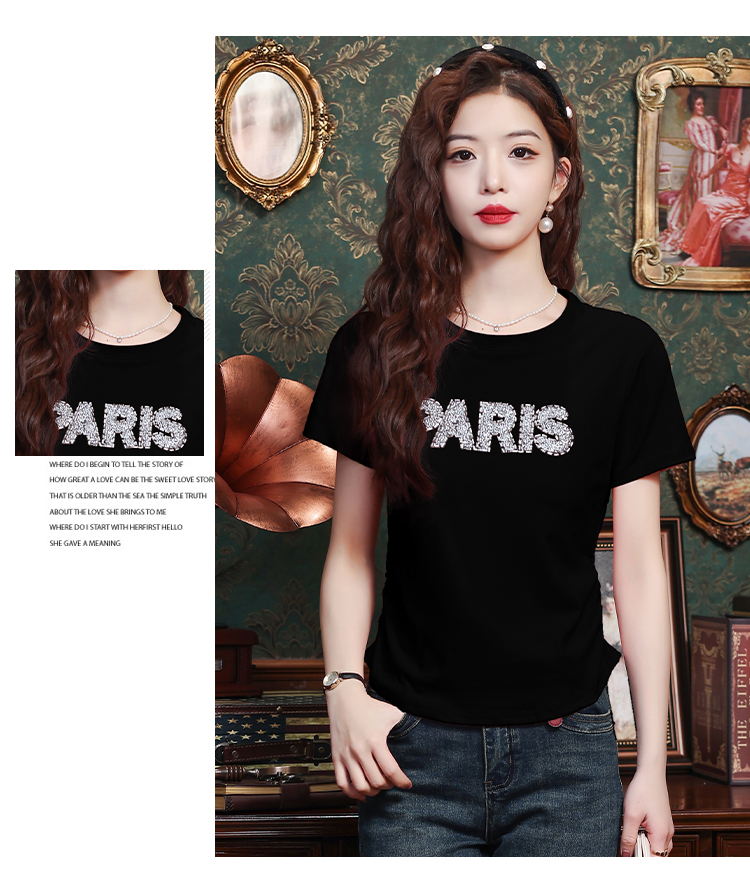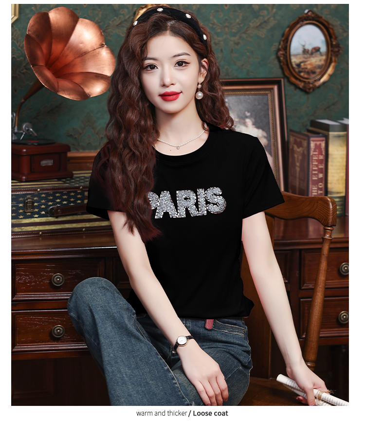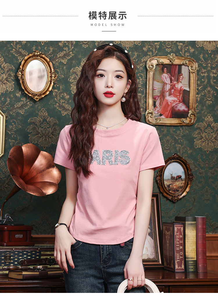 PF539#欧货T恤女短袖2024夏季百搭镶钻字母紧身又甜小众短袖上衣ing