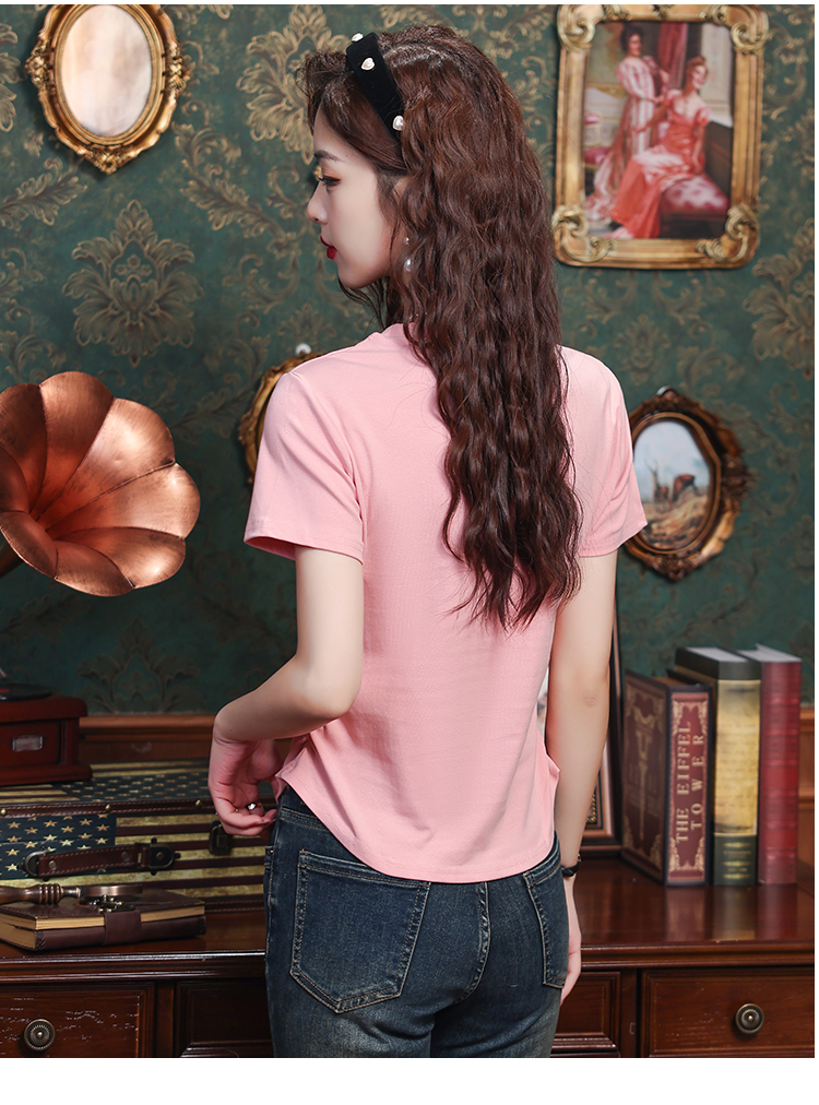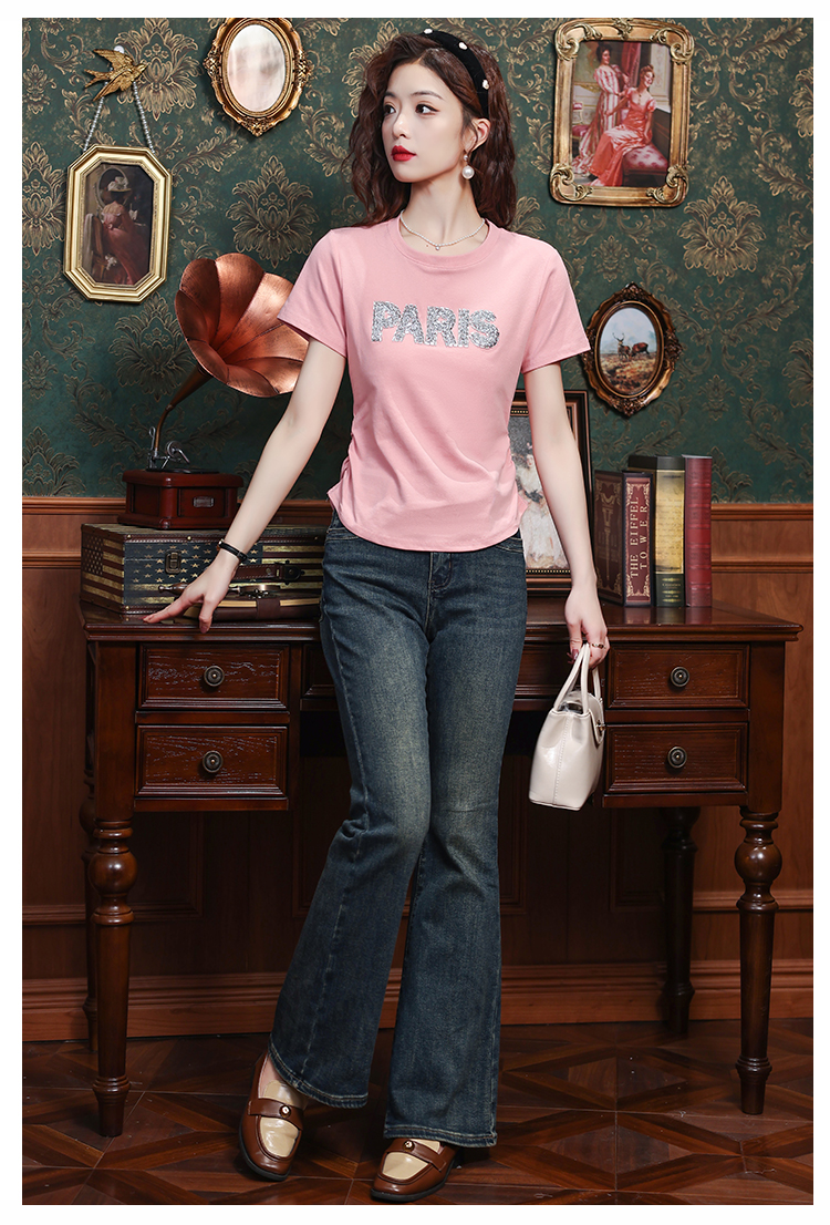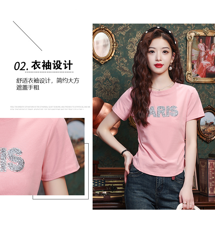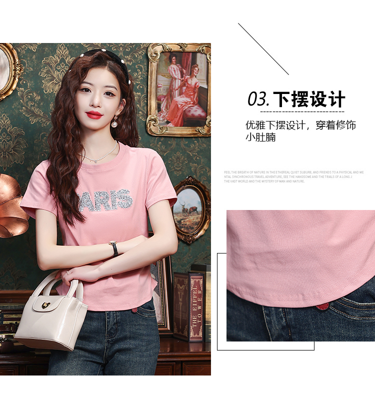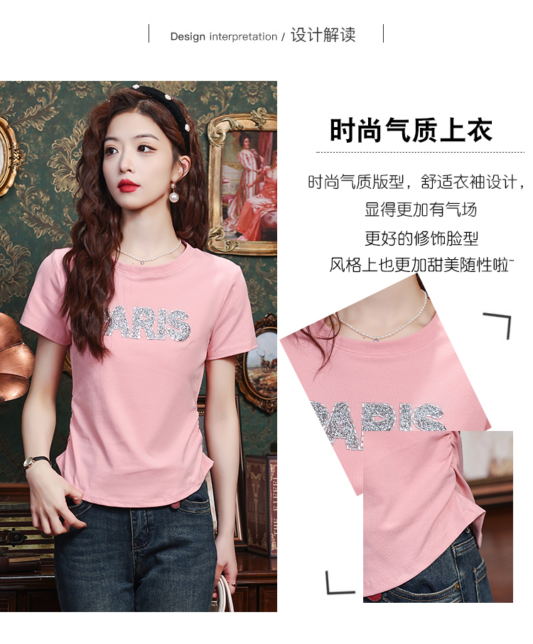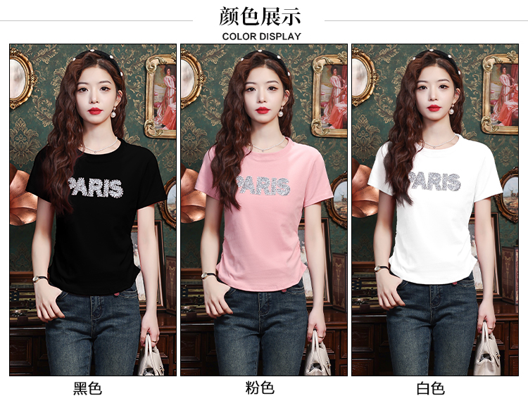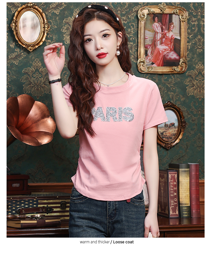 PF539#欧货T恤女短袖2024夏季百搭镶钻字母紧身又甜小众短袖上衣ing