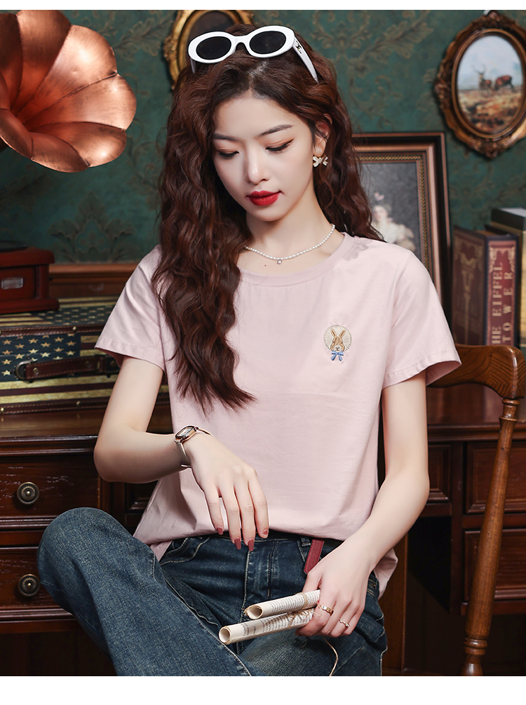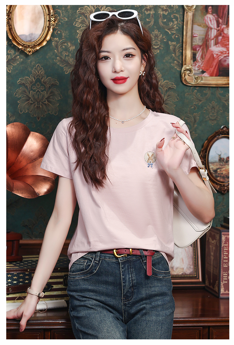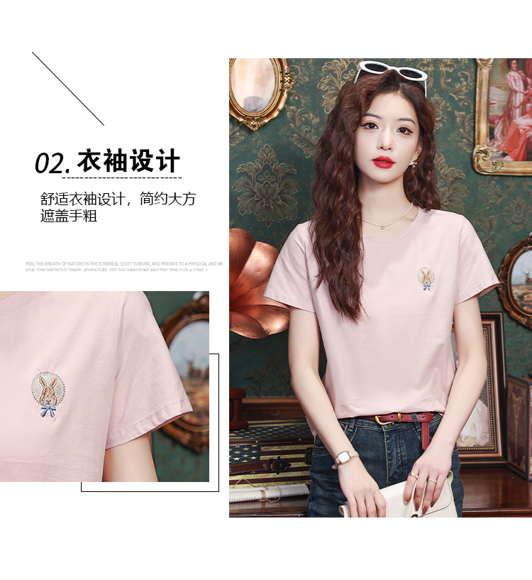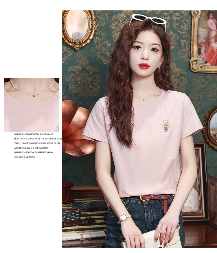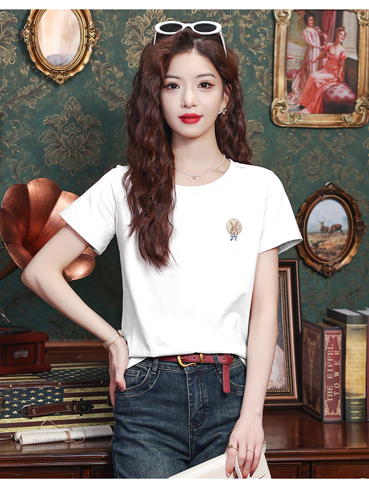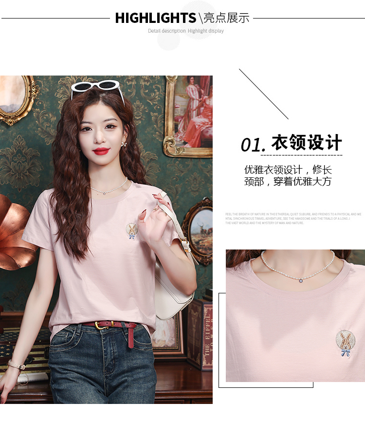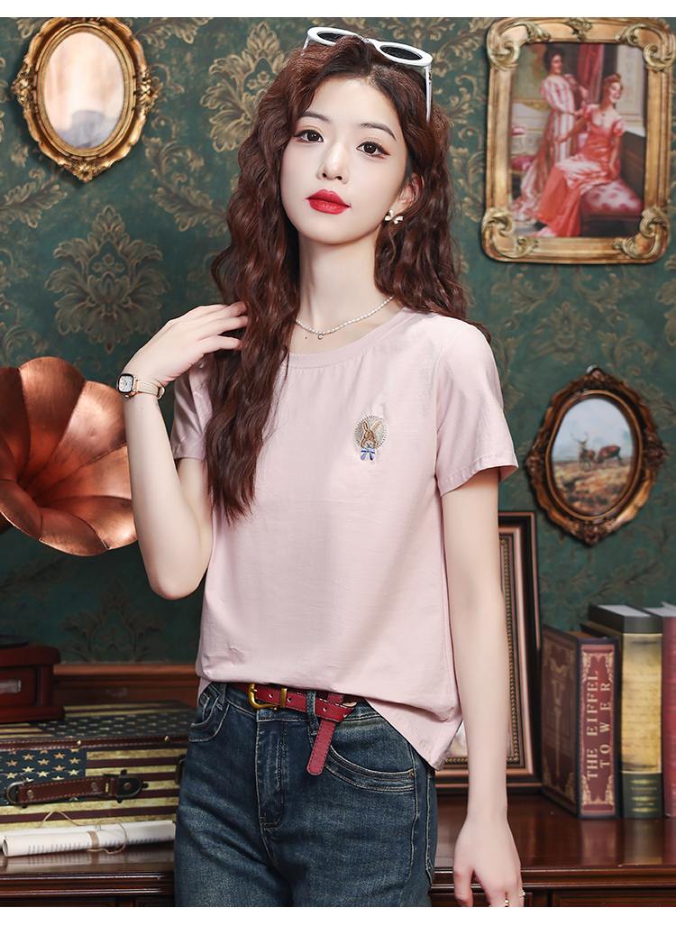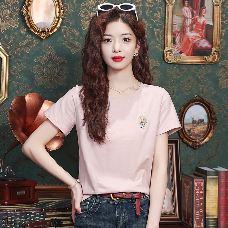 PF541#夏季薄款2024年新款绣花宽松内搭上衣女士纯棉别致半袖