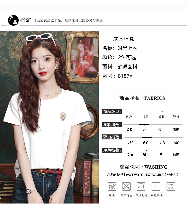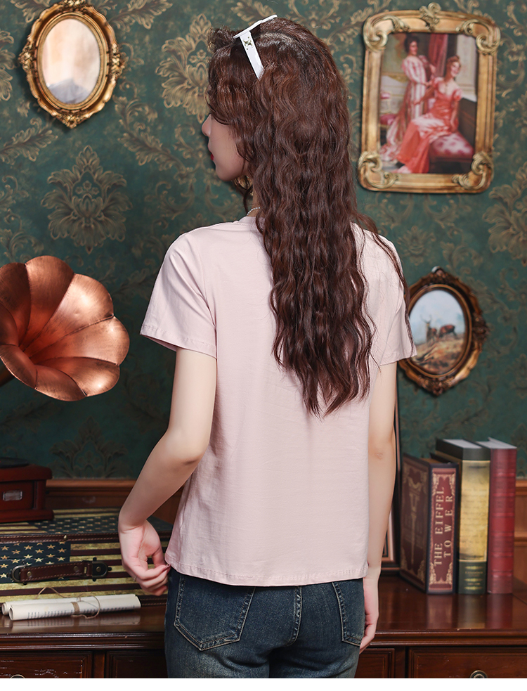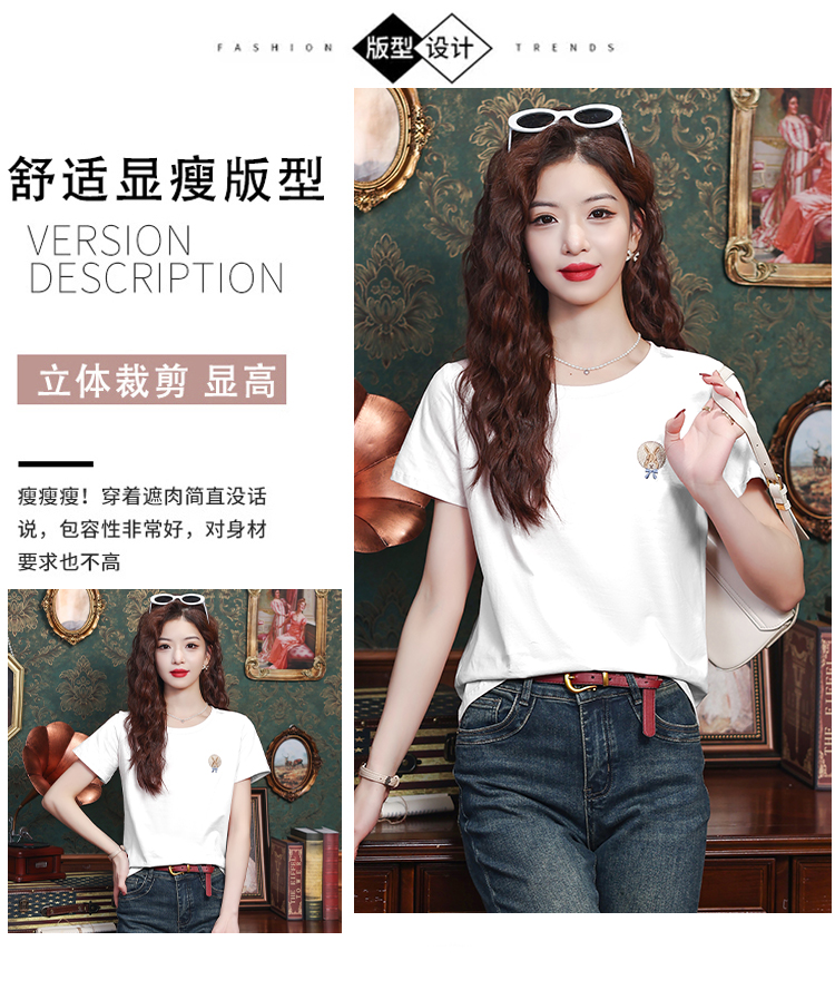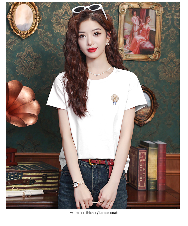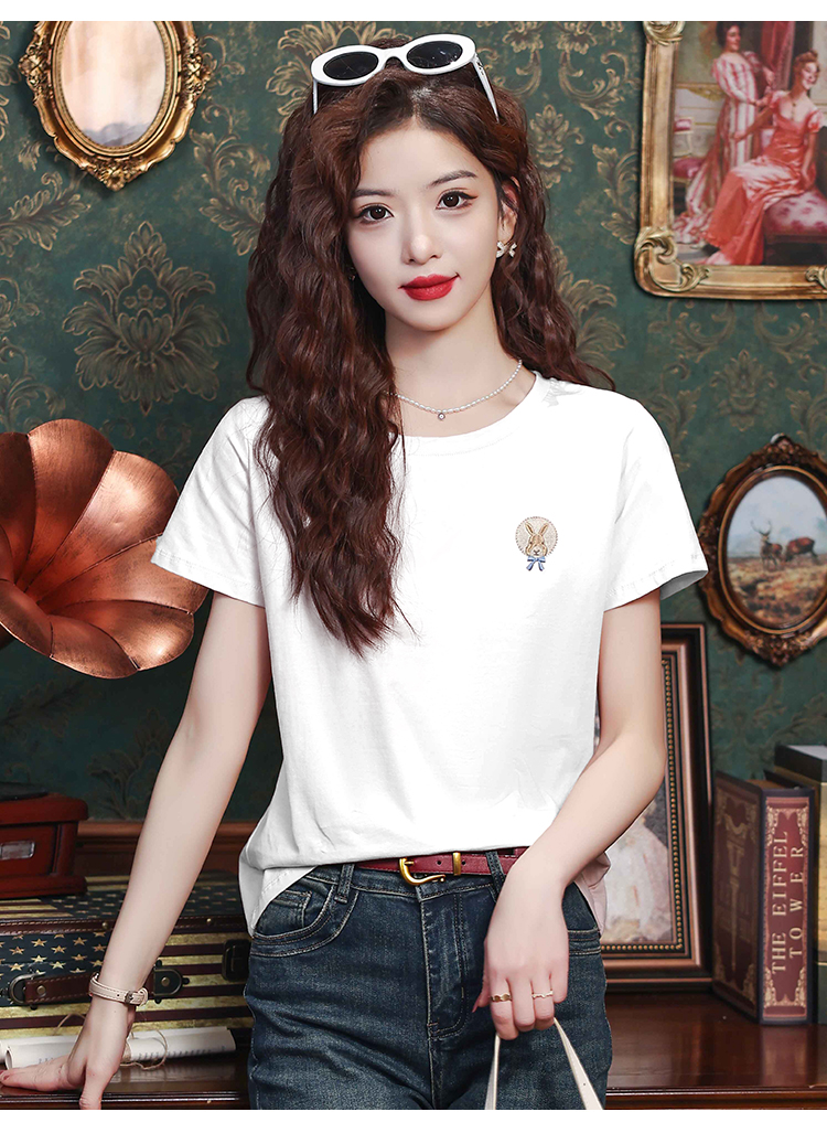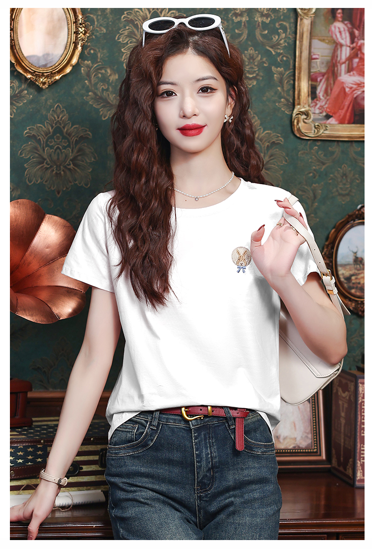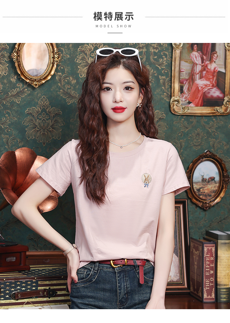 PF541#夏季薄款2024年新款绣花宽松内搭上衣女士纯棉别致半袖