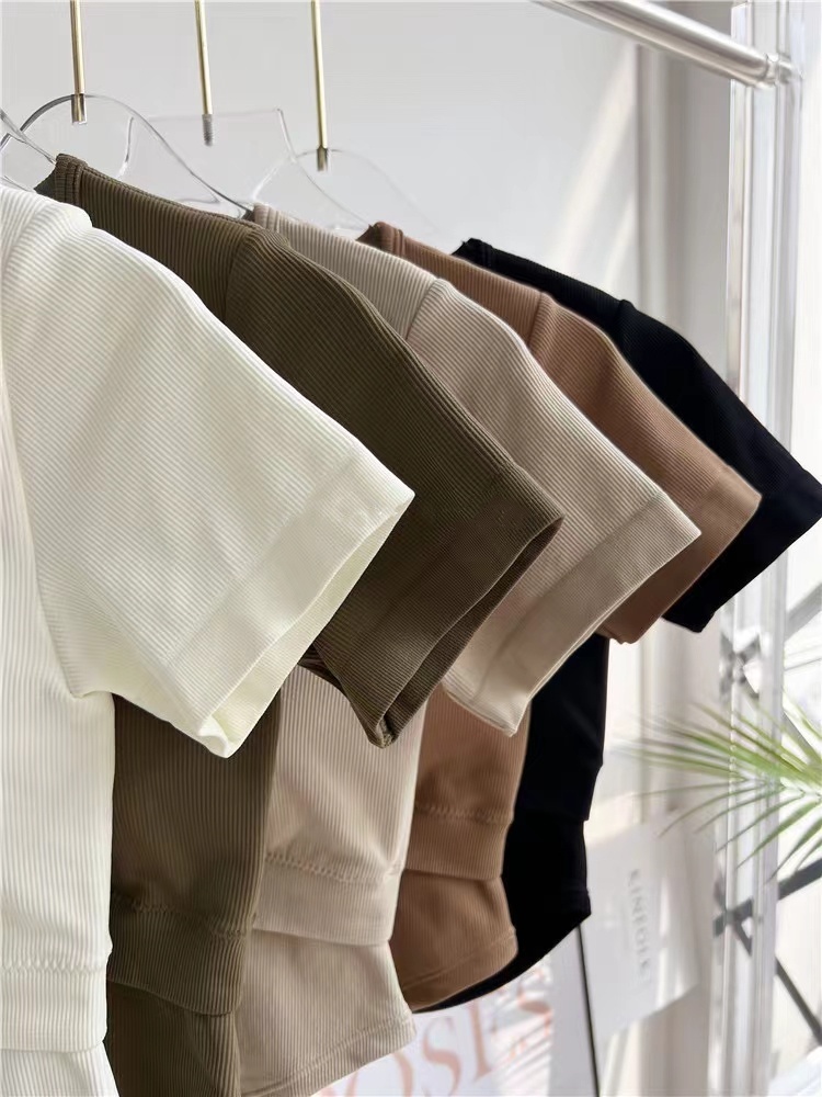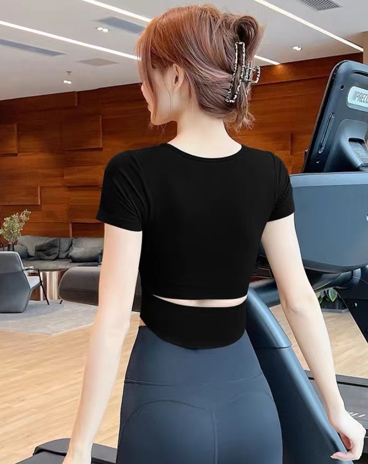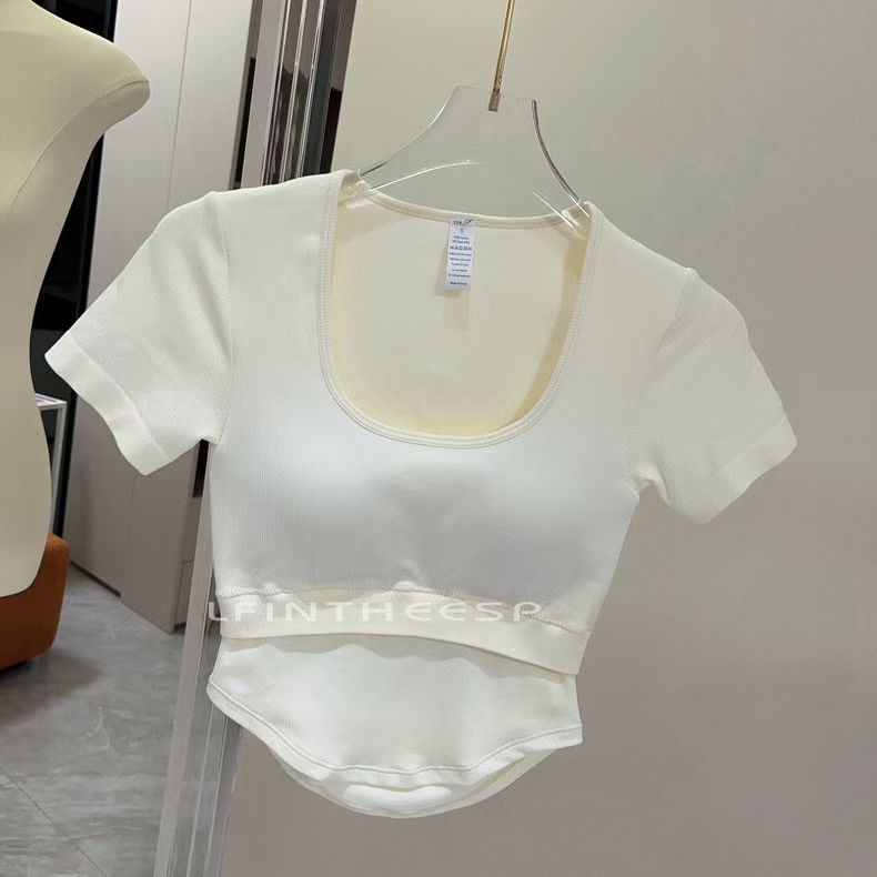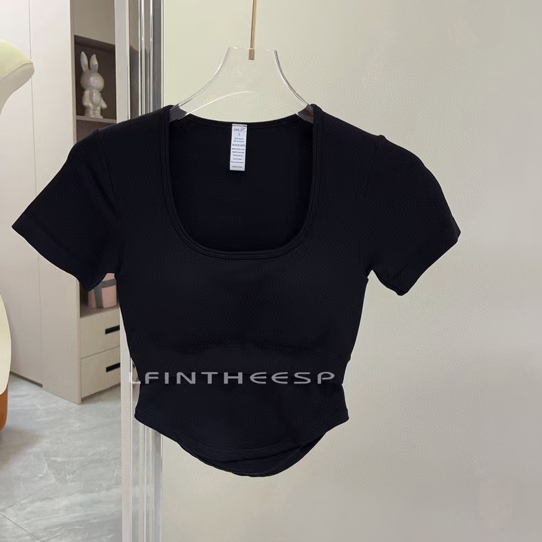 PF595# 夏季辣妹风修身显胸露脐垫肩短袖T恤ins短款露背镂空