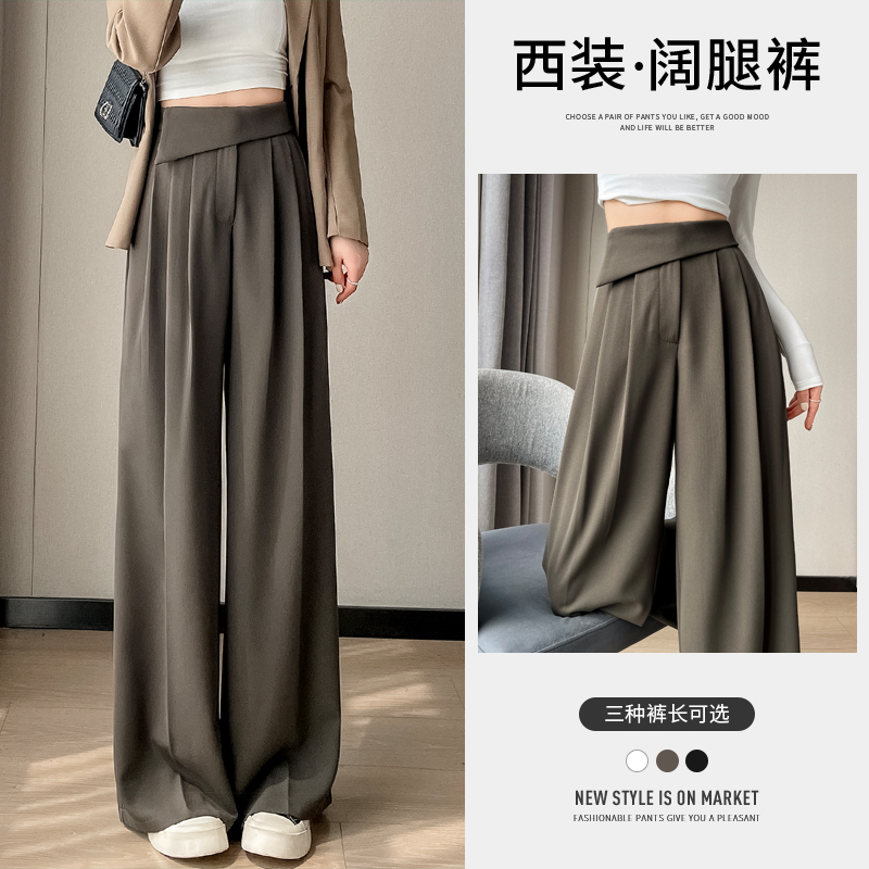 PF622#新款西装裤高腰阔腿裤直筒休闲裤加长拖地裤女