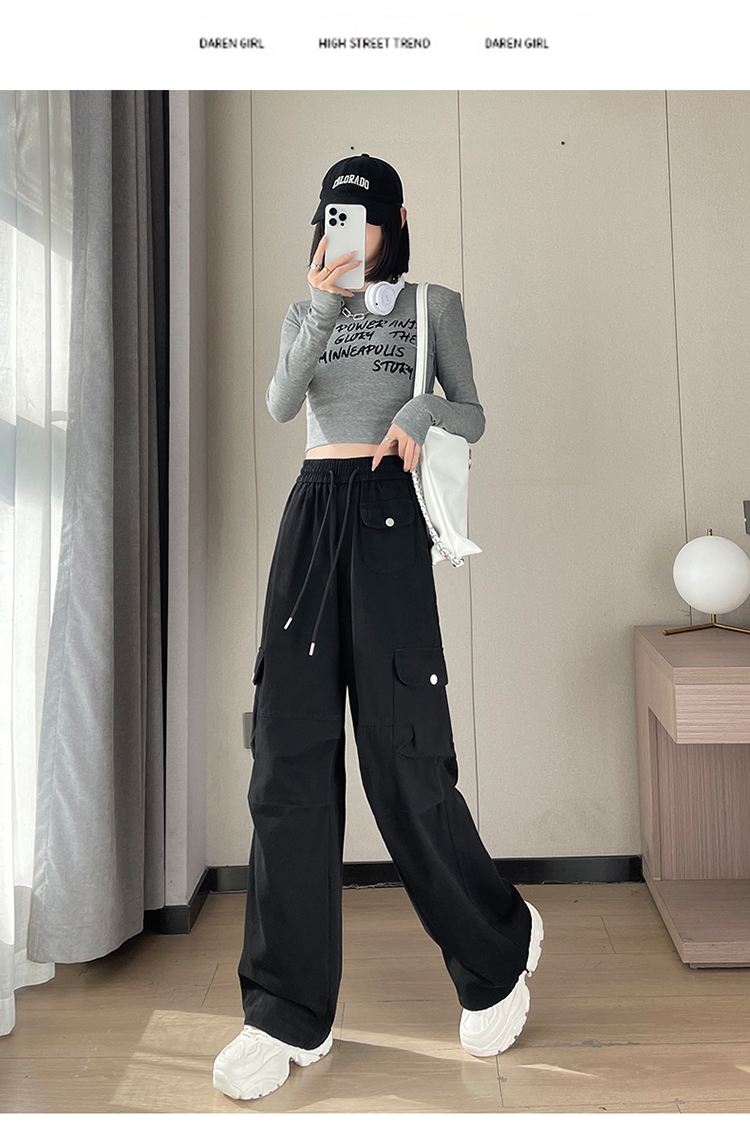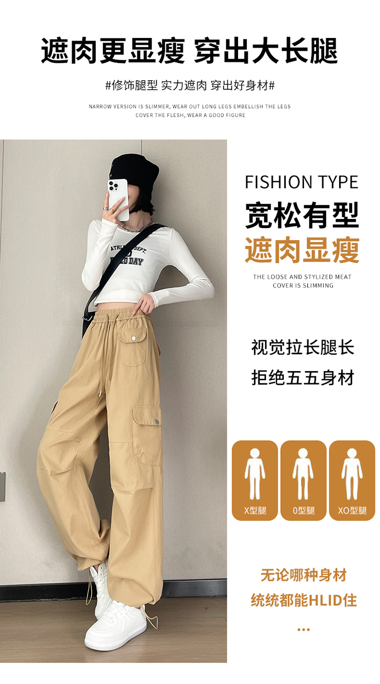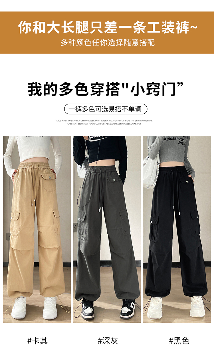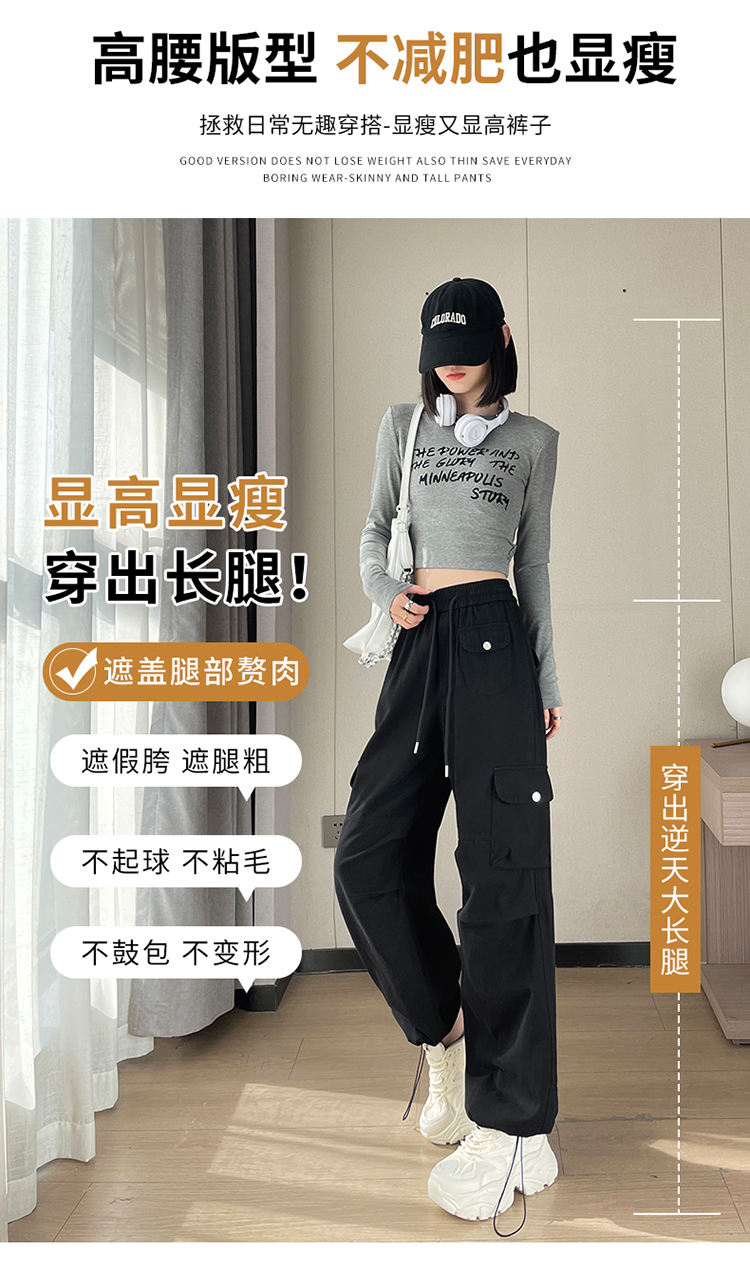 PF642#美式工装裤女2024春夏潮酷口袋设计束脚抽绳休闲裤阔腿女