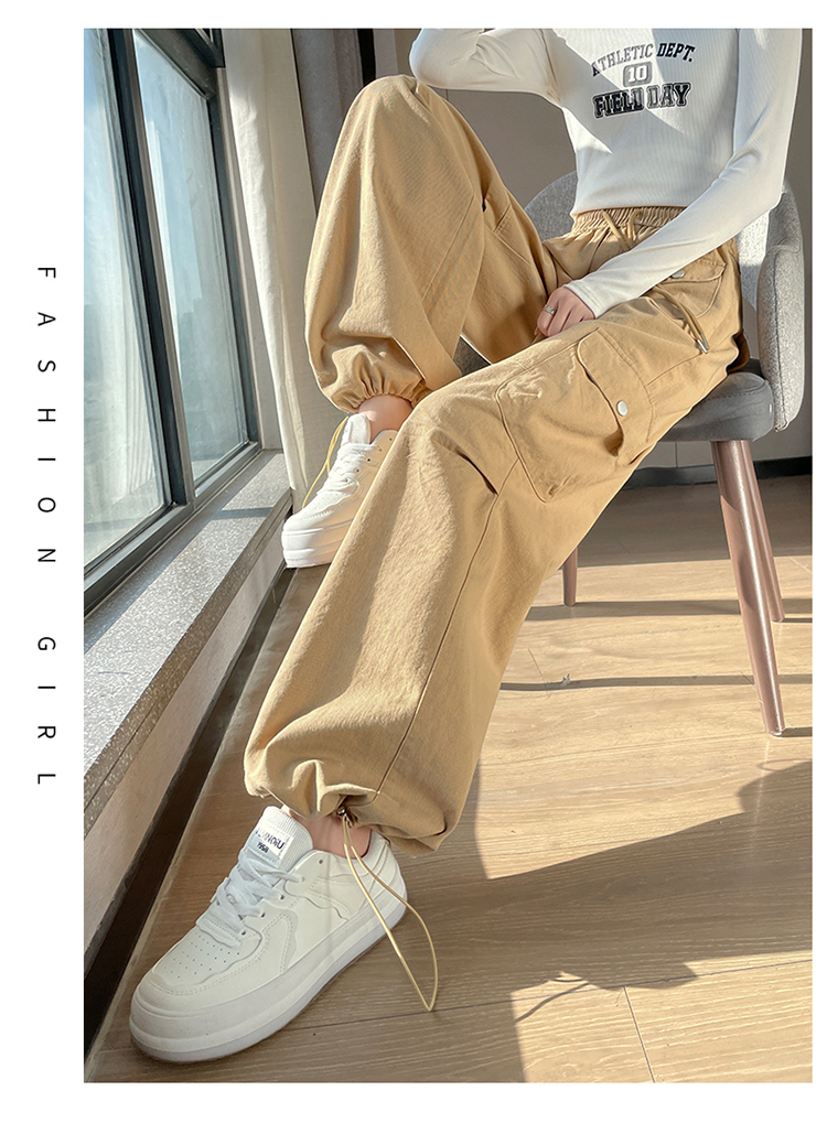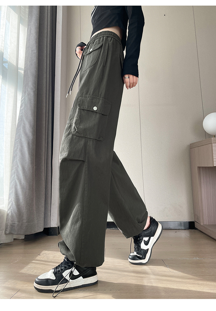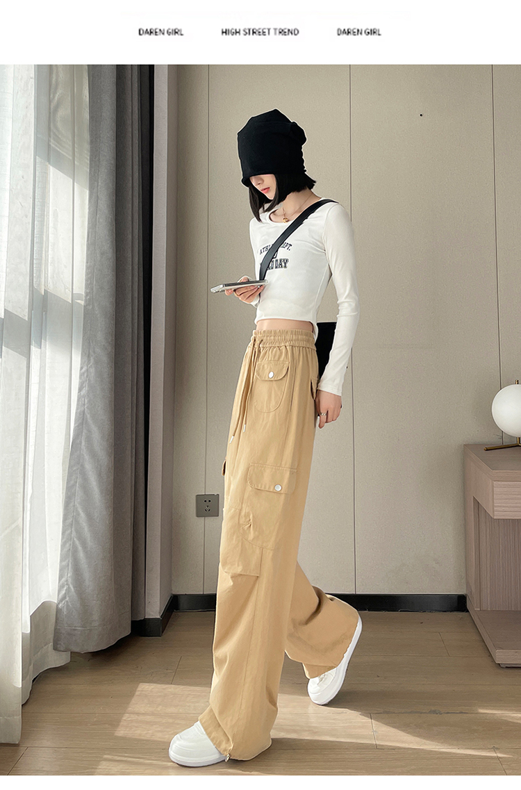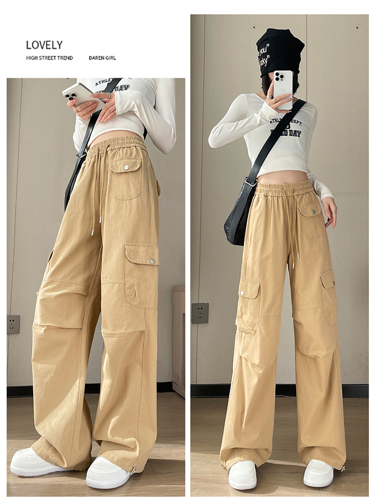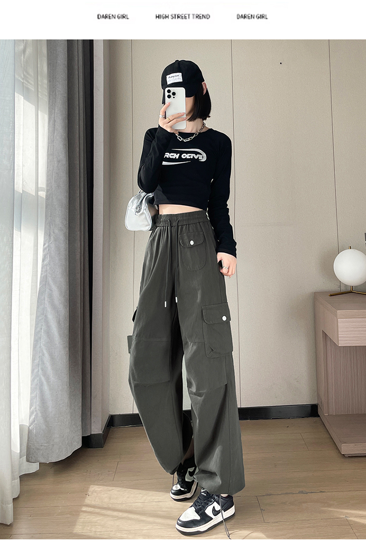 PF642#美式工装裤女2024春夏潮酷口袋设计束脚抽绳休闲裤阔腿女