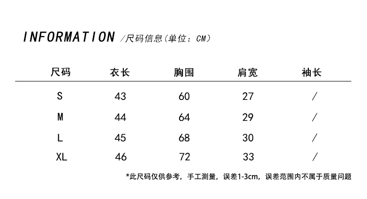 因裁剪工艺和丈量手法不同,可能存在1~3CM 左右误差,尺码仅供参考,以实物为准