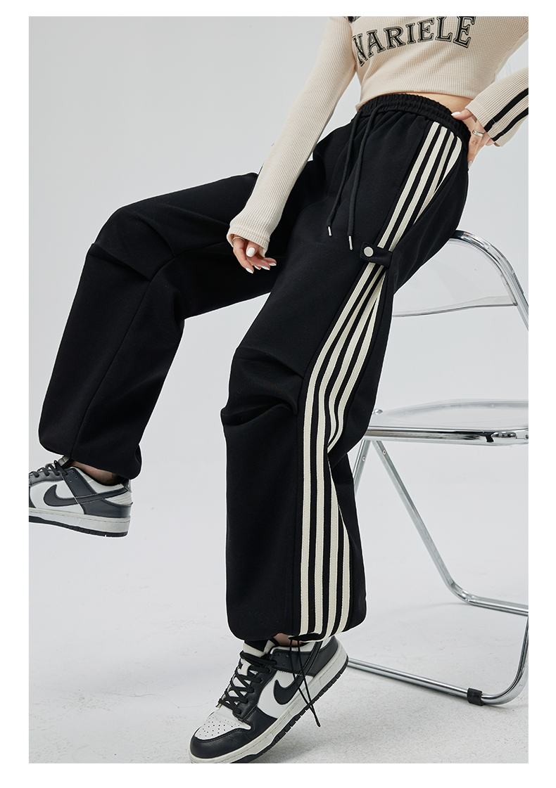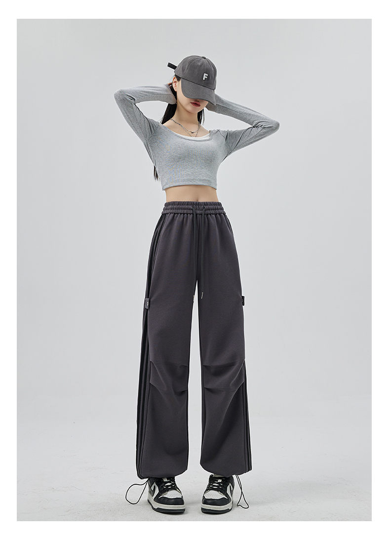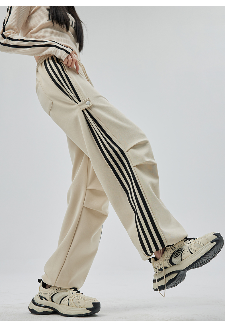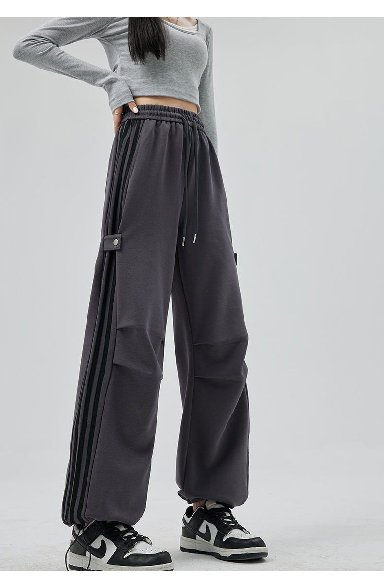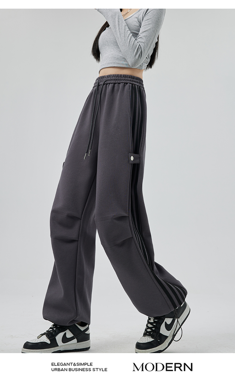 PF707#华棉复合 美式运动裤女新款直筒休闲束脚阔腿卫裤子
