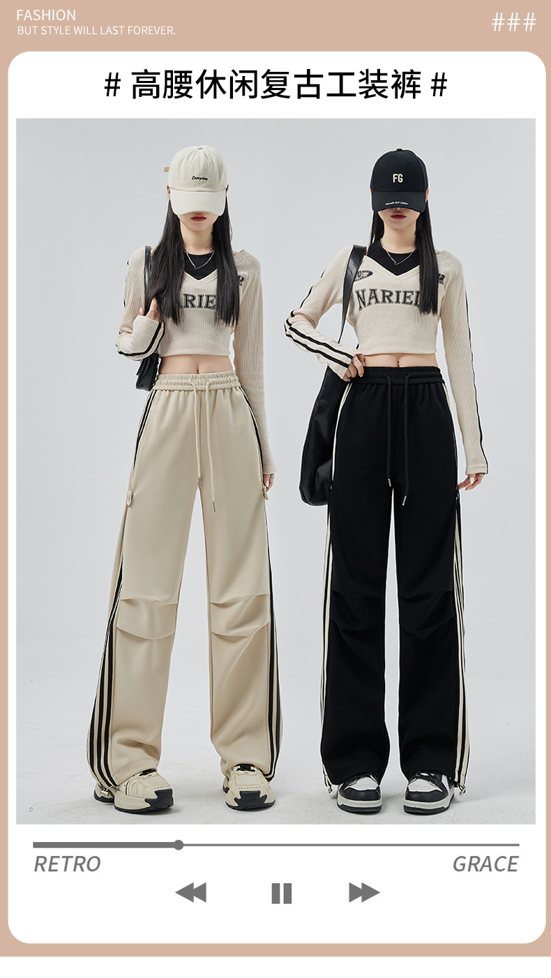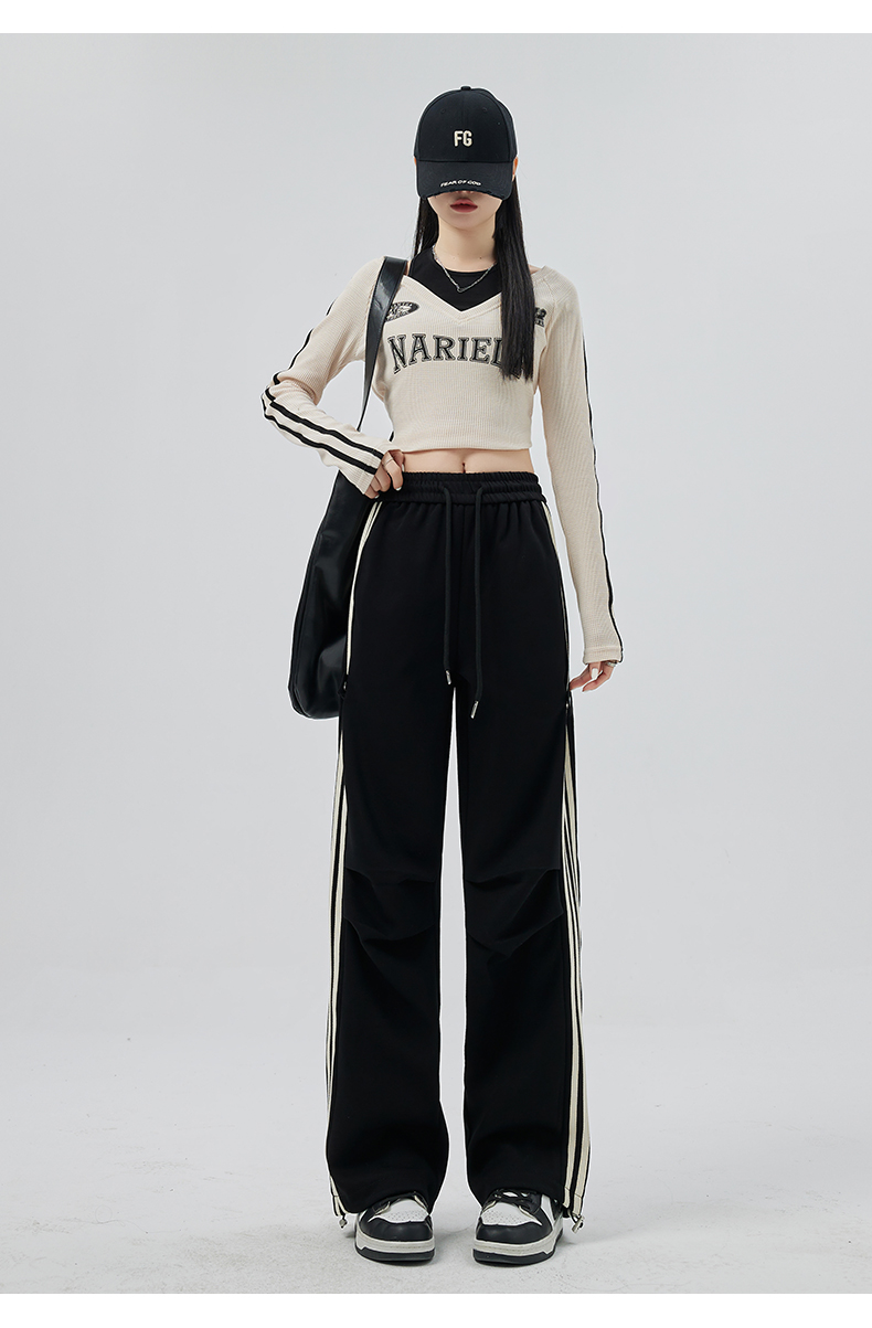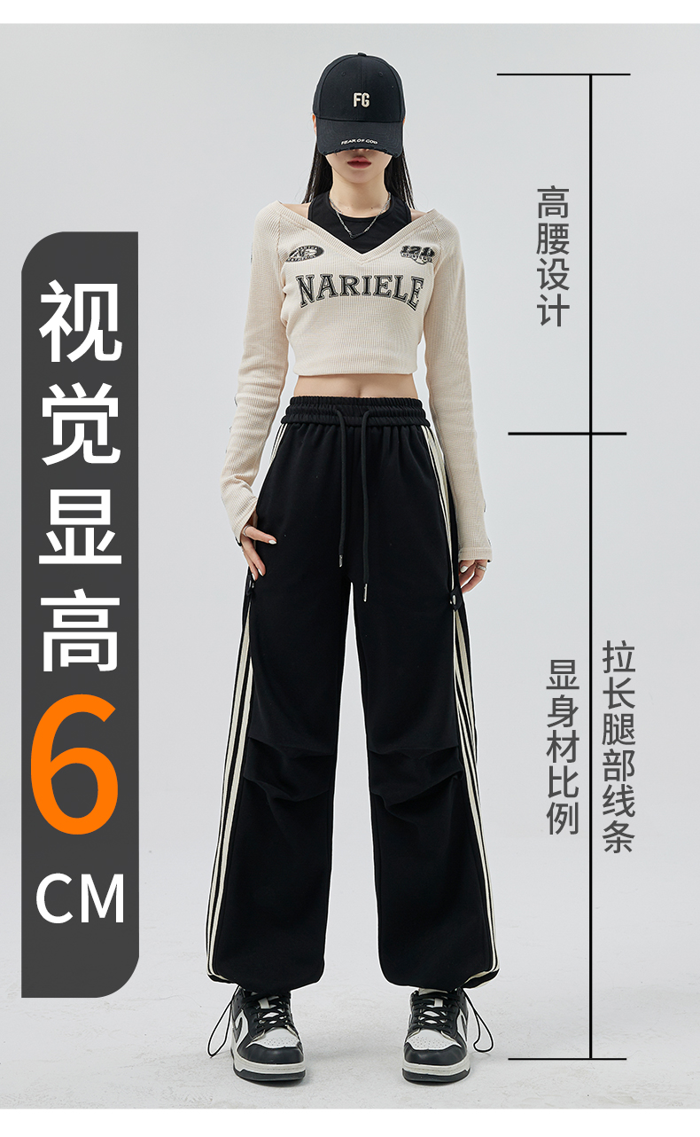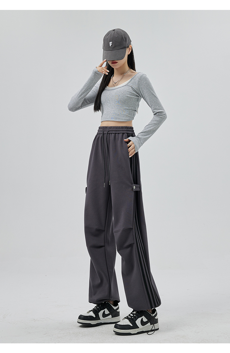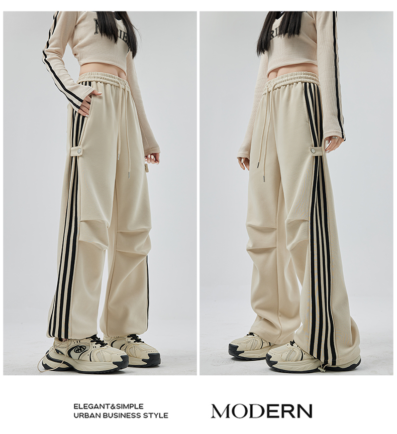 PF707#华棉复合 美式运动裤女新款直筒休闲束脚阔腿卫裤子
