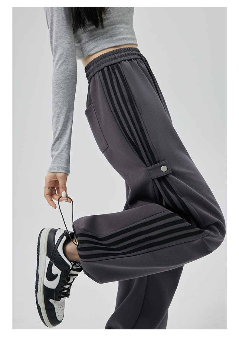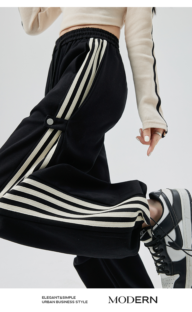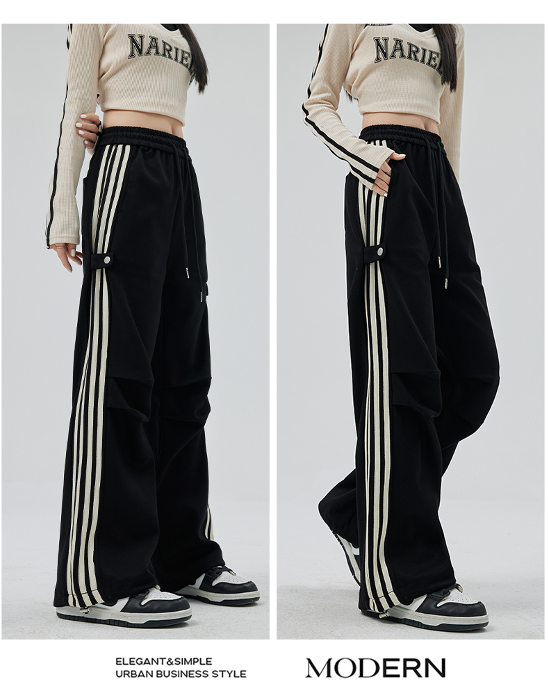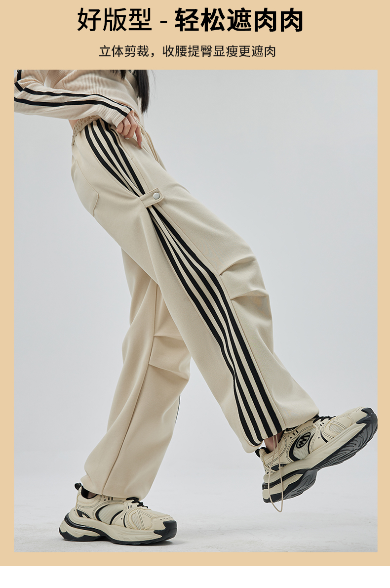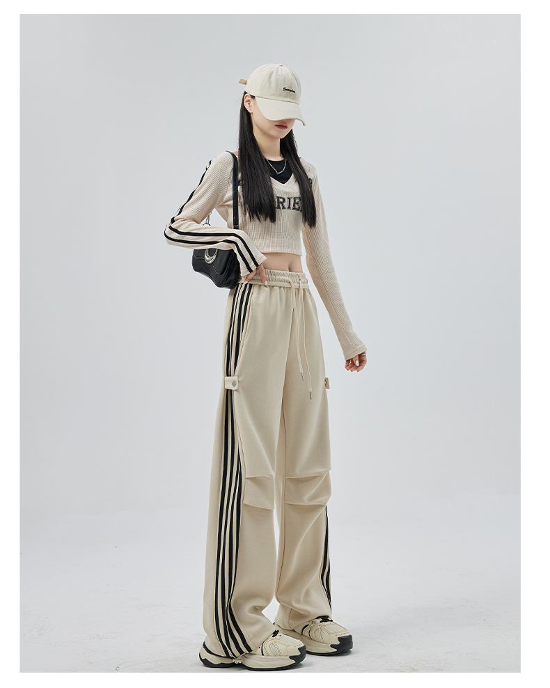 PF707#华棉复合 美式运动裤女新款直筒休闲束脚阔腿卫裤子