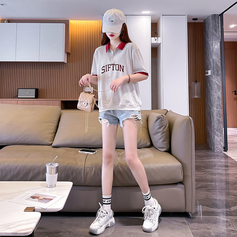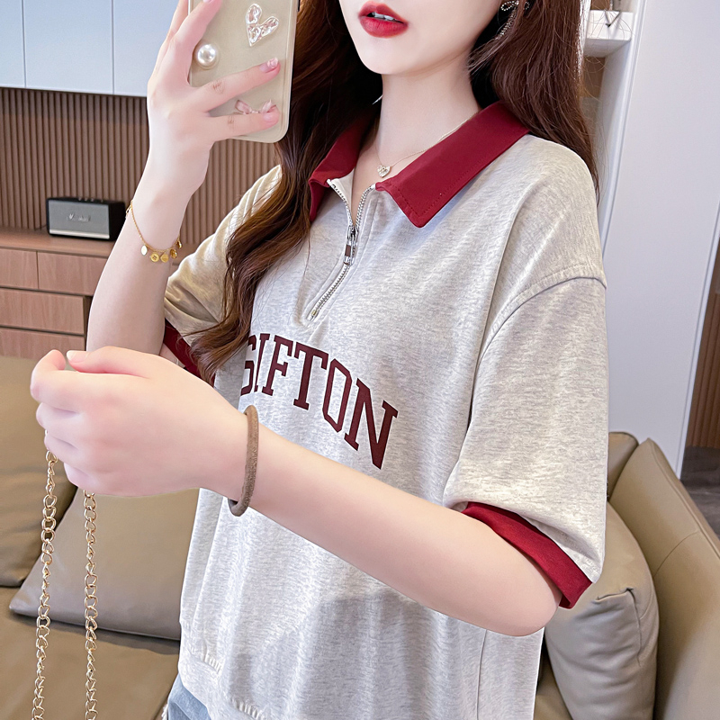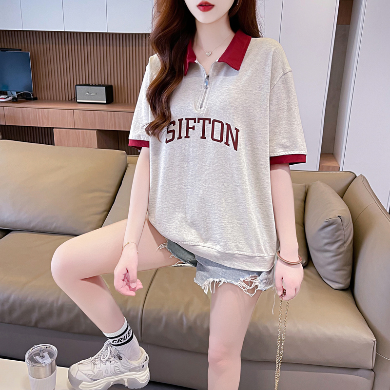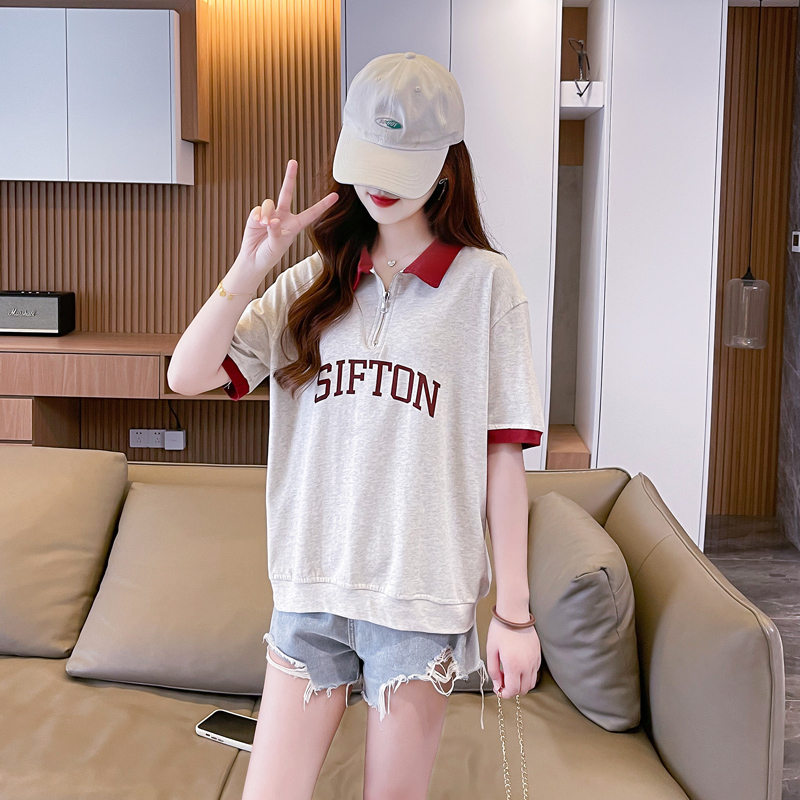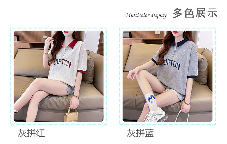 PF746#夏季韩版200克纯棉爆款拼色polo衫大码短袖T恤女