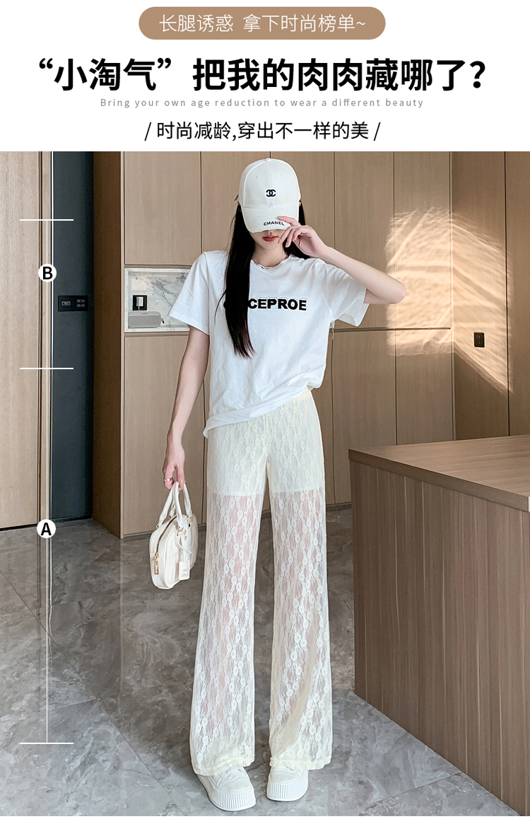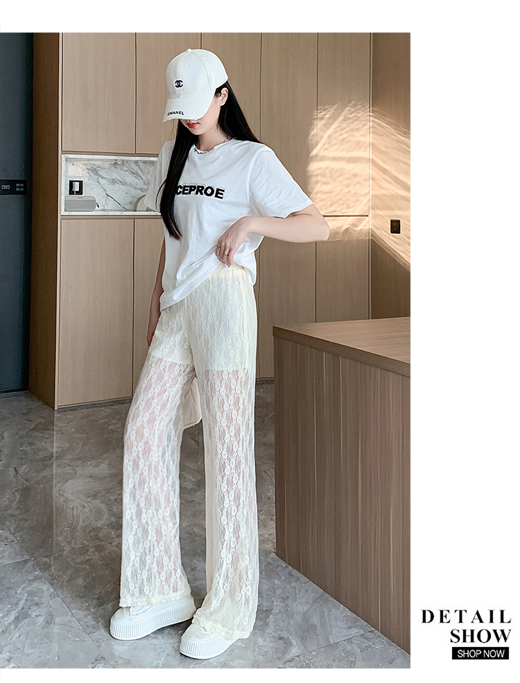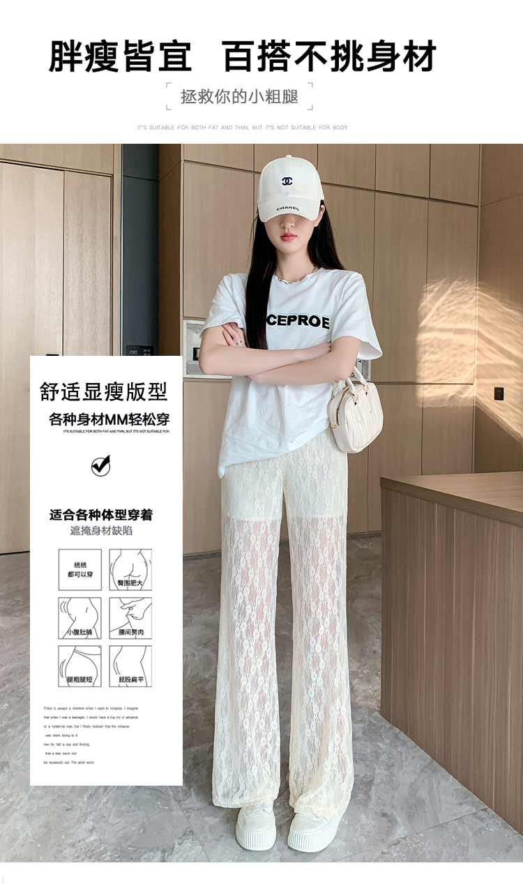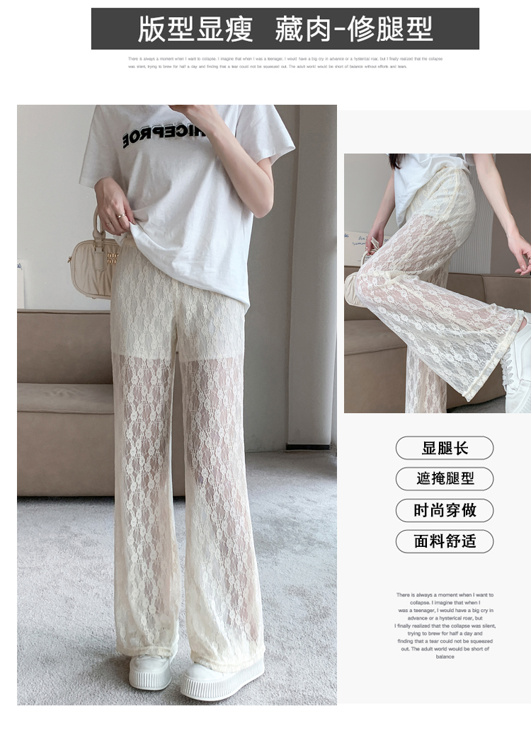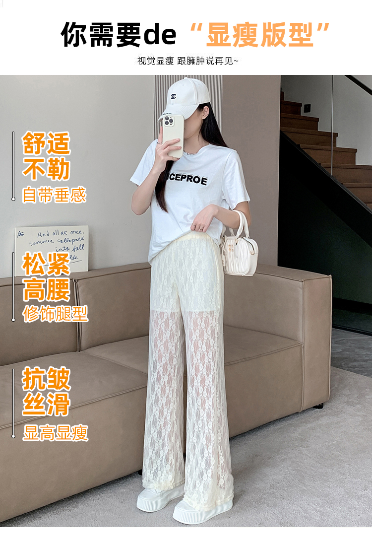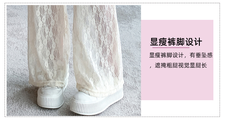 PF765#原创蕾丝长裤拖地裤宽松型百搭夏季日系休闲裤显瘦阔腿裤高腰