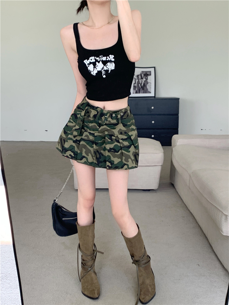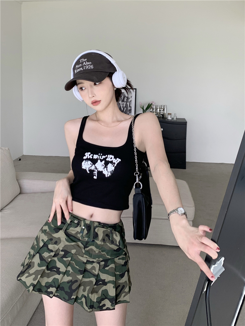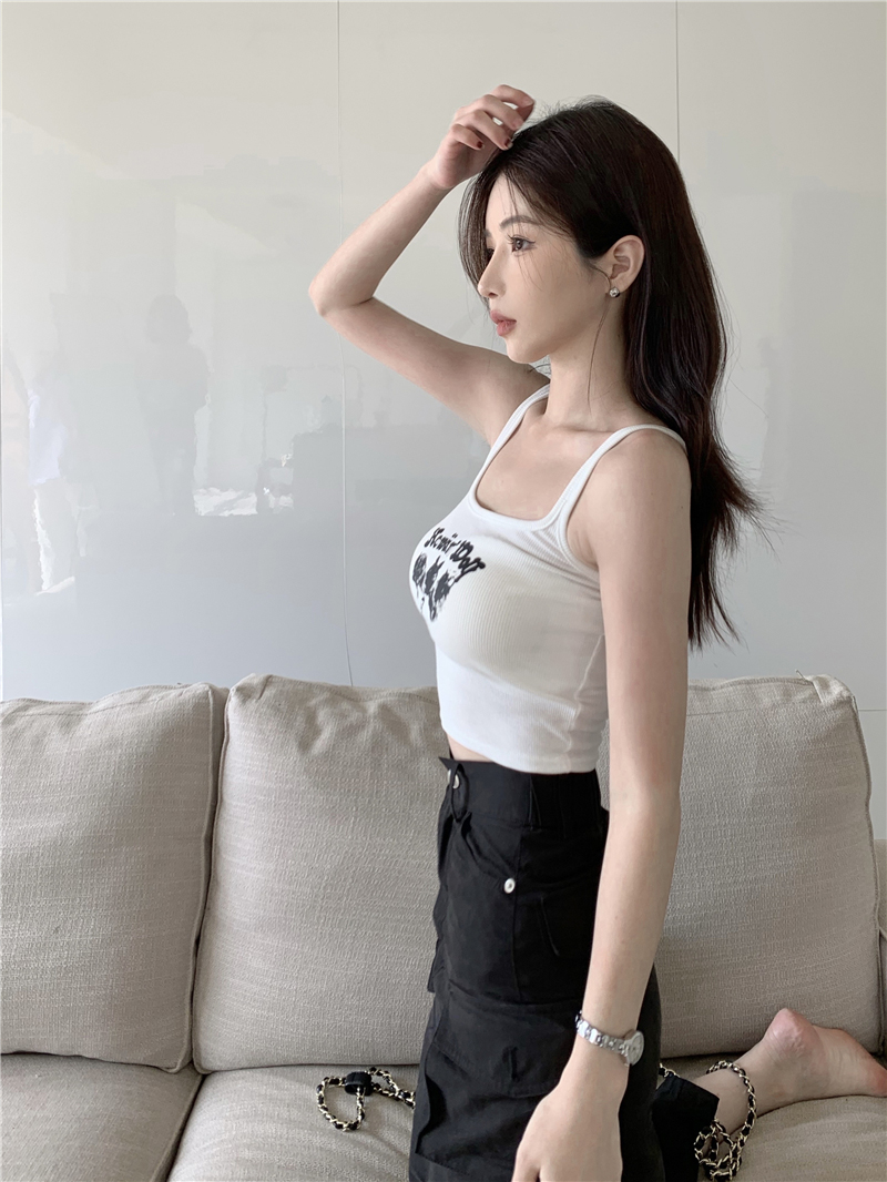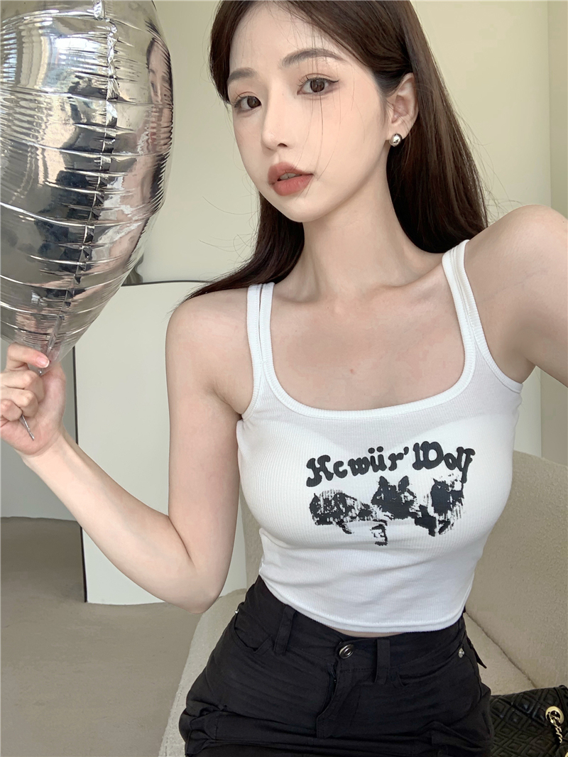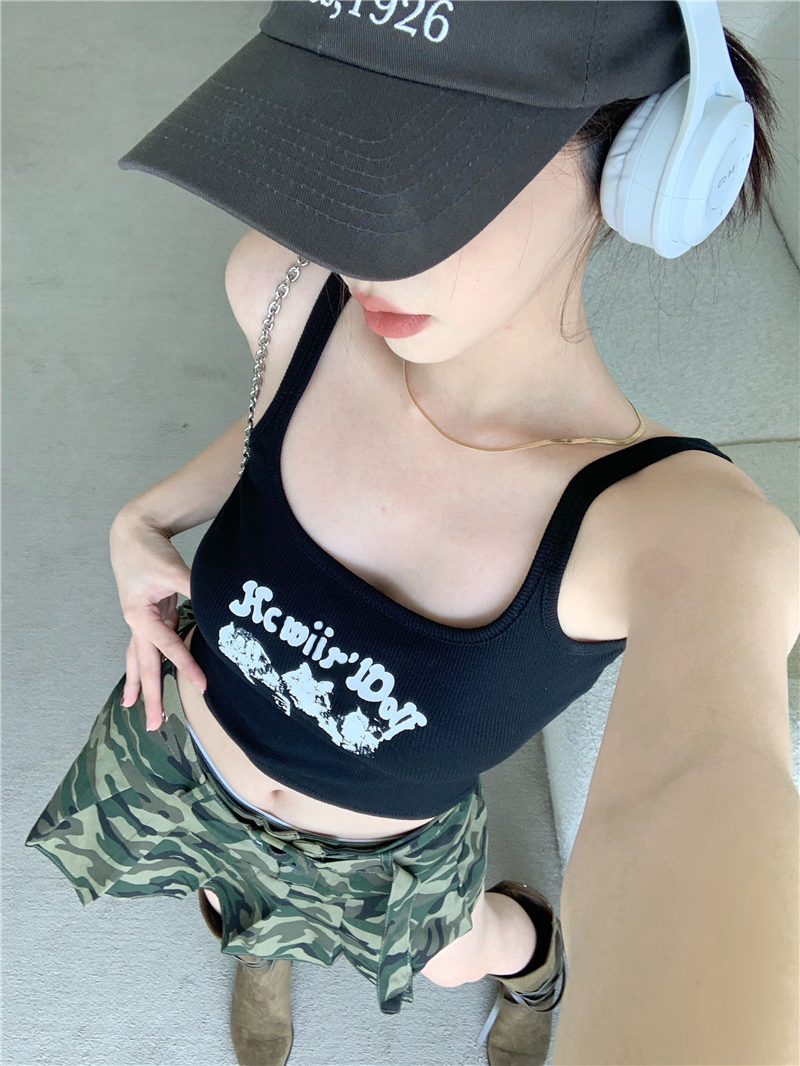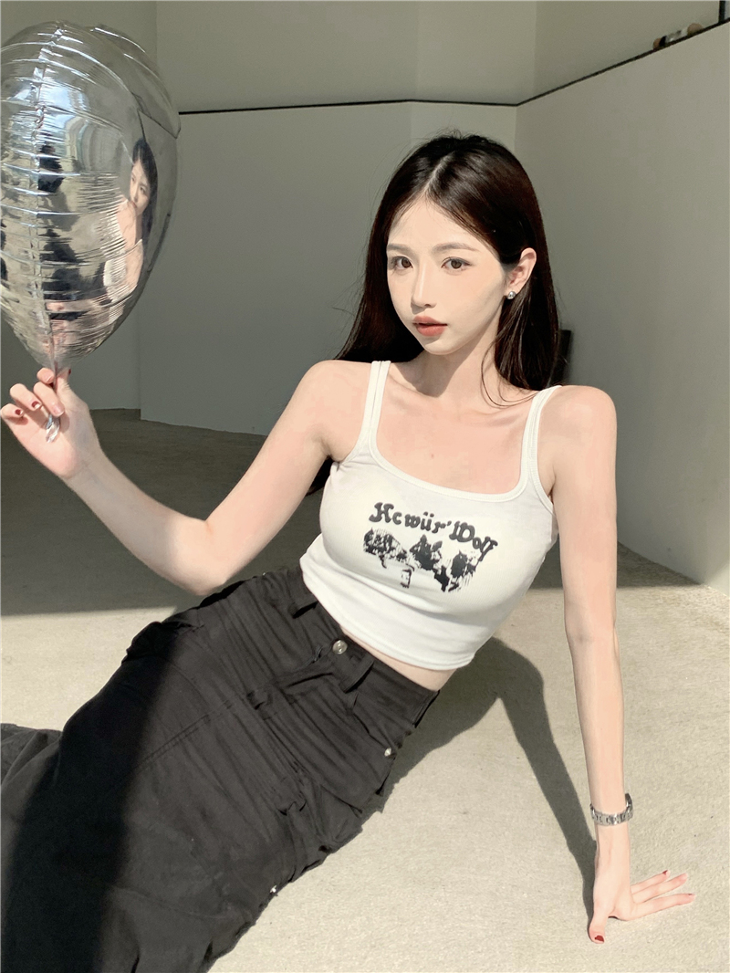 PF771#红色无袖短款吊带背心女夏季ins修身印花甜酷辣妹内搭上衣外穿潮