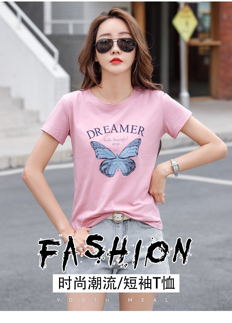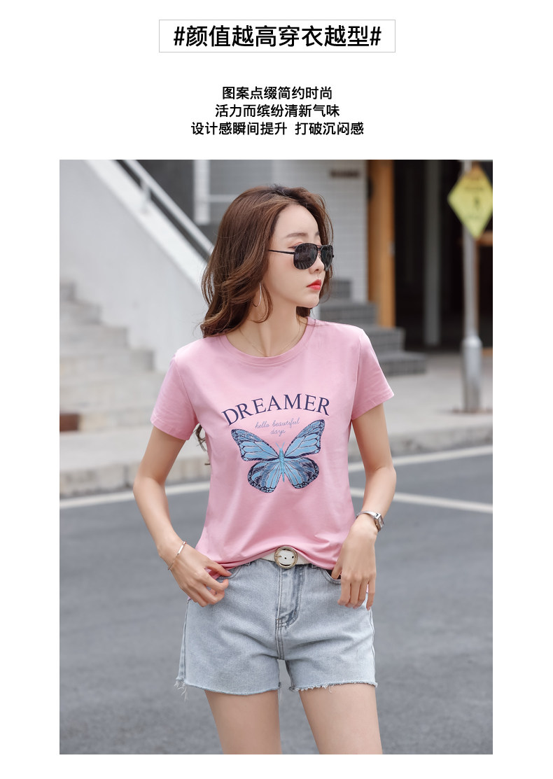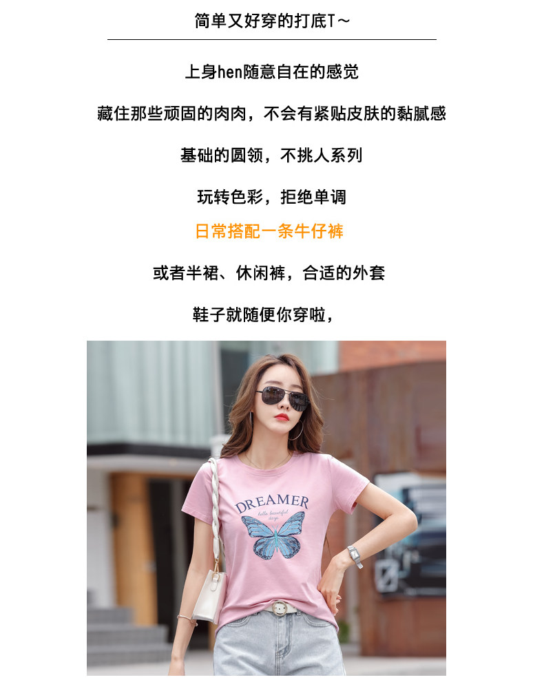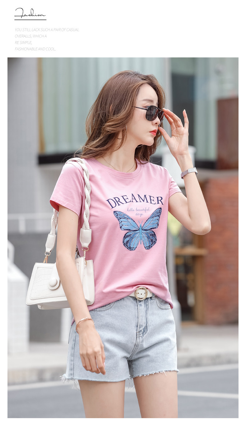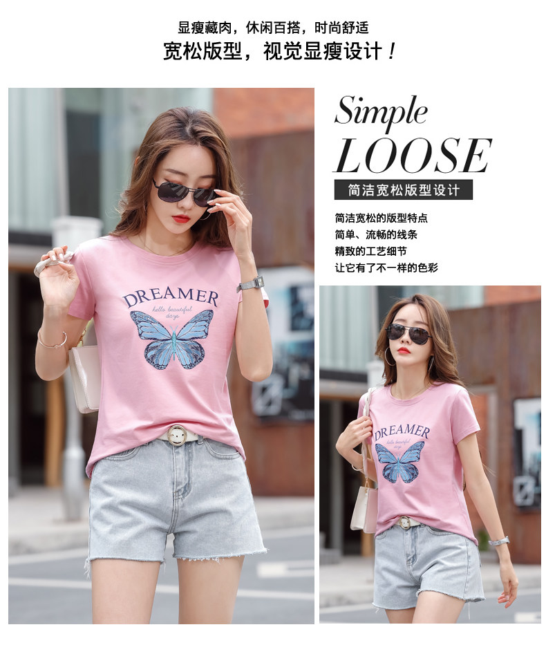 PF852#纯棉夏 新款短袖t恤女装时髦宽松印花显瘦半袖上衣百搭打底