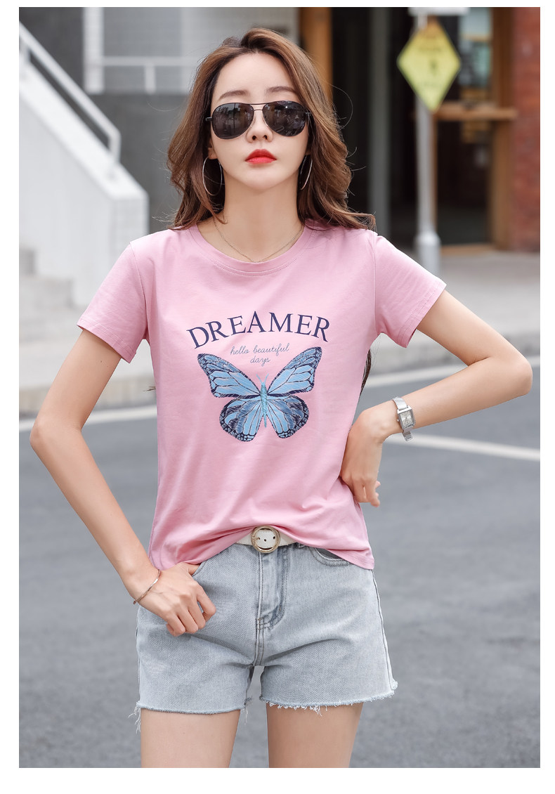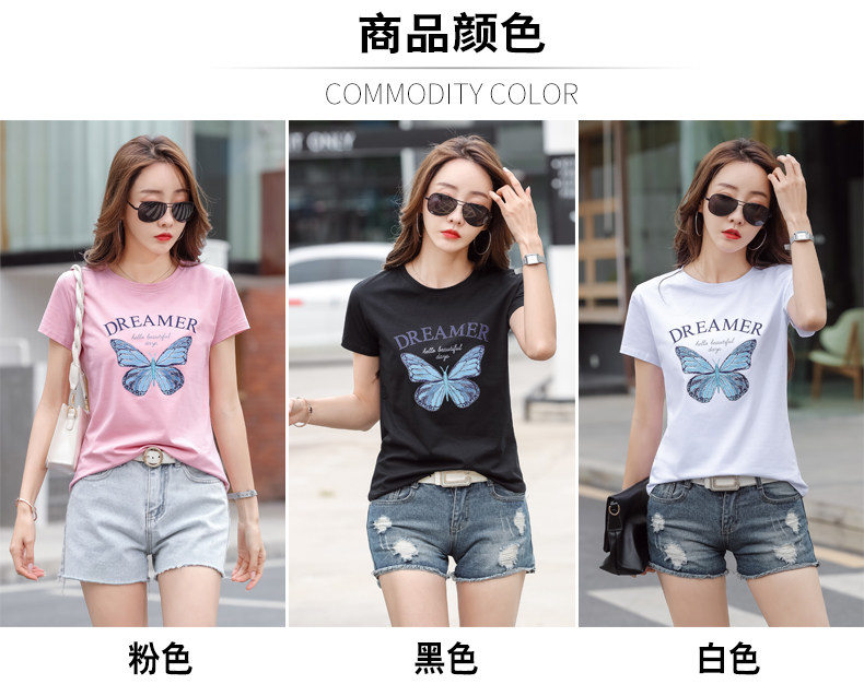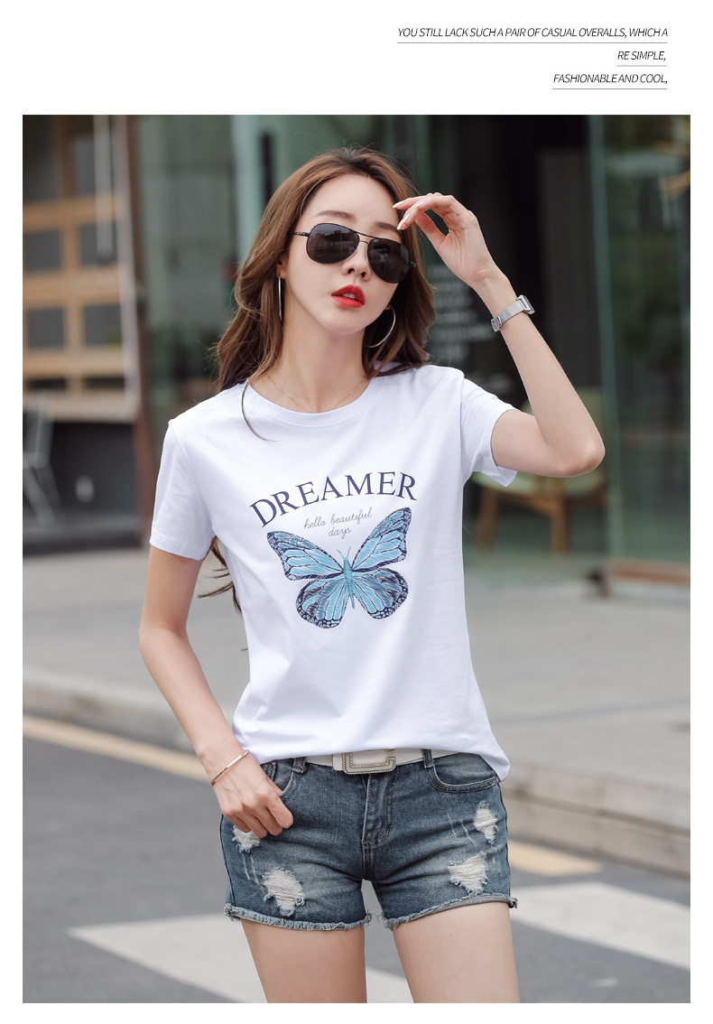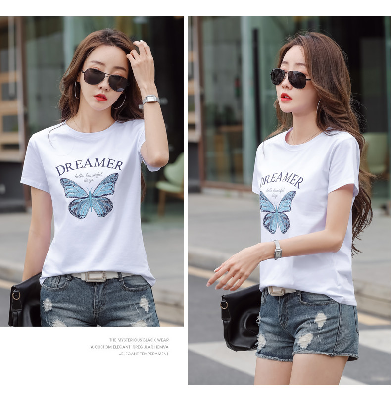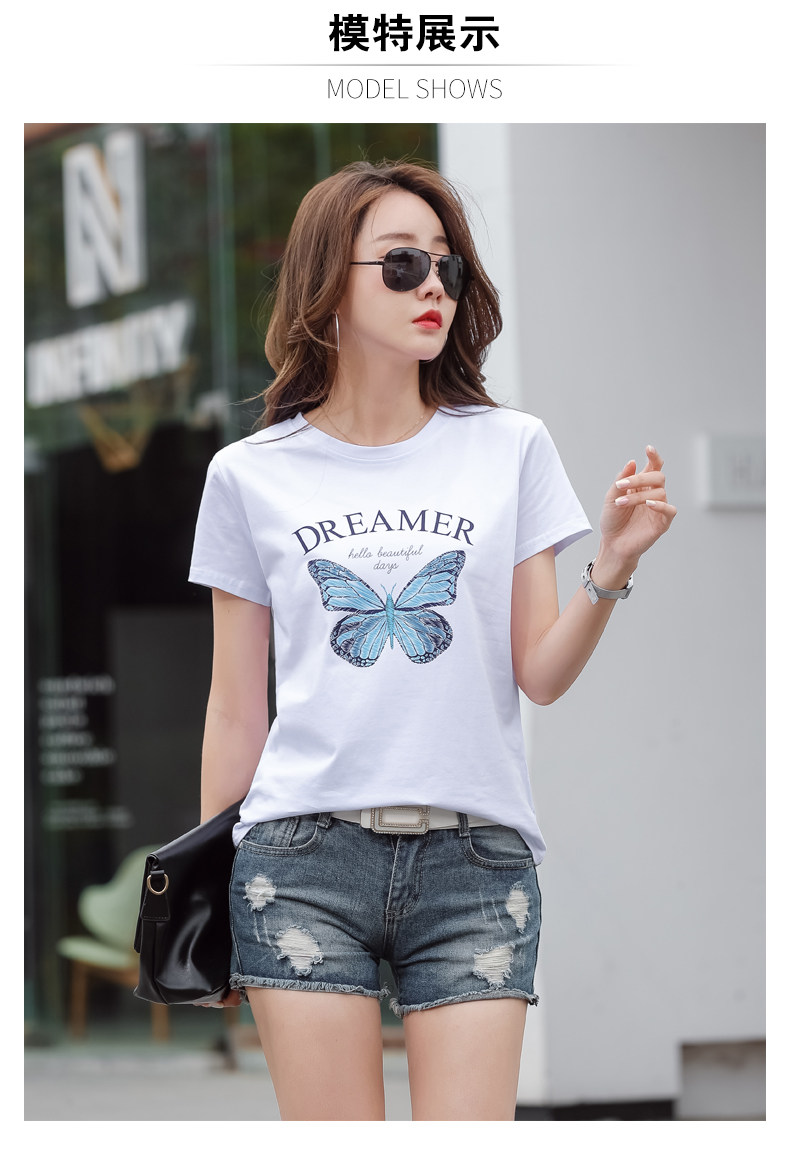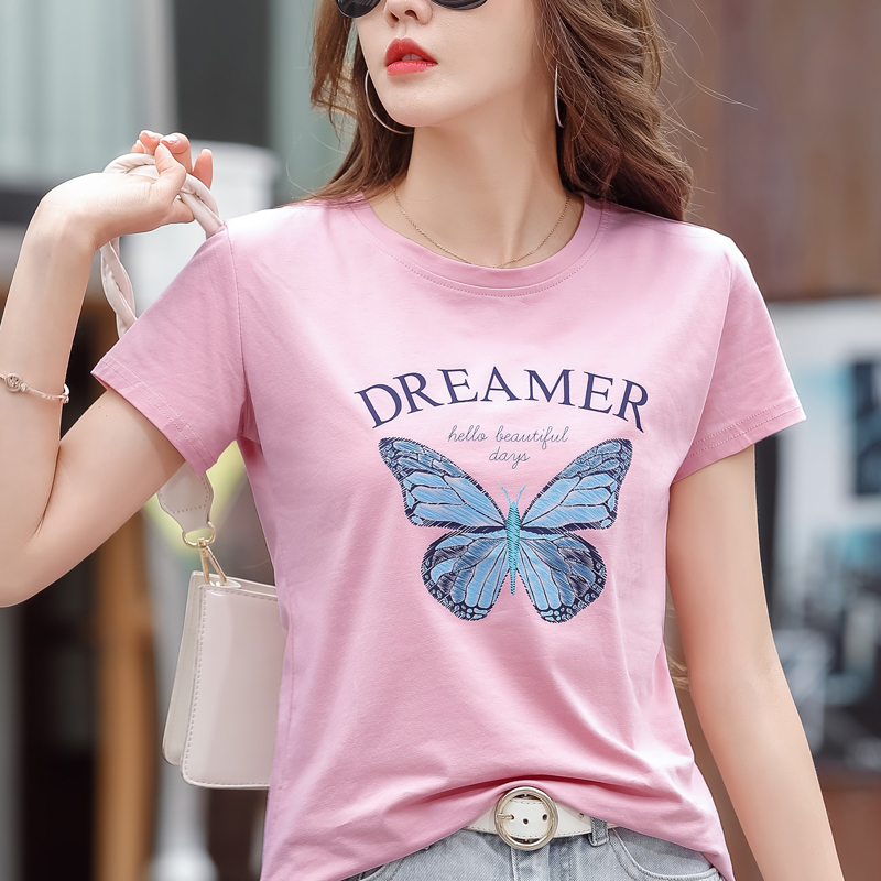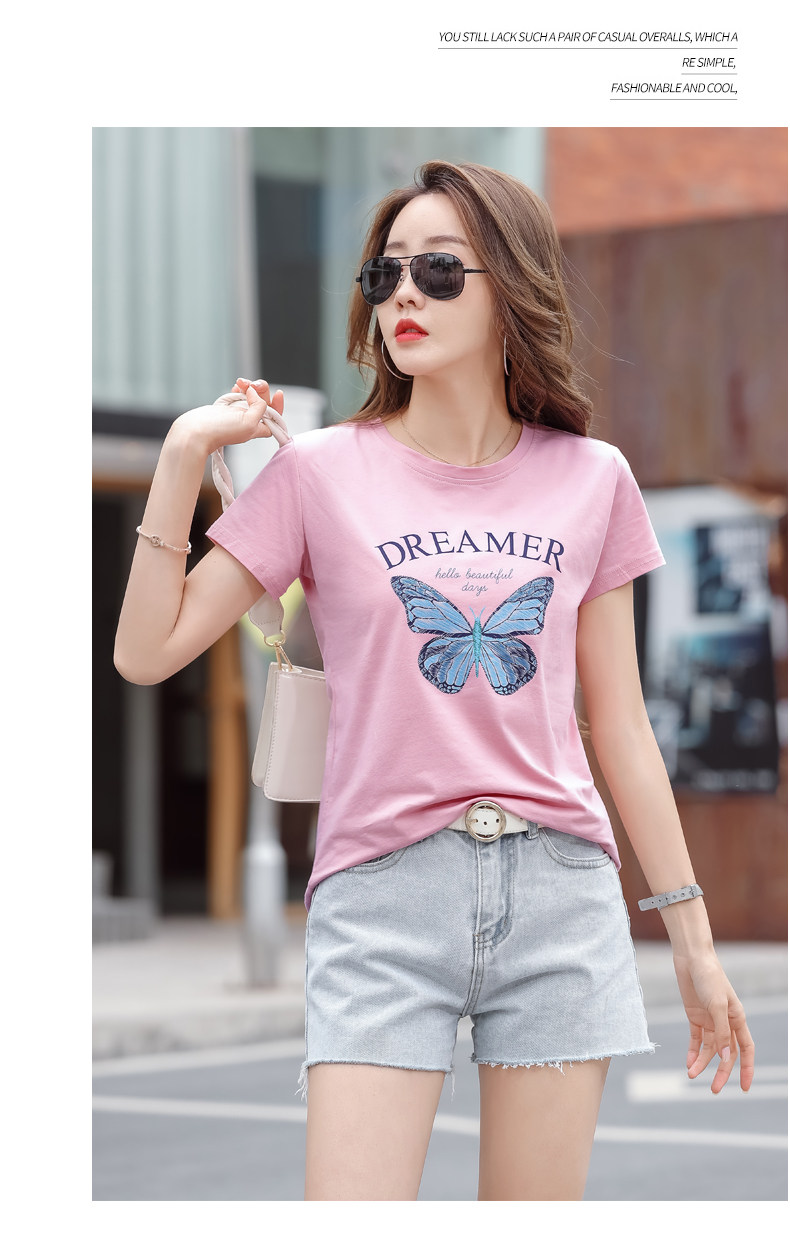 PF852#纯棉夏 新款短袖t恤女装时髦宽松印花显瘦半袖上衣百搭打底