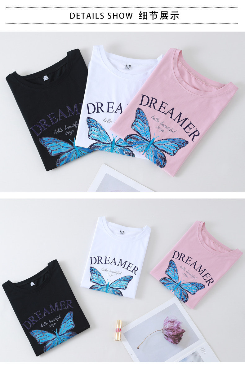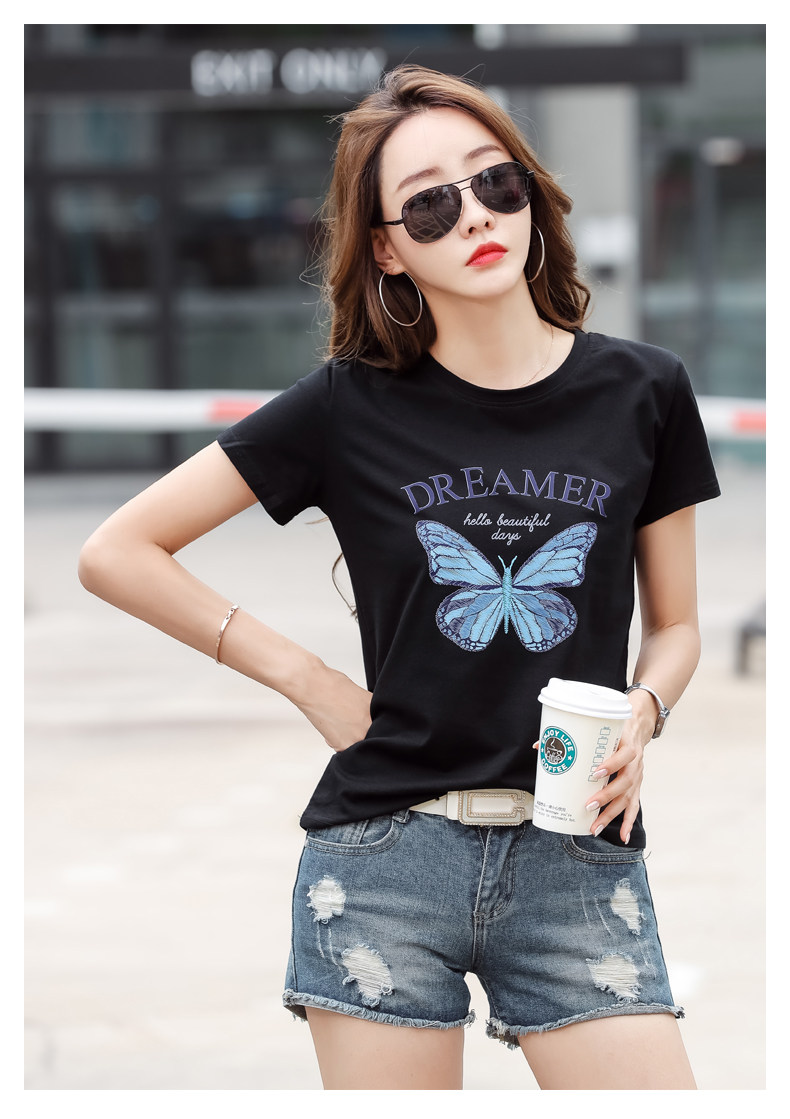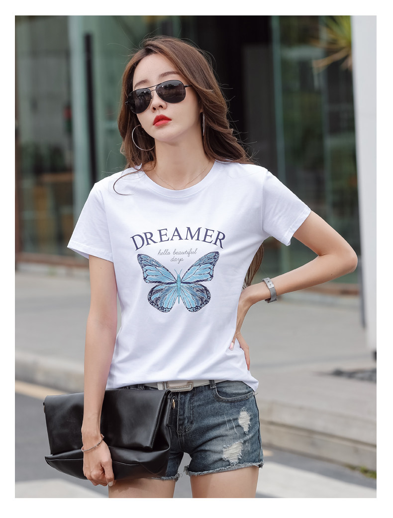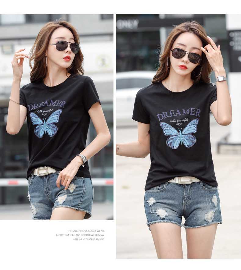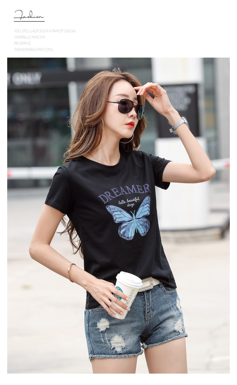 PF852#纯棉夏 新款短袖t恤女装时髦宽松印花显瘦半袖上衣百搭打底