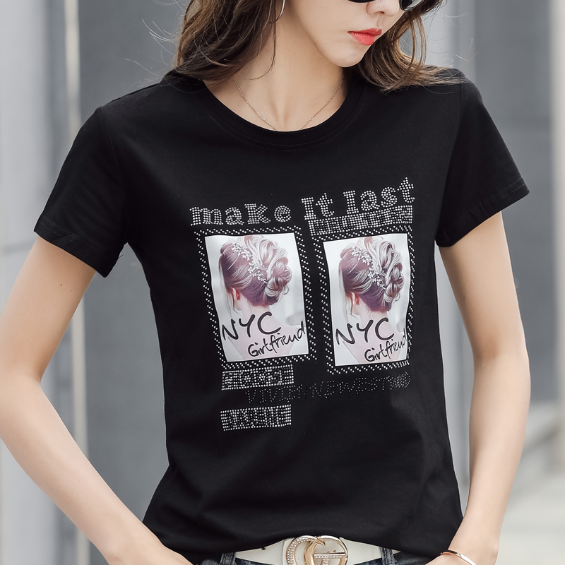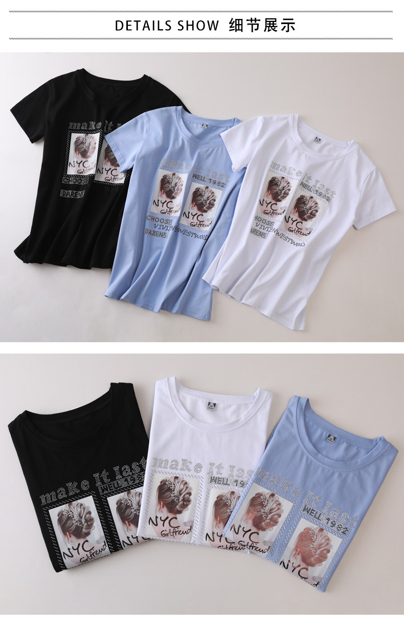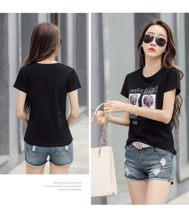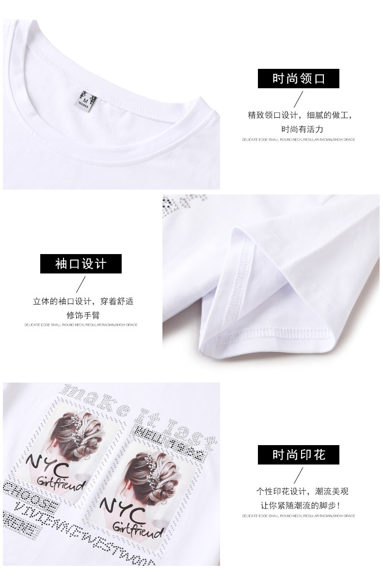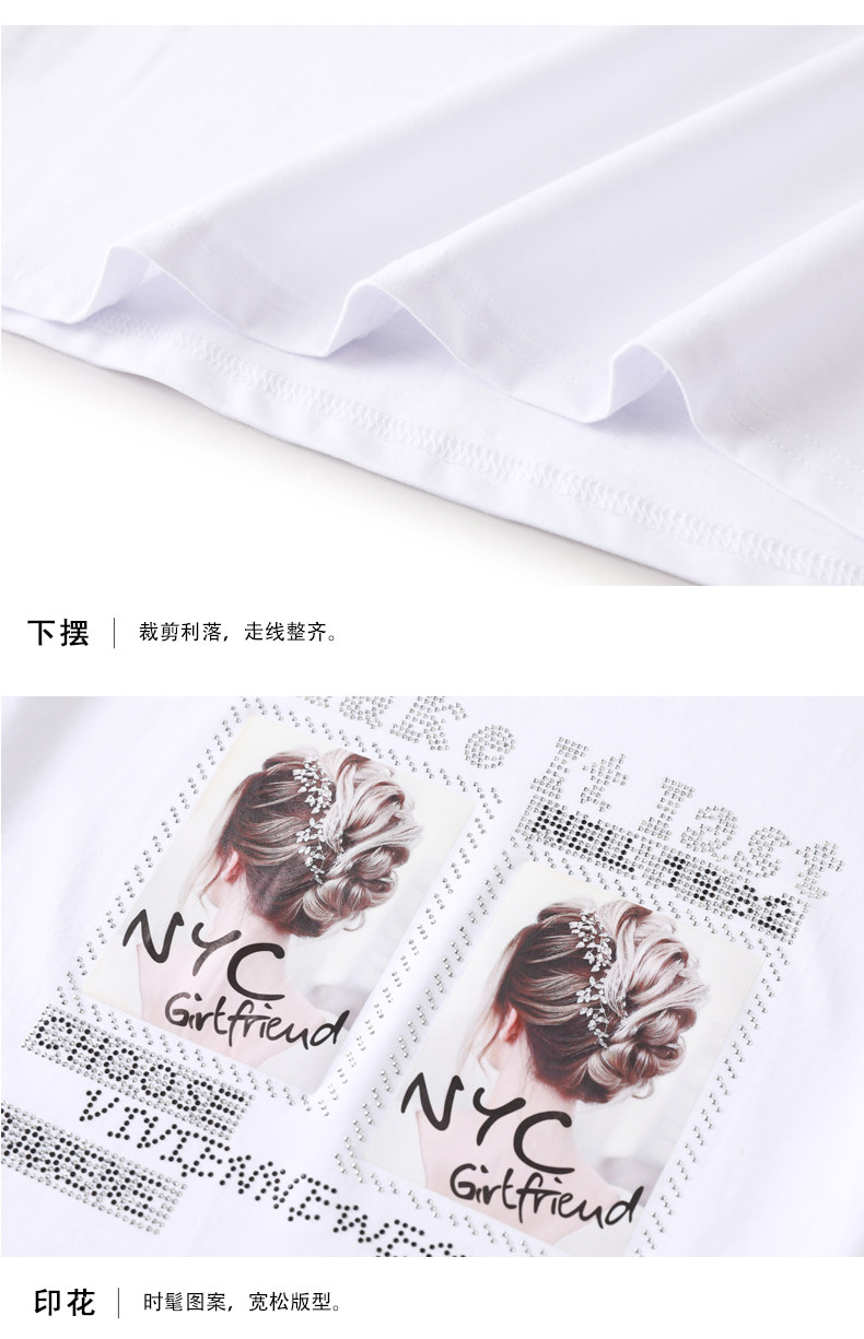 PF853#潮牌夏季韩版短袖t恤女烫钻设计感宽松体恤纯棉内搭半袖上衣