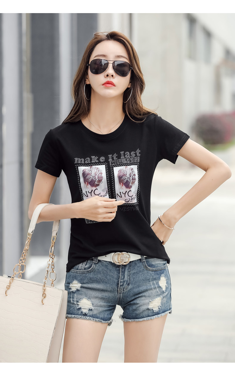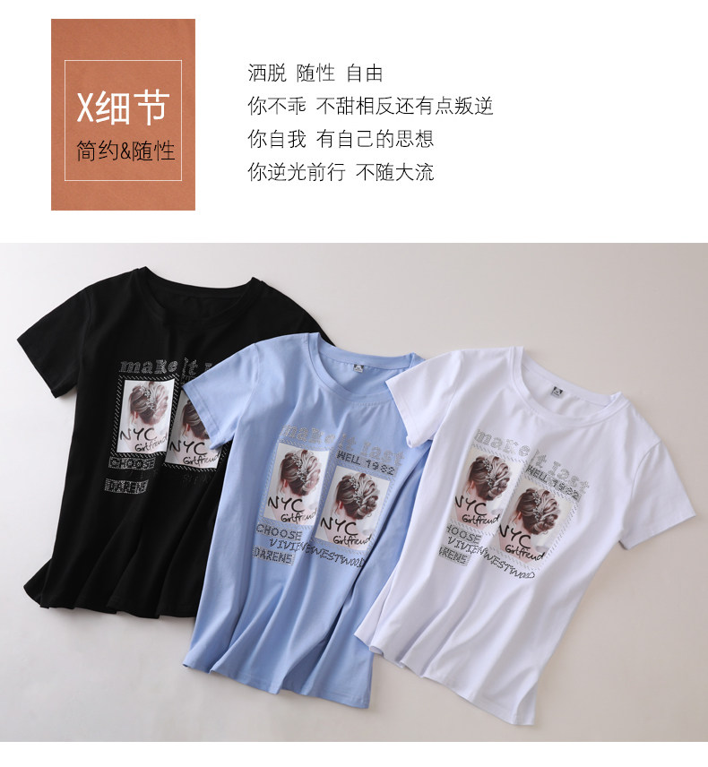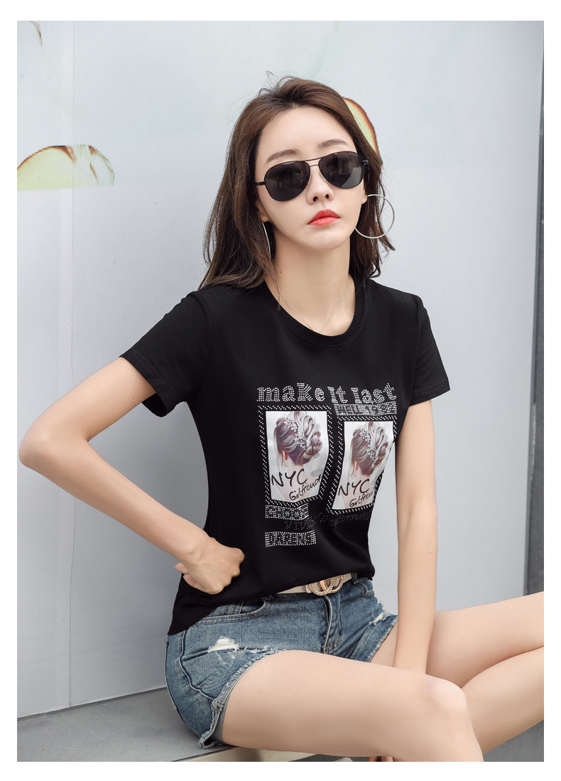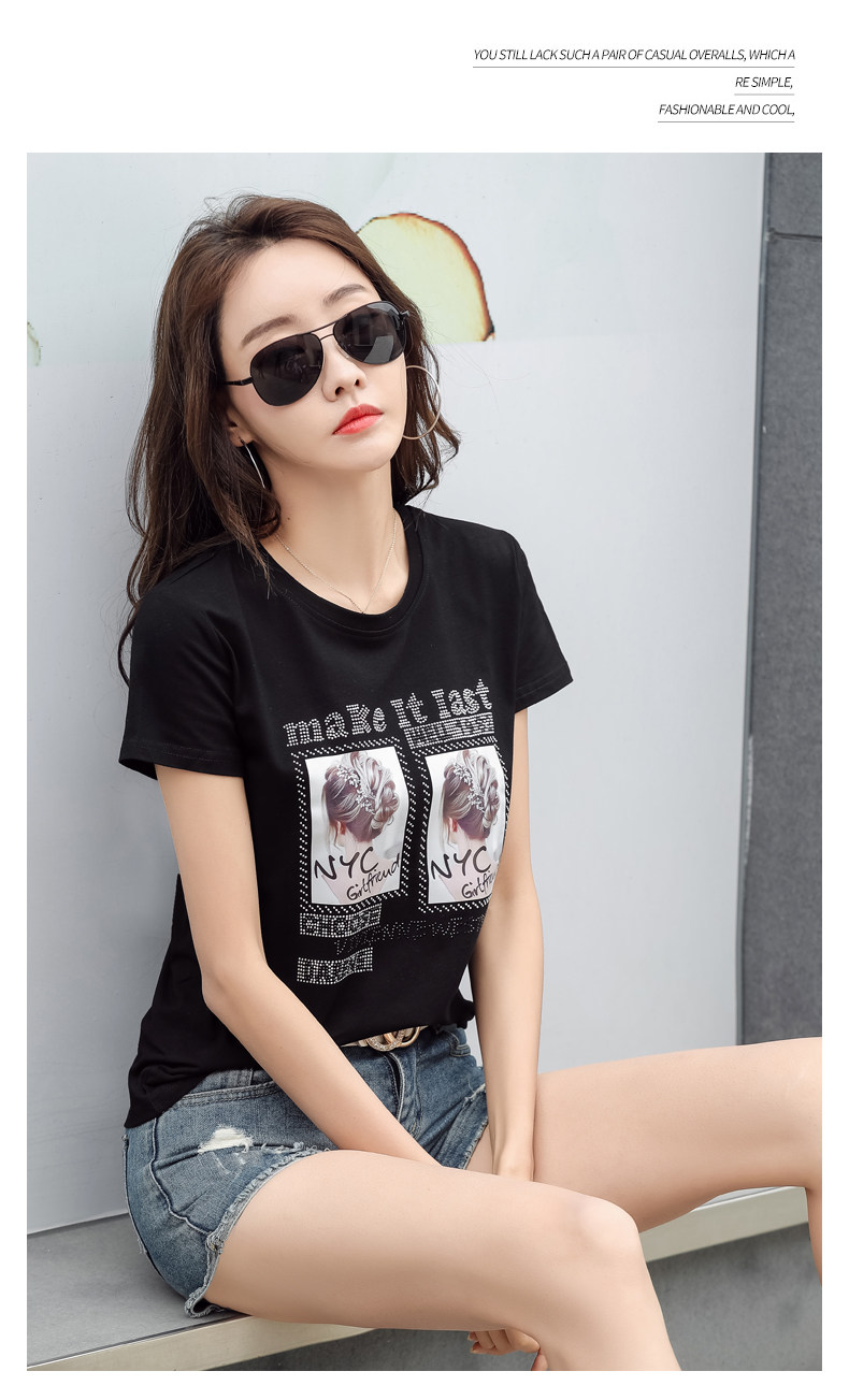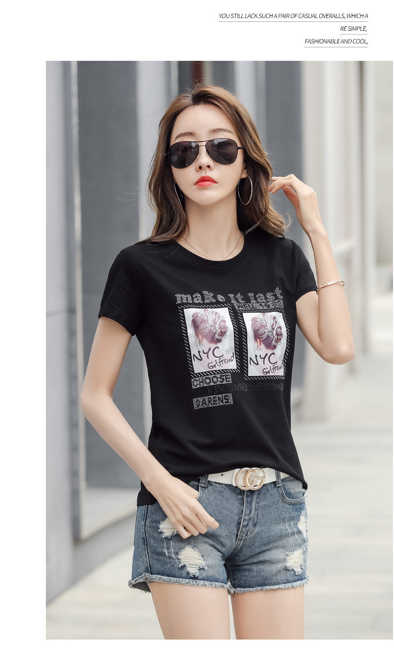 PF853#潮牌夏季韩版短袖t恤女烫钻设计感宽松体恤纯棉内搭半袖上衣