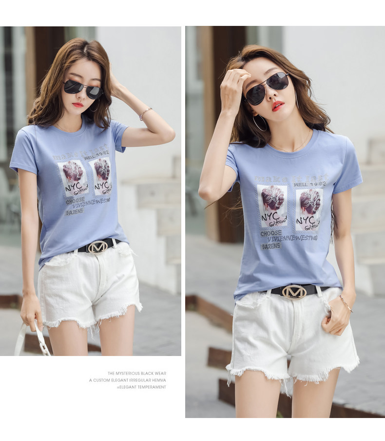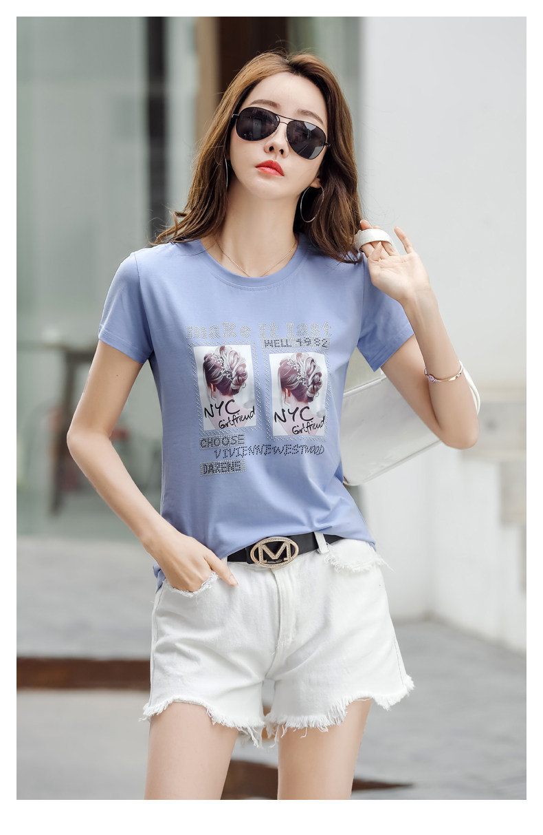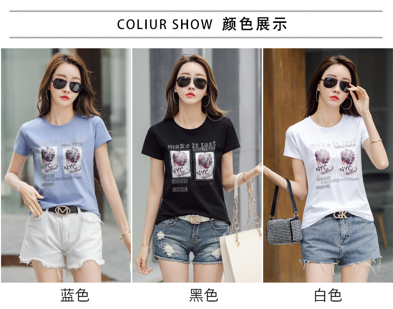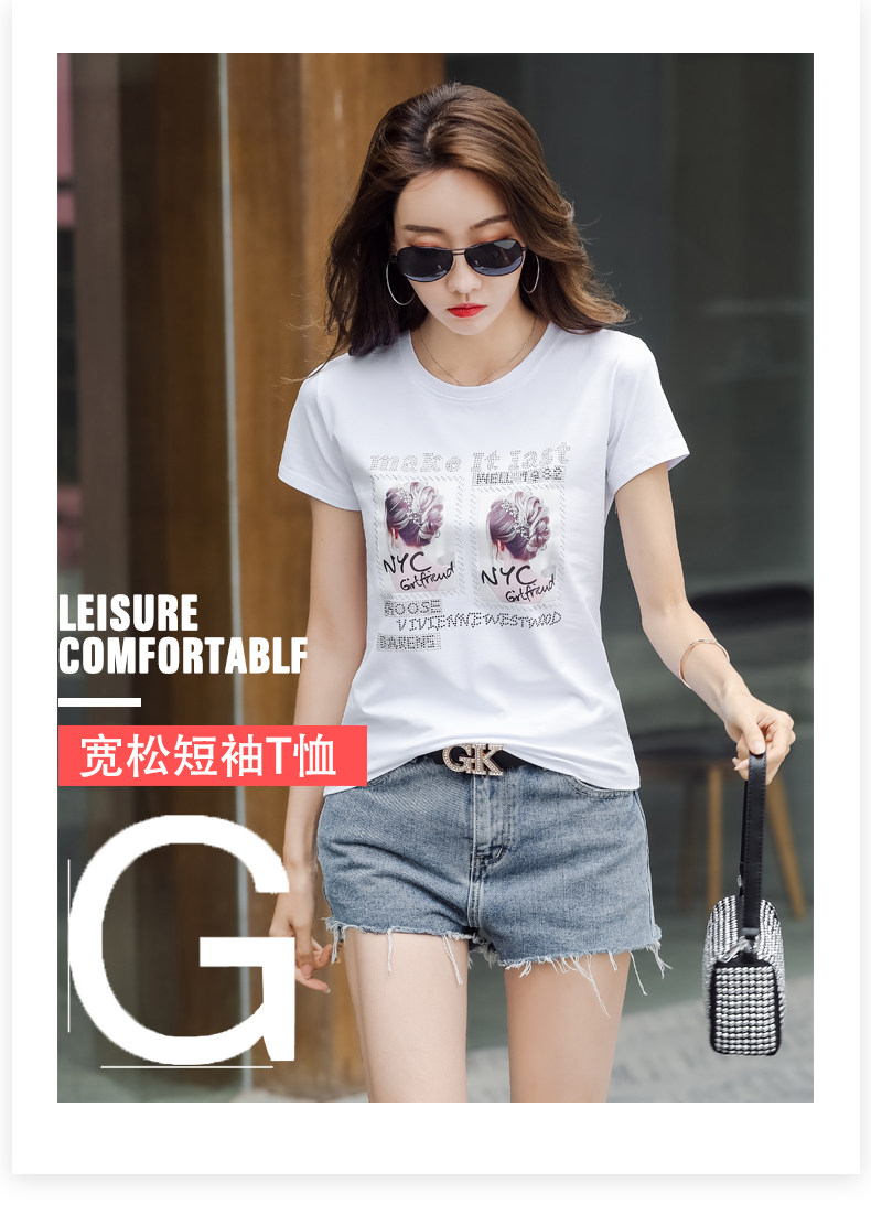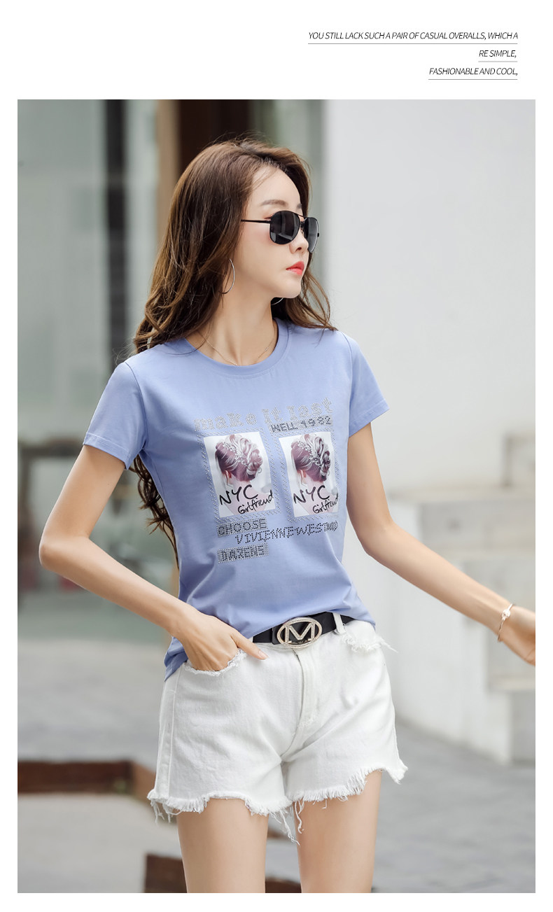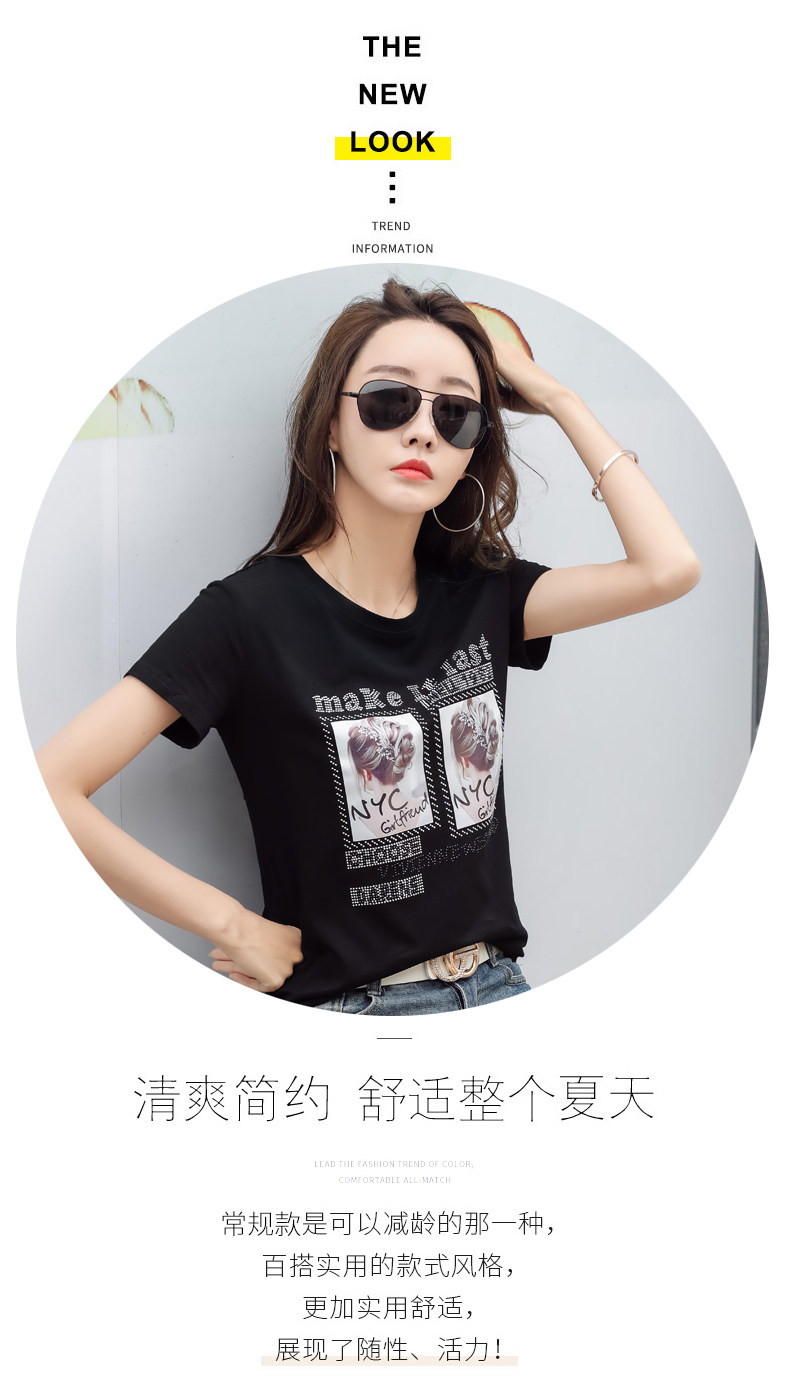 PF853#潮牌夏季韩版短袖t恤女烫钻设计感宽松体恤纯棉内搭半袖上衣