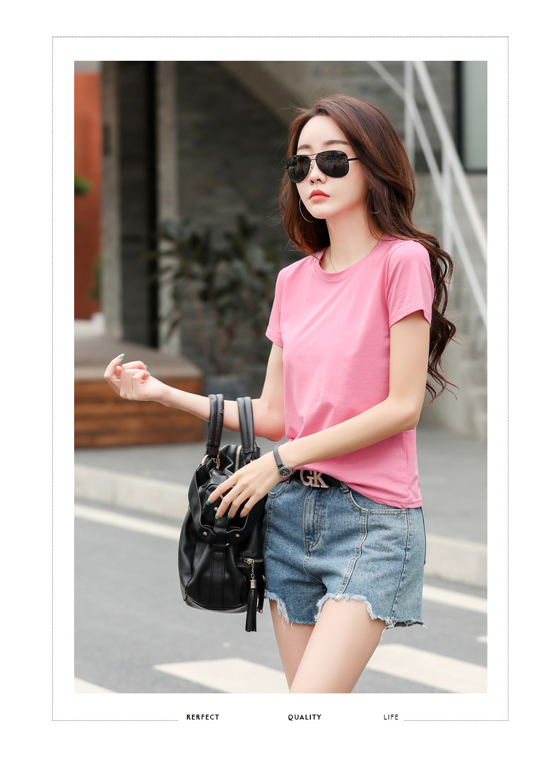 PF858#短袖t恤女 新款韩版女装夏季宽松百搭简约纯棉半袖显瘦上衣女