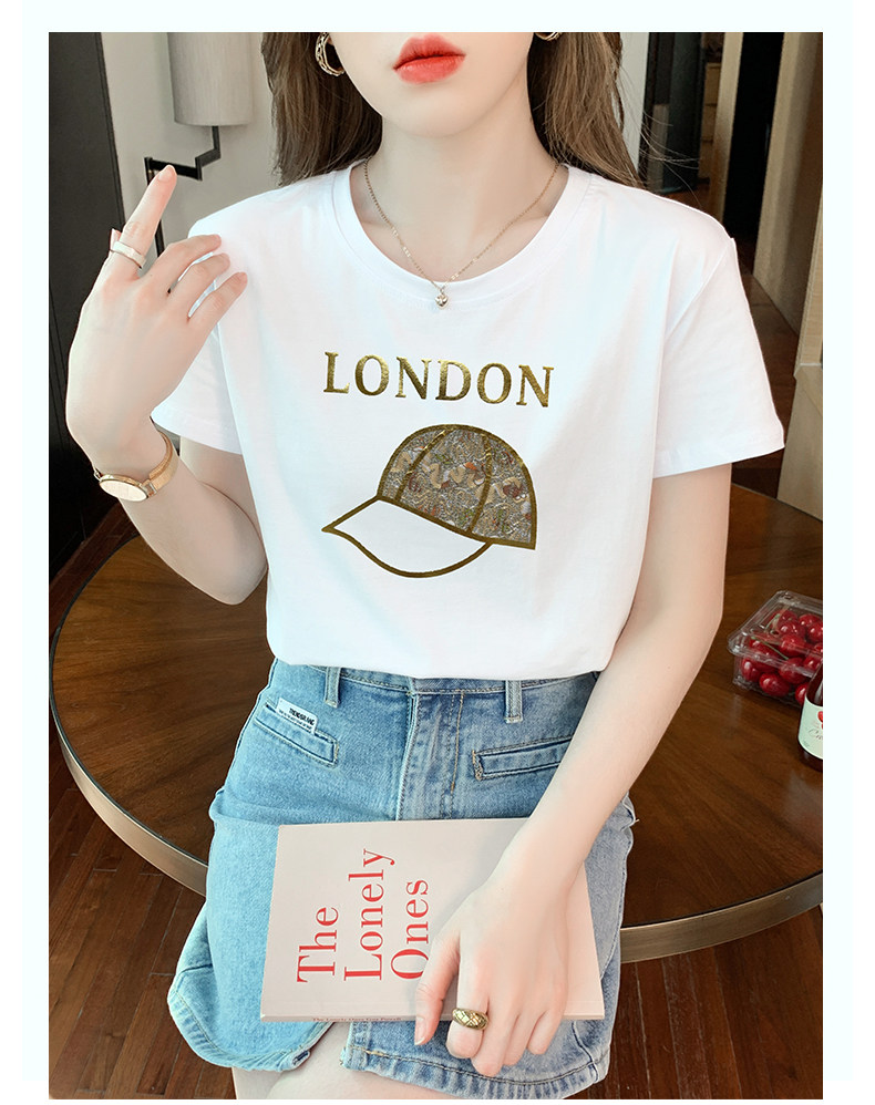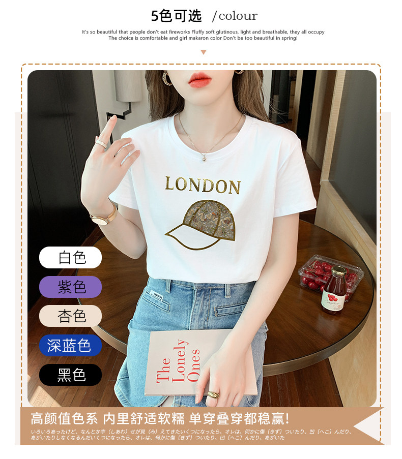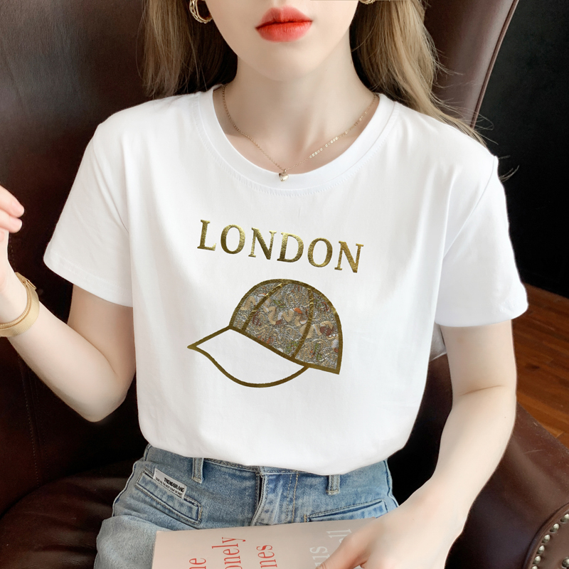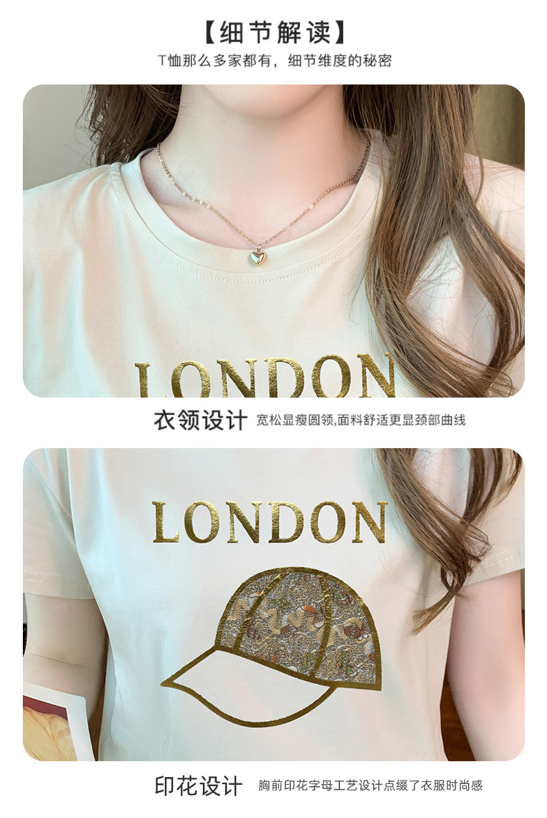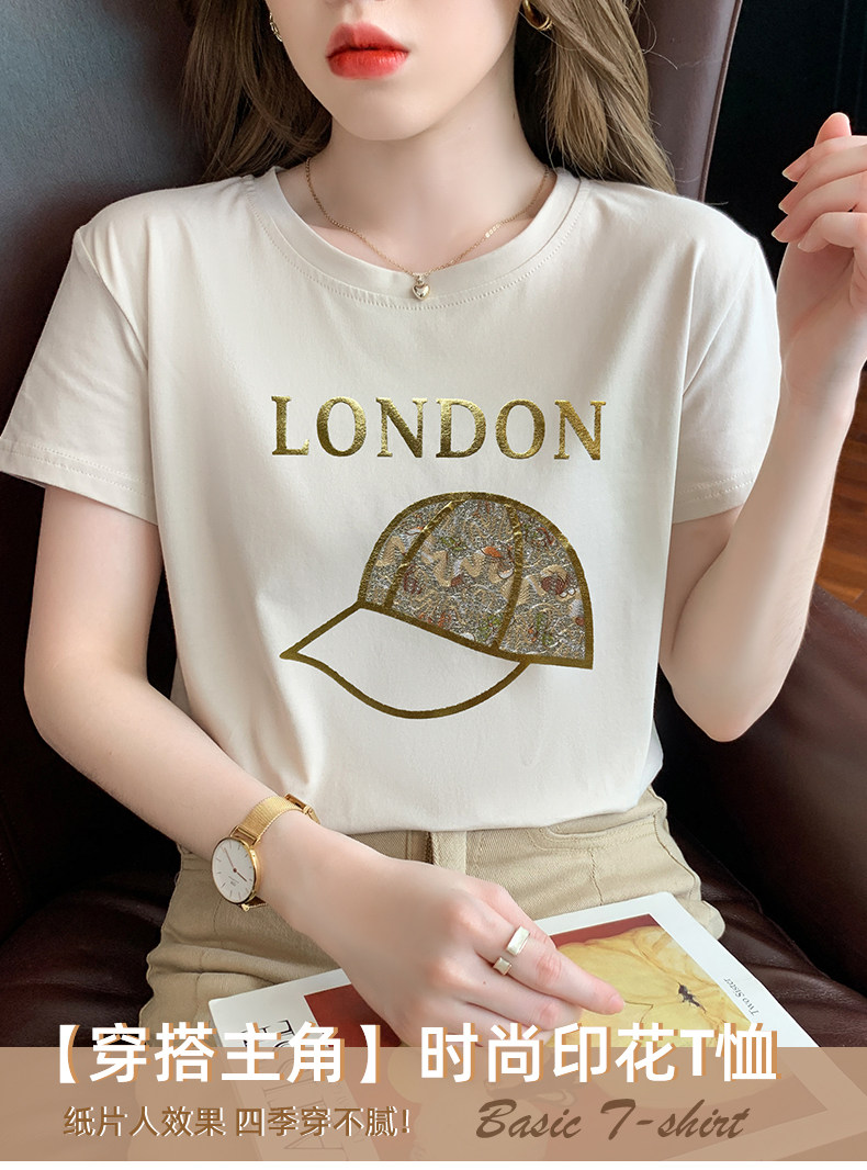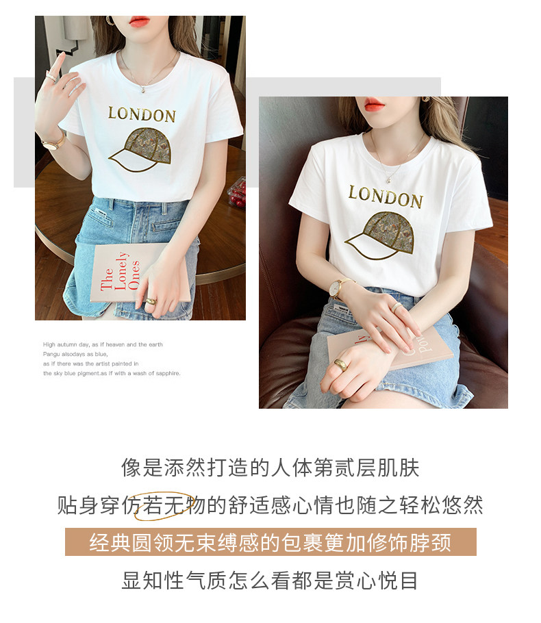 PF861#白色短袖t恤 纯棉宽松百搭打底衫设计感半袖体恤上衣服