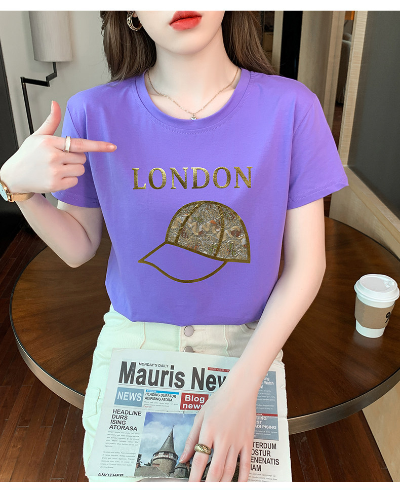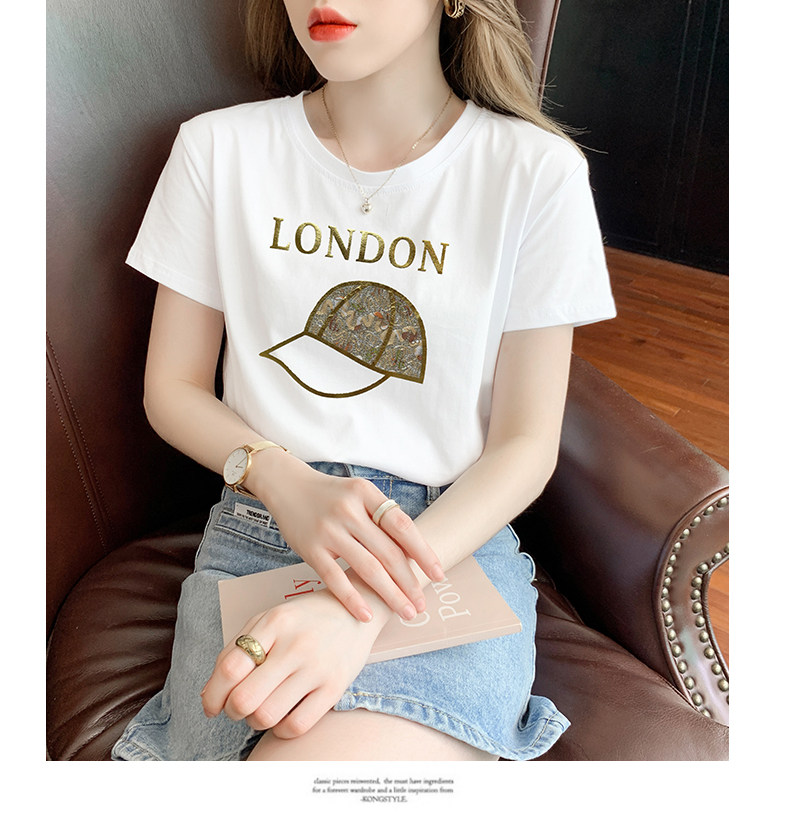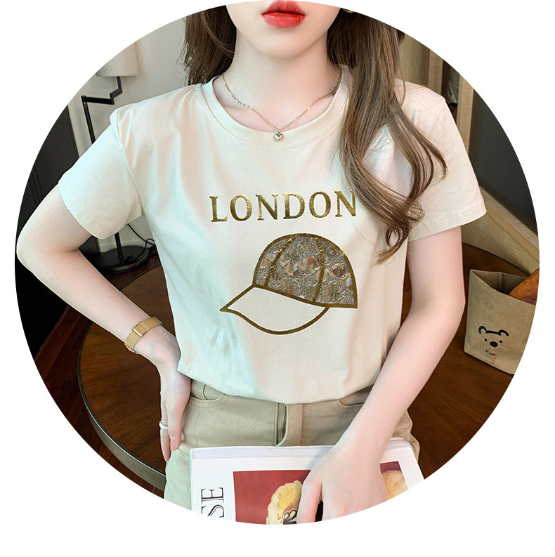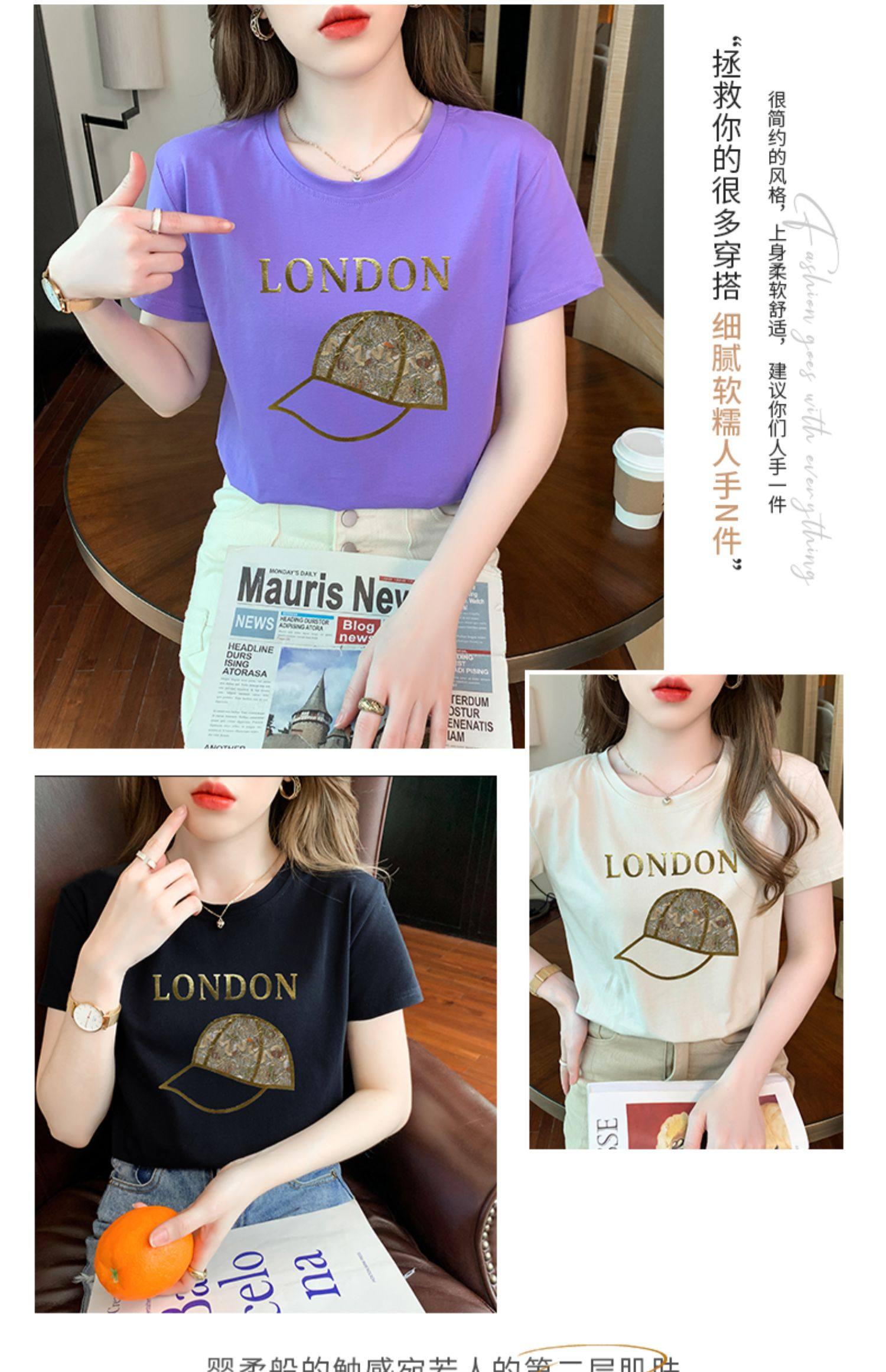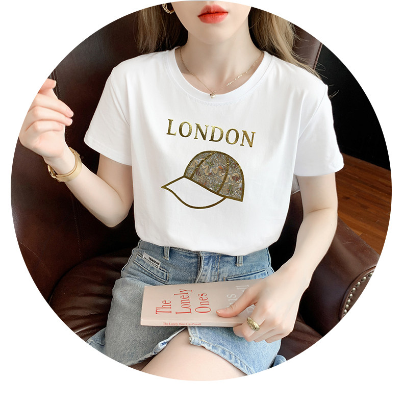 PF861#白色短袖t恤 纯棉宽松百搭打底衫设计感半袖体恤上衣服